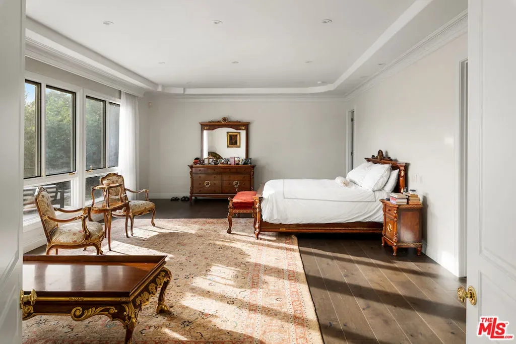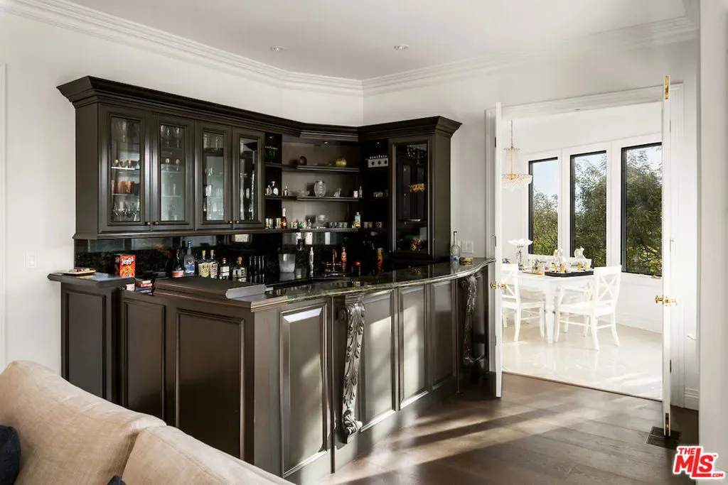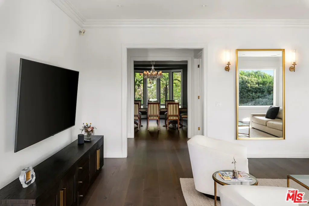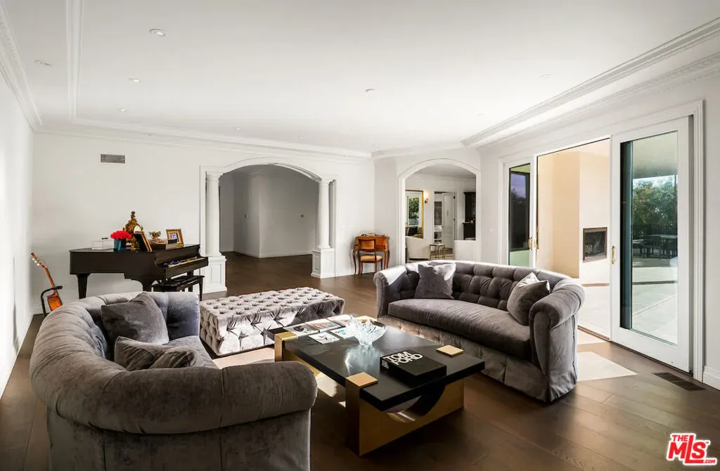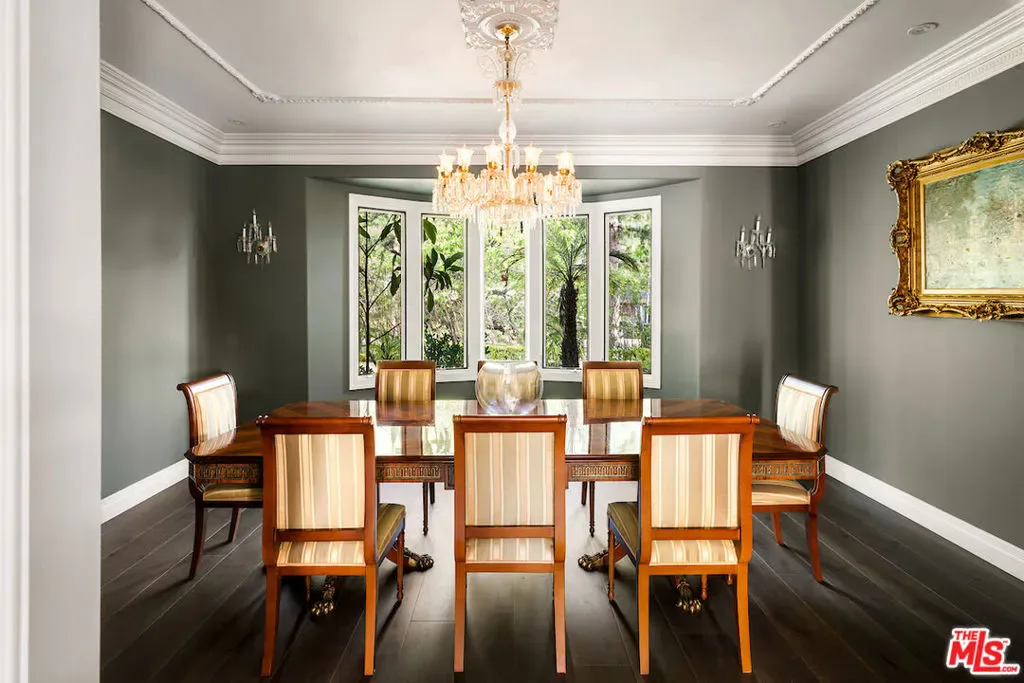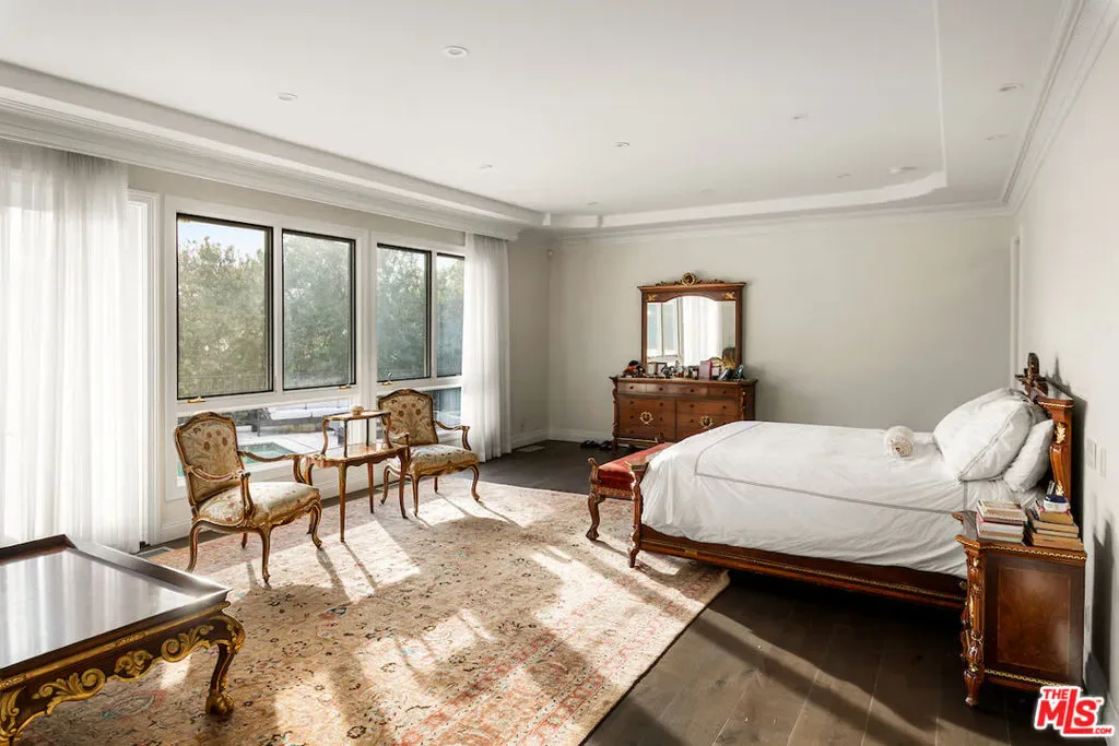 Situated in the prestigious Trousdale Estates of Beverly Hills, this meticulously renovated five-bedroom, six-bathroom residence is intentionally set back from the road and privately nestled behind lush landscaping. Ornate double doors welcome guests into the formal entry, showcasing intricate crown moldings, arched doorways, and a skylight that fills the home with natural light. The carefully curated layout is a true entertainer’s dream, featuring two spacious living roomsone with an impressive sunken bar and see-through fireplace, and the other seamlessly integrating indoor-outdoor living through expansive glass sliding doors. The formal dining room is thoughtfully situated just off the chef’s kitchen, which is fully equipped with state-of-the-art appliances and a charming breakfast nook. The primary retreat boasts a generous walk-in closet and a luxurious en-suite bath complete with a soaking tub. Three additional bedrooms, all well-proportioned, plus a substantial bonus room provide flexibility for a gym, media room, office, or playroom.An expansive pool serves as the focal point of the outdoor oasis. Enjoy sunny afternoons lounging poolside and dine al fresco beside the outdoor fireplace. An ultra-wide driveway ensures ample parking. The property may be offered furnished for an additional amount.