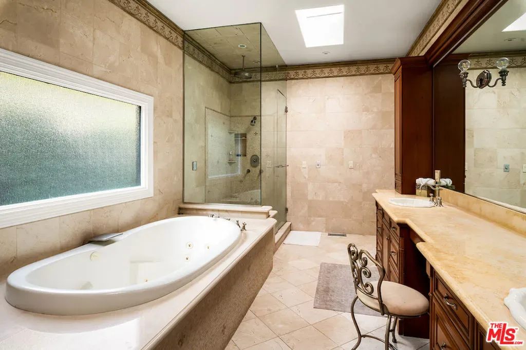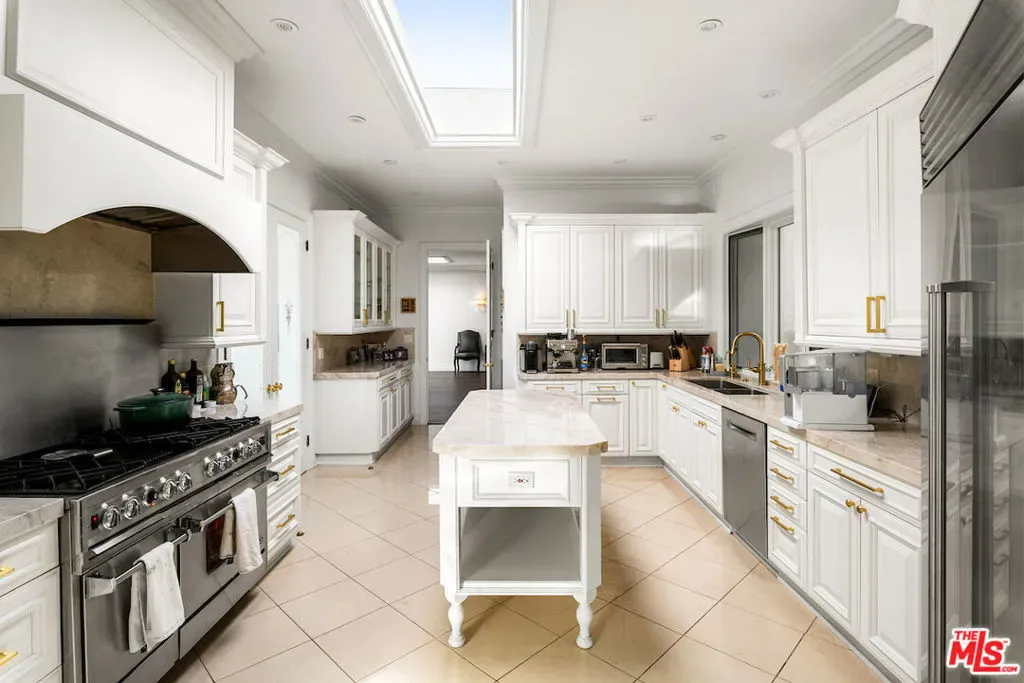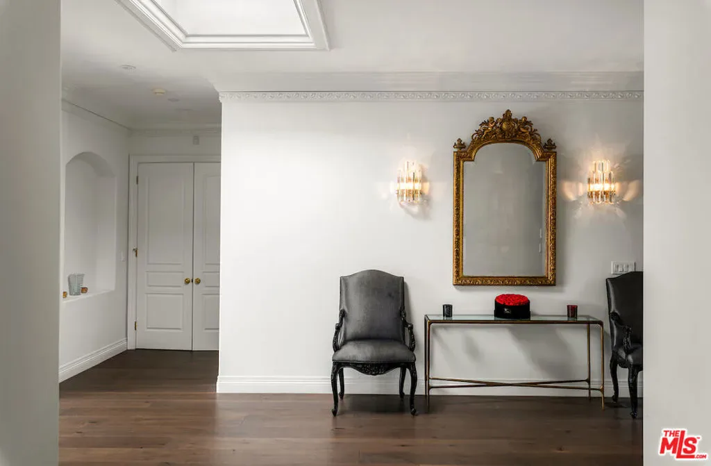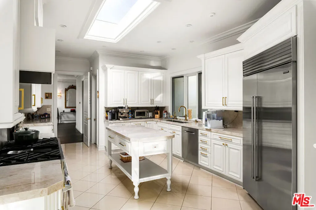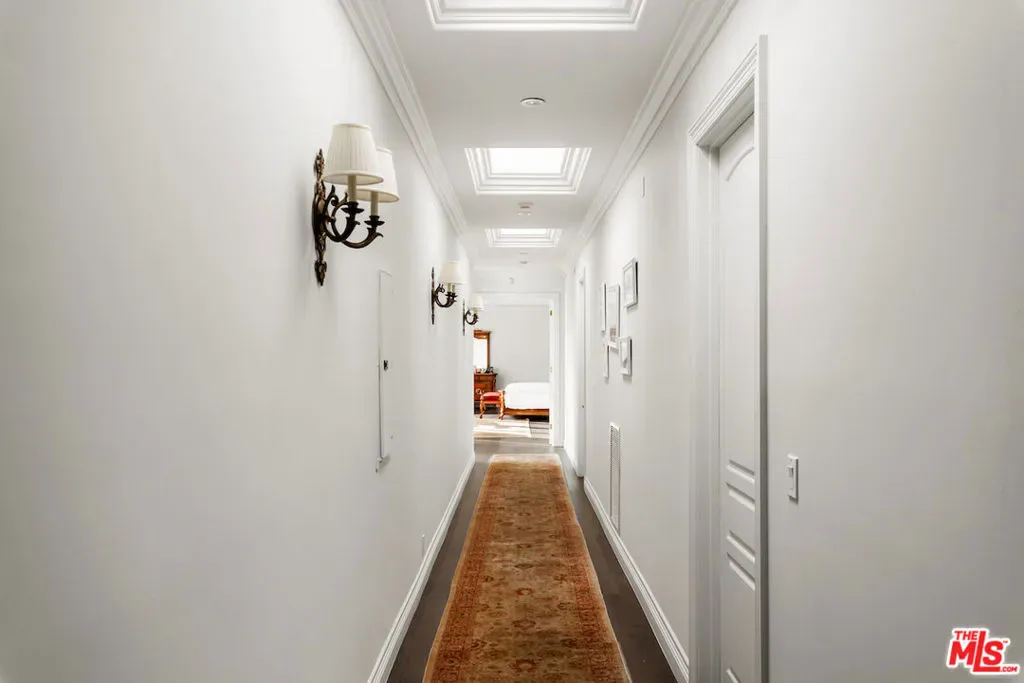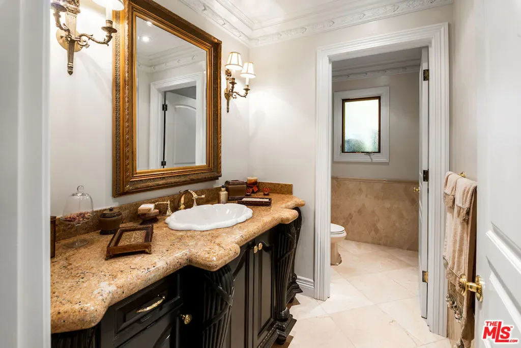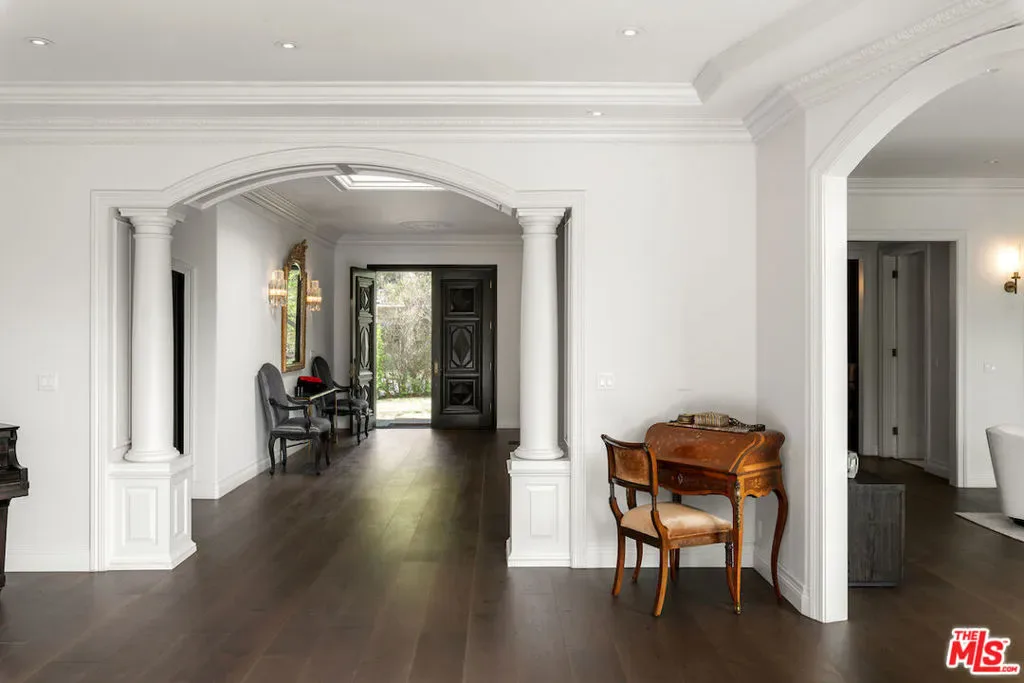 Situated in the prestigious Trousdale Estates of Beverly Hills, this meticulously renovated five-bedroom, six-bathroom residence is intentionally set back from the road and privately nestled behind lush landscaping. Ornate double doors welcome guests into the formal entry, showcasing intricate crown moldings, arched doorways, and a skylight that fills the home with natural light. The carefully curated layout is a true entertainer’s dream, featuring two spacious living roomsone with an impressive sunken bar and see-through fireplace, and the other seamlessly integrating indoor-outdoor living through expansive glass sliding doors. The formal dining room is thoughtfully situated just off the chef’s kitchen, which is fully equipped with state-of-the-art appliances and a charming breakfast nook. The primary retreat boasts a generous walk-in closet and a luxurious en-suite bath complete with a soaking tub. Three additional bedrooms, all well-proportioned, plus a substantial bonus room provide flexibility for a gym, media room, office, or playroom.An expansive pool serves as the focal point of the outdoor oasis. Enjoy sunny afternoons lounging poolside and dine al fresco beside the outdoor fireplace. An ultra-wide driveway ensures ample parking. The property may be offered furnished for an additional amount.