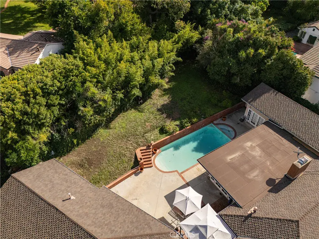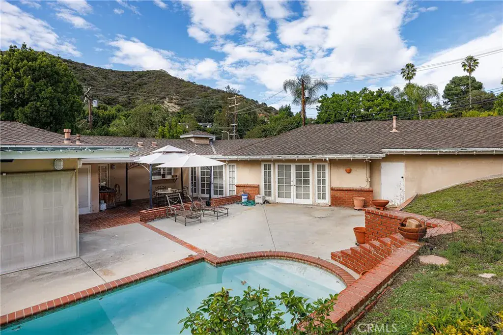 Traditional single-story home with pool in Beautiful Beverly Hills. Thoughtfully designed floor plan and beautifully situated on a corner lot, this residence features 4 bedrooms, 4 bathrooms, colorful powder room, and an abundance of flexible living spaces perfect for comfort, entertaining, and future customization. Paved driveway leads to the gated two-car garage. Mature landscaping surrounds the property which creates total privacy. Oversized living room features light-colored wood flooring, warm wood ceiling, a marble fireplace, and large windows with plantation shutter. The generous scale of the living room, family room, and primary bedroom provides a uniquely comfortable atmosphere rarely found in single-story homes. The expansive family room offers ideal indoor-outdoor flow, with sliding glass doors opening directly to the sparkling pool. This room is designed for both relaxation and entertainment, featuring a wet bar and wall of built-in bookshelves for an extensive book collection, and ample space for large furniture. The chef-inspired kitchen is a true highlight of the home, equipped with a Viking 6-burner gas range, black granite countertops and a casual dining area. A beautifully bright formal dining room provides an additional space for elegant dining. The bedroom layout is ideal for hosting guests or extended family. All secondary bedrooms are designed as private suites ensuring comfort and privacy for visitors. The oversized main bedroom suite is a luxurious retreat, featuring a fireplace, plenty of space for a sitting area and views of the grounds. The main bathroom features sleek black marble walls, floors with elegant touches. Just across the hall sits the expansive walk-in master closet A large grassy area extends the outdoor living potential and offers endless possibilities. This home presents a wonderful opportunity for personalization. Select your ideal paint colors, update flooring in certain rooms, and enhance a few bathrooms to match your style. Repainting the exterior façade offers another opportunity to create a fresh, customized look that reflects your vision. With its generous layout, timeless architecture, and rare single-story footprint, this home offers outstanding potential to become a personalized dream residence.