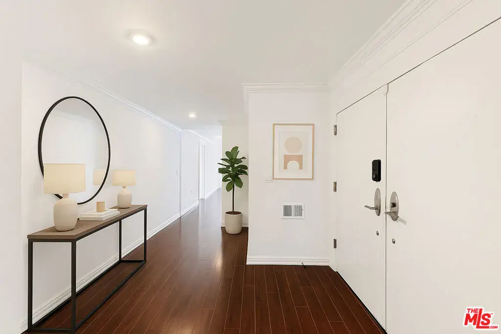 This exceptional third-floor penthouse spans the entire top level of an exclusive three-unit building north of Wilshire, offering over 3,500 sqft of luxury, privacy, and convenience. Enter directly from a private elevator into a bright and expansive residence featuring soaring ceilings, rich hardwood floors, and refined details throughout. The grand formal living room with marble fireplace opens to a covered balcony with stunning views, while the formal dining room and adjacent breakfast room provide elegant spaces for entertaining or quiet mornings. The spacious primary suite is tucked away in the back for ultimate privacy, featuring two large walk-in closets, a luxurious marble-clad bathroom, and a private balcony with sweeping views of the Hollywood Hills and Downtown LA. Two additional en-suite bedrooms offer flexibility for guests, home office, or family. Additional highlights include a generous den, in-unit laundry, two AC zones, ample storage, and a secured 3-car garage. With Whole Foods just minutes away and world-class restaurants, boutiques, and hotels all within close proximity, this is Beverly Hills penthouse living at its finest. Please note that certain images have been virtually staged for illustrative purposes only, to simply provide inspiration and demonstrate potential use of the space.