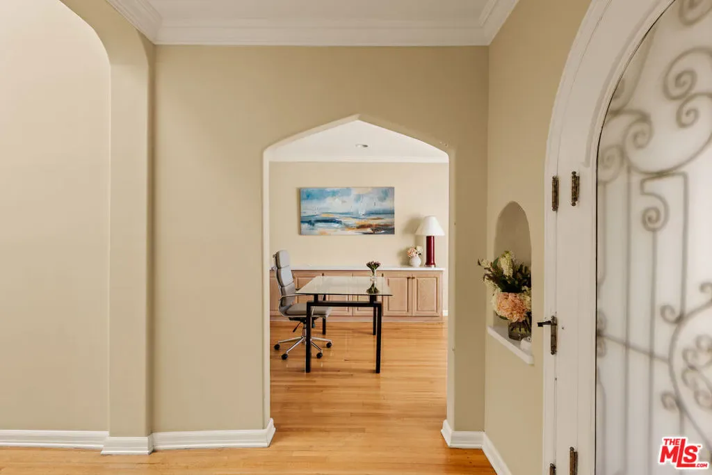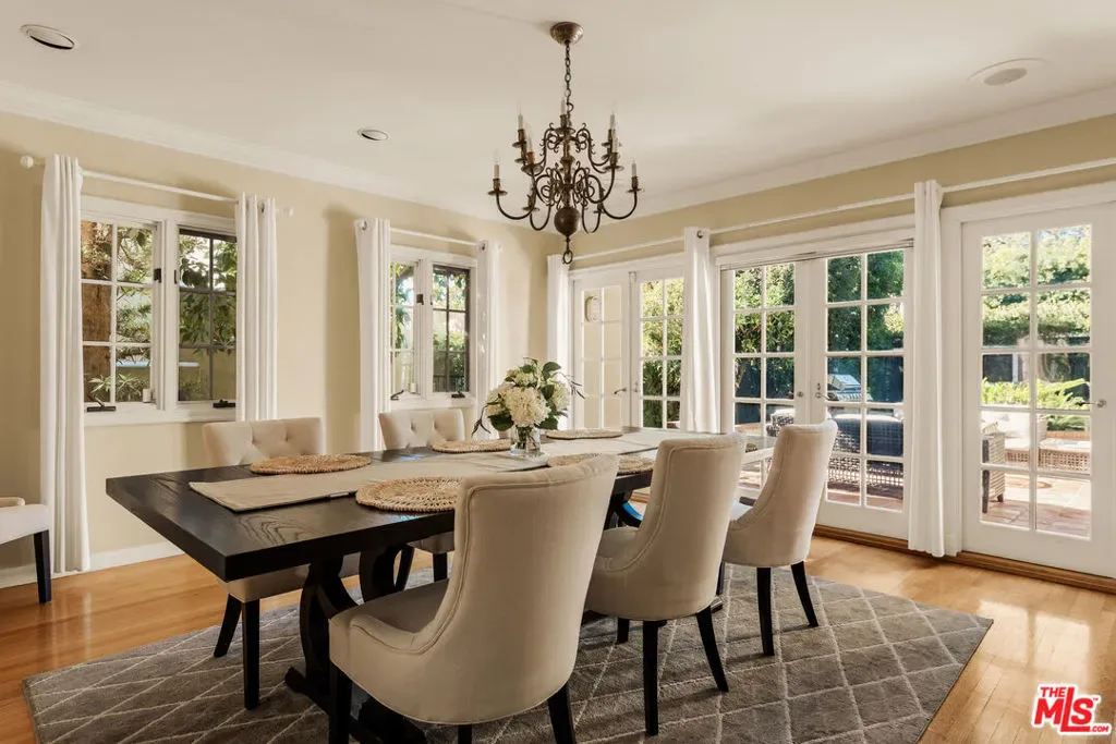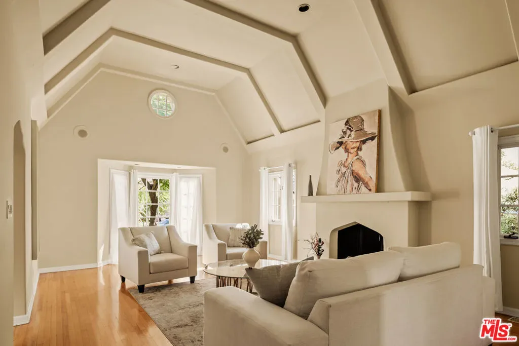 This character-filled home, located on one of the best streets in South Beverly Hills, combines classic style with comfortable living. The front entry opens to a bright living room with vaulted ceilings and a fireplace. A formal dining room with French doors leads to the backyard, creating an easy flow for gatherings. The kitchen features granite countertops, stainless steel appliances, and plenty of storage, and connects to a casual family room. Upstairs, the primary suite offers vaulted ceilings, a sitting area, and access to a private balcony. Additional bedrooms provide space for family, guests, or a home office. The backyard includes a brick patio with fountain, landscaped greenery, and multiple seating areas. With thoughtful details and a functional layout, this home offers close proximity to world-class shopping, amazing restaurants, and places of worship.