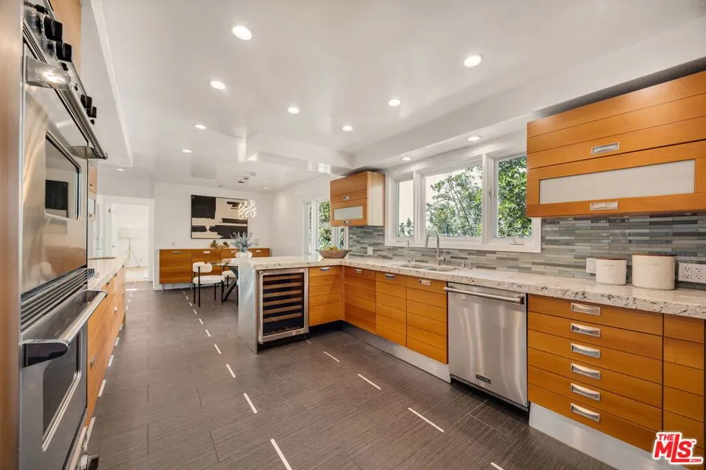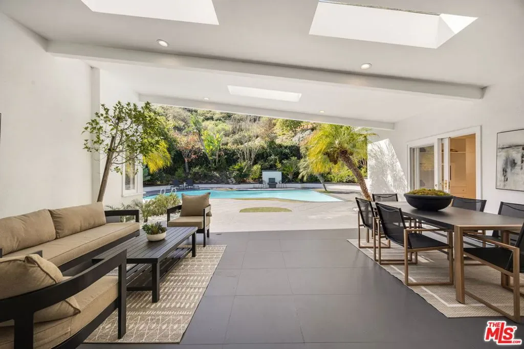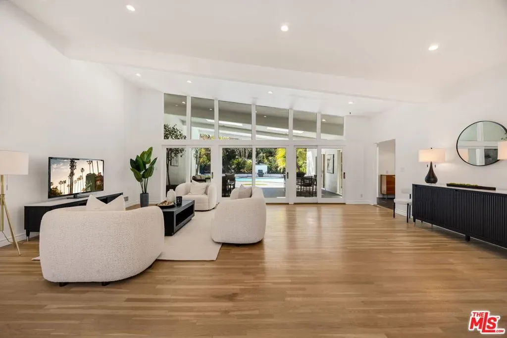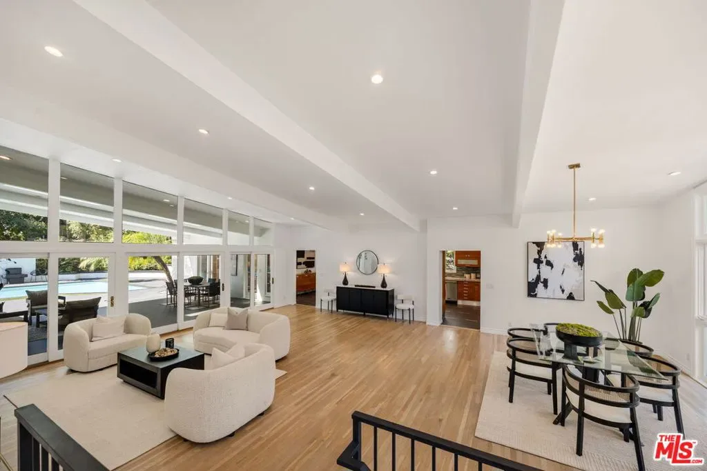 Unique Single-Story Contemporary luxury living home. 4 Bedroom, 3 baths plus an office in the most desirable location. Live amongst celebrities just minutes from the gated Beverly Park Estates & near the iconic Beverly Hills Hotel. Renovated w/ the finest materials. Welcome entry, magnificent high ceiling w/ barn beams, exquisite open dining & family room lead to walls of glass that open up to a covered patio, very spacious & private flat paradise backyard w/ sparkling pool, built-in wood burning barbecue & pizza oven. Perfect indoor/outdoor living & great for entertaining. Stunning new chef’s kitchen w/ Viking stainless-steel appliances & top-of-the-line imported Italian cabinets. Laundry room w/ sink & lots of cabinets. Grand primary suite w/ two separate dual walk-in closets and private office. Primary bath w/ jetted spa tub & separate large shower w/ double sink. Three additional spacious bedrooms & baths. Warner Avenue Elementary school district!