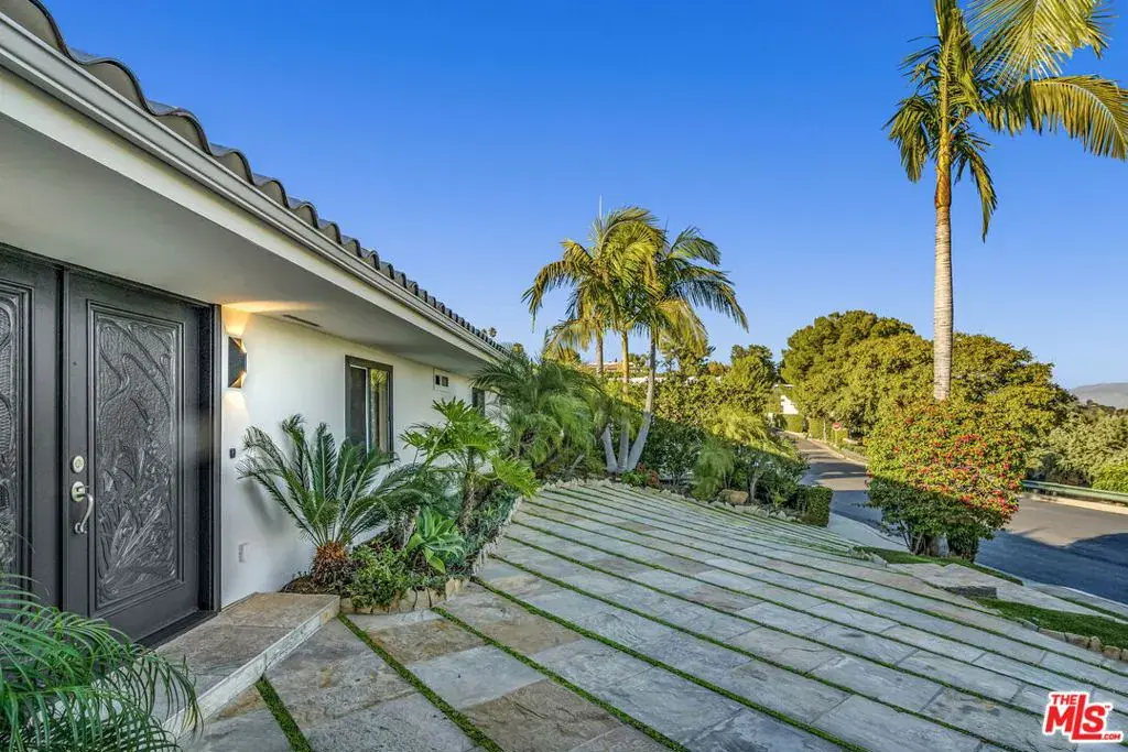 FURNISHED/UNFURNISHED. VIEWS!!! 4 BEDS/3,5 BATHS PLUS GYM/OFFICE. Tastefully remodeled with HIGH-END LUXURIOUS designer finishes. This SINGLE LEVEL marvelous Mid-Century home is an absolute STUNNER. Boasting PANORAMIC CANYON AND MOUNTAIN VIEWS from ALL the living spaces and bedrooms, this sensational home will take your breath away the moment you step inside. FLOOR-TO-CEILING picture windows, glass doors and abundance of natural light throughout instantly provide the feeling of an open and airy elegance. Featuring an OPEN-CONCEPT, WELL-DESIGNED FLOOR PLAN, this home has a great indoor/outdoor flow. You’ll love to host guests and loved ones in the backyard complete with a breathtaking ENORMOUS DECK, a resort-like sparkling pool (featuring lustrous and dazzling glass tiles reminiscent of rainbow-like play of colors), spa, and serene waterfalls. Additional features include one-of-a-kind RAINFOREST MARBLE, ONYX, TRAVERTINE, CEASERSTONE, GRANITE FINISHES, state-of-the-art APPLIANCES, 2 car garage PLUS a circular driveway. Located on a quiet street with no neighbors across, next to the guarded, upscale Beverly Park community. WELCOME HOME!