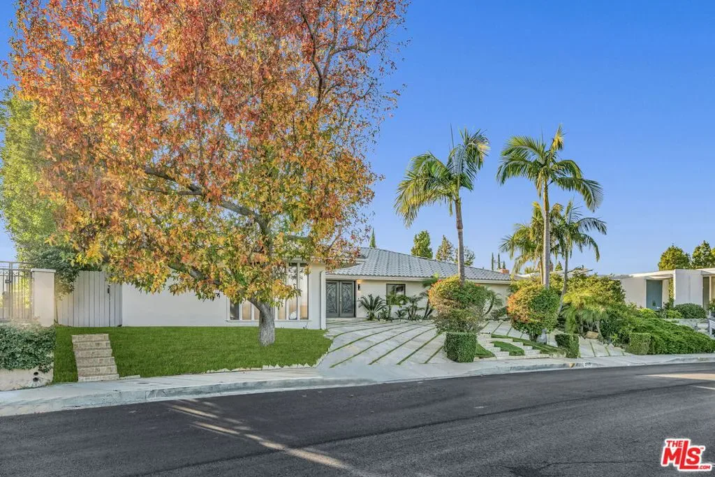 FURNISHED/UNFURNISHED. NEWLY REMODELED! VIEWS!!! 4 BEDS/3,5 BATHS PLUS GYM/OFFICE. Tastefully remodeled with HIGH-END LUXURIOUS designer finishes. This SINGLE LEVEL marvelous Mid-Century home is an absolute STUNNER. Boasting PANORAMIC CANYON AND MOUNTAIN VIEWS from ALL the living spaces and bedrooms, this sensational home will take your breath away the moment you step inside. FLOOR-TO-CEILING picture windows, glass doors and abundance of natural light throughout instantly provide the feeling of an open and airy elegance. Featuring an OPEN-CONCEPT, WELL-DESIGNED FLOOR PLAN, this home has a great indoor/outdoor flow. You’ll love to host guests and loved ones in the backyard complete with a breathtaking ENORMOUS DECK, a resort-like sparkling pool (featuring lustrous and dazzling glass tiles reminiscent of rainbow-like play of colors), spa, and serene waterfalls. Additional features include one-of-a-kind RAINFOREST MARBLE, ONYX, TRAVERTINE, CEASERSTONE, GRANITE FINISHES, state-of-the-art APPLIANCES, 2 car garage PLUS a circular driveway. Located on a quiet street with no neighbors across, next to the guarded, upscale Beverly Park community. WELCOME HOME!
