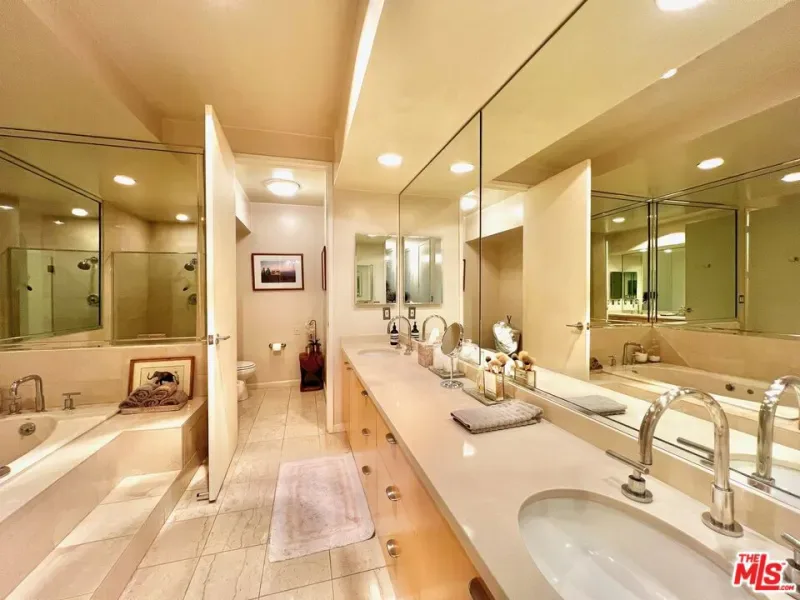 **Available furnished or unfurnished** Welcome to a luxurious haven at the Hamptons in Beverly Hills, where sophistication meets comfort in every detail. Behind stately Double Doors, an open and bright space with high ceilings, and a welcoming fireplace. This living area features a chic wet bar, a dining area that opens to a covered balcony with two sliding doors, expanding the gathering space for alfresco entertaining. Step into the primary suite, a spacious resort-like retreat that boasts a romantic fireplace, a large built-in wall unit, a huge walk-in closet with a dressing area, and a lavish en-suite bathroom with a spa tub, a separate oversized shower, dual vanity, and separate water closet with bidet. The updated eat-in kitchen is a chef’s dream, equipped with a Viking Stove, Sub-Zero fridge, and custom counters and cabinetry, offering both style and functionality. Floorplan is typical of the 2-BR condominiums at this complex but photos may not be of actual unit. Property is Walkable to places of worship. Beverly Hills schools. Steps from La Cienega Park. Pet friendly. Amenities include a pool, spa, gym, sauna, and a newly updated formal lobby to receive guests. Controlled access building. Remote access underground parking with 2 side-by-side spaces + guest spot.