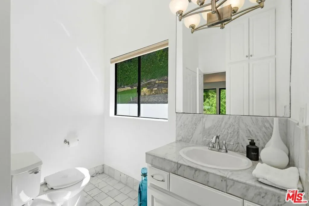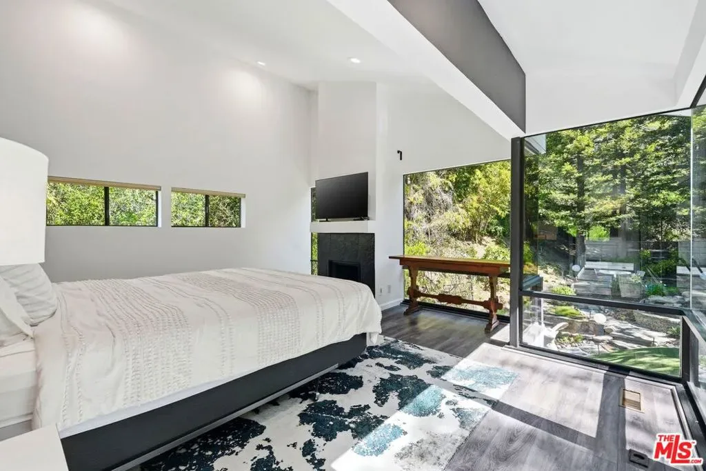 Secluded in the tranquil hills of Benedict Canyon, this private, gated retreat offers a rare sense of escape surrounded by towering trees and lush natural landscape. Tucked at the end of an approximately 200-foot private driveway, the home feels worlds away while still providing convenient access to the city. Inside, the residence is filled with warmth and natural light. Wide-plank flooring flows throughout the living spaces, while expansive picture windows and glass doors frame peaceful views of the surrounding greenery from nearly every room. The remodeled kitchen is thoughtfully designed with a striking center island, eye-catching backsplash, stainless-steel appliances, bright white cabinetry, and stylish modern finishes. Just off the kitchen, a charming greenhouse-style breakfast nook creates a light-filled setting for casual meals. The formal living room centers around a decorative fireplace and captures sweeping views of the hillside and landscaped grounds. The primary suite offers a calming sanctuary with a spacious walk-in closet and a well-appointed bathroom featuring a dual-sink vanity, separate shower, and jetted soaking tub. Additional bedrooms provide a cozy, elevated feel reminiscent of a treetop retreat. A separate remodeled guest house enhances the property with its own kitchenette, bathroom, and private patio-perfect for visitors, extended stays, or a flexible workspace. The outdoor setting is designed for both relaxation and entertaining, with grassy areas, rolling terrain, winding cobblestone pathways, water features, lounging decks, a built-in barbecue, and a sparkling pool and spa. Multiple outdoor seating and dining areas invite effortless al fresco living surrounded by nature. Situated within the highly desirable attendance boundaries for Warner Avenue Elementary School, this Benedict Canyon retreat blends privacy, charm, and a true connection to its natural surroundings.