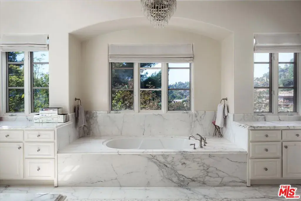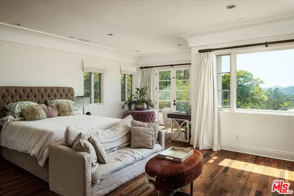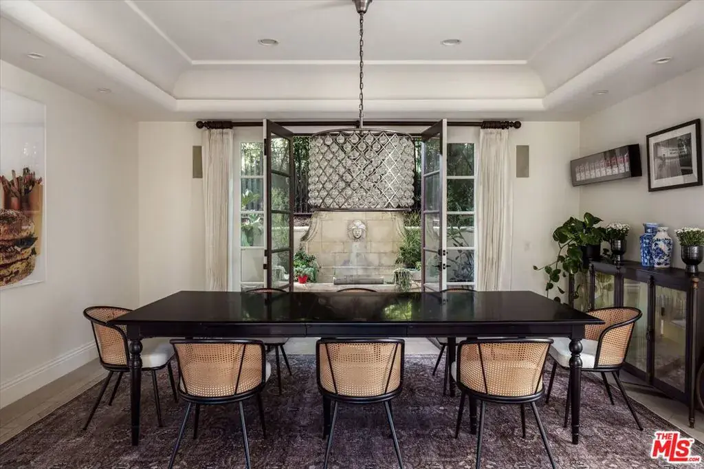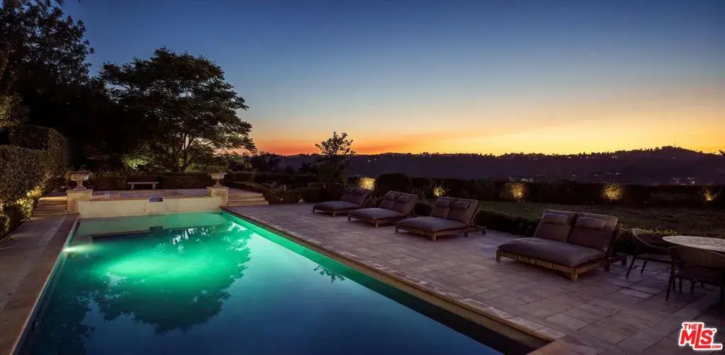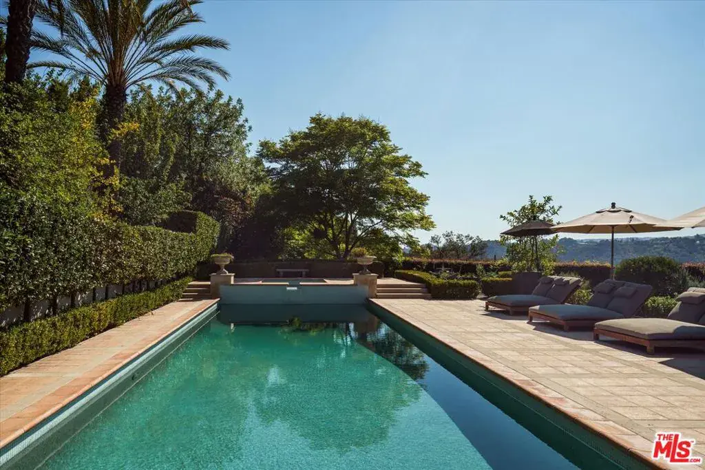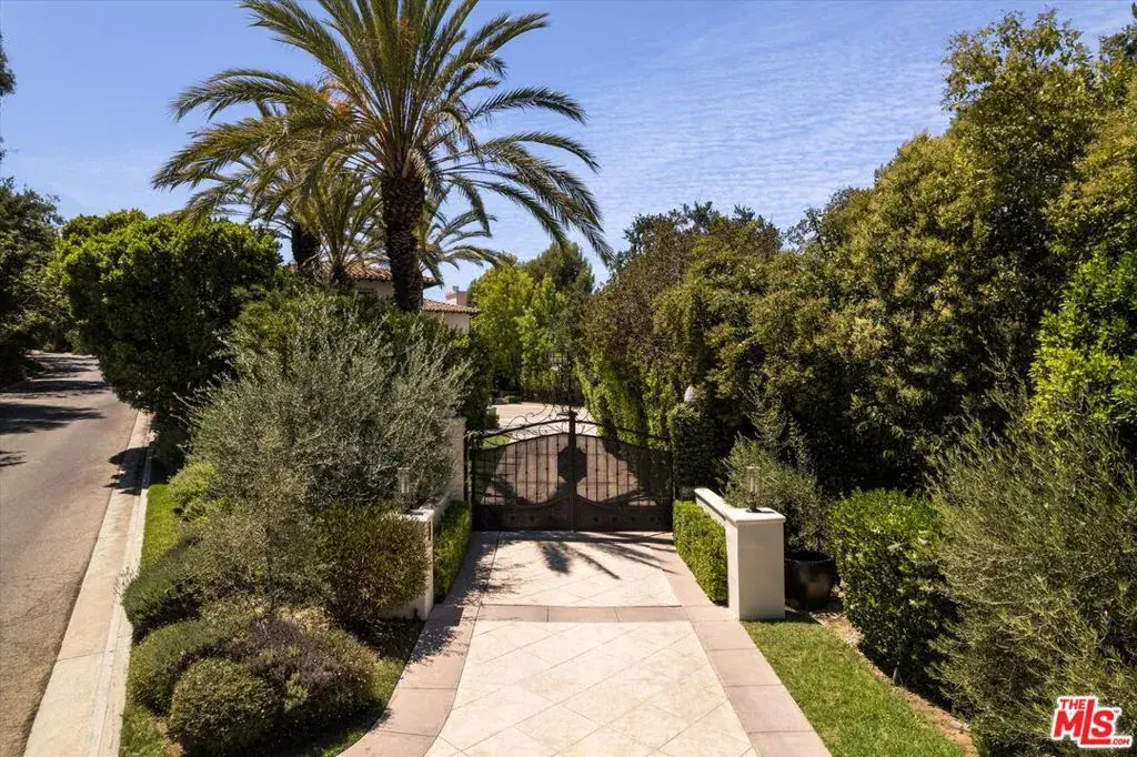 Set within the coveted guard-gated enclave of Bella Vista Estates, just steps from Beverly Park North, this Mediterranean-inspired estate offers 7,400 square feet of refined luxury on more than an acre of pristine grounds. Designed to capture sweeping canyon and mountain views from nearly every room, the residence blends timeless European craftsmanship with modern sophistication. A dramatic two-story foyer introduces elegant formal living and dining rooms, a chef’s kitchen with top-tier appliances and breakfast nook, and an expansive great room with a state-of-the-art screening area. A mahogany-paneled study provides a workspace of rare elegance, while imported marble, French oak floors, and limestone accents enrich the home’s interiors. The primary suite serves as a secluded retreat, complete with dual walk-in closets, a spa-inspired bath, and a limestone terrace overlooking manicured gardens. Outdoors, a resort-like setting unfolds with a full outdoor kitchen and wood-burning oven, a flat lawn, and a pool and spa embraced by lush landscaping. With its gated drive, exceptional privacy, and seamless flow between indoor and outdoor living, this Bella Vista estate embodies the pinnacle of Beverly Hills luxury.
