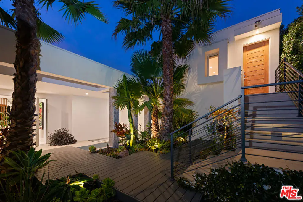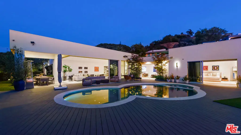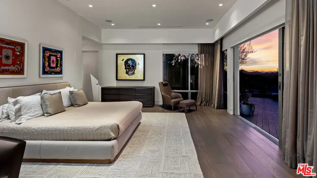Exquisitely furnished!! Gorgeous, gated & private modern style home in the hills with a guest house. This fully furnished 5 bedroom & 6 bathroom beauty features an open layout, 12-foot-high ceilings, hardwood/stone floors & Fleetwood sliding glass doors. The gated entrance features a courtyard, waterfall and a large secure door. The serene panoramic views of the home compliment the great outdoor living space which includes a built-in BBQ & large saltwater pool & spa. Gourmet kitchen includes sleek Italian designed cabinets, top of the line appliances and a luminous skylight. Large bedrooms with en-suite bathrooms throughout, with tons of closet space made with the finest materials. Separate guest house /office/creative space with its own bathroom above the 2-car garage. Smart home equipped with Control 4.