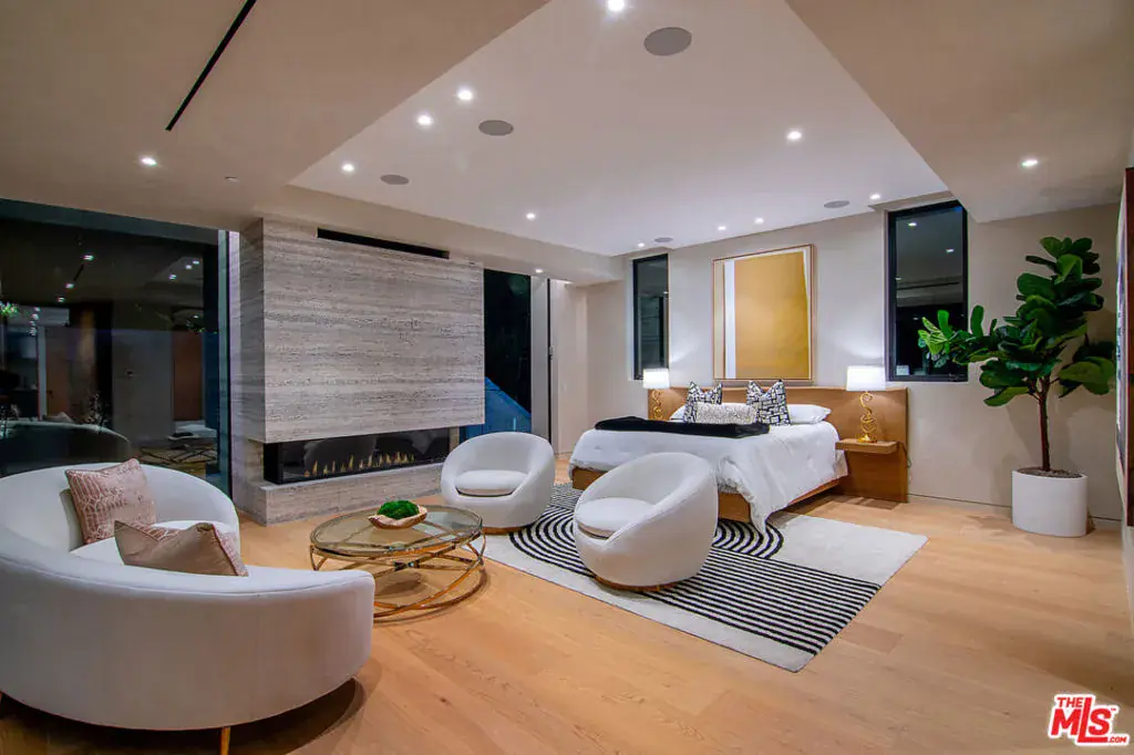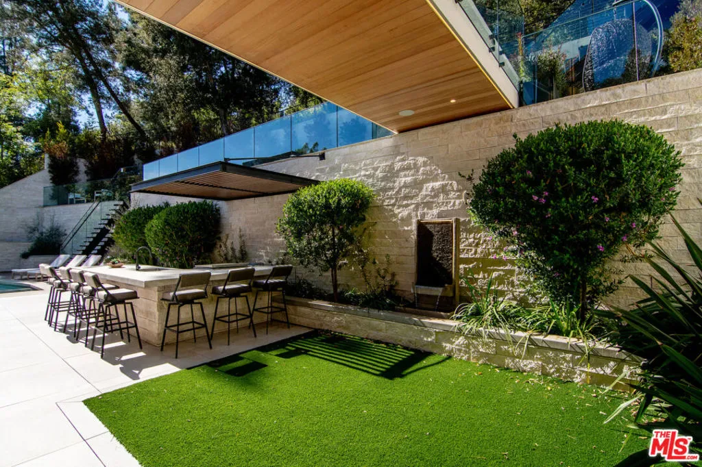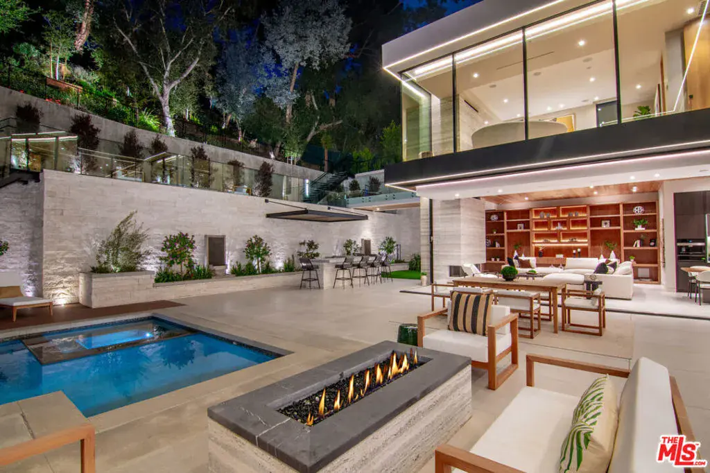 Welcome to the pinnacle of luxury living in this unparalleled Beverly Hills PO Masterpiece! Meticulously crafted for 4 years by one of LA’s top builders and world-renowned Whipple Russell Architects, this 3-level one-of-a-kind estate is an extraordinary fusion of design and elegance. Spanning approximately 8000 sf and situated on a sprawling 22,000 sf lot, this gated and private 5 BD + 8 BA modern marvel has been constructed with extreme attention to detail using only the finest materials available and providing almost every amenity and convenience imaginable. Grand entrance with floating staircase welcomes you to a spacious open floorplan, adorned with soaring ceilings, skylights, and floor-to-ceiling Fleetwood doors. Walls of glass upstairs and down bathe the warm interiors in natural light and seamlessly connect the indoor/outdoor spaces. Designer double kitchen is perfectly placed for hosting guests and comes equipped with built-in Miele appliances, center island, breakfast bar and hi-end European fixtures. All rooms open to jaw-dropping expansive outdoor oasis that includes a 2-level terraced backyard and fully landscaped and lighted hillside that is site to be seen. This haven for relaxation and entertainment is accentuated with lush foliage, beautiful fountains, sleek porcelain stone, Ipe wood decking, multiple firepits, outdoor kitchen/bar, and sparkling saltwater pool & spa. The primary suite is a true sanctuary with walls of glass, stunning views, stone fireplace, and private bridge to upper-level backyard. The sumptuous primary bath boasts an over-sized steam shower, soaking tub, and double vanity complete with Taj Mahal stone countertops and Gessi wall-mounted fixtures. Connected to the opulent bathroom is your dream walk-in closet complete with LED lighted cabinets and lighted onyx countertop. Lower level adds additional entertainment space by housing a 150-bottle wine cellar, fully equipped gym, recreation room, lighted onyx bar, and state-of-the-art movie theater. Additional features include sizable sun-filled guest bedrooms w/gorgeous ensuite bathrooms, formal office, first-class elevator, generous 3-car garage, Lutron lighting system, and integrated smart home automation. Imported Italian stone, wood paneled ceilings, European oak/porcelain floors, and trimless LED lights further elevate the interiors and blend all rooms together to create an ambiance of luxury and sophistication throughout. Seize the opportunity to make this architectural masterpiece your own in one the Westside’s most coveted areas!