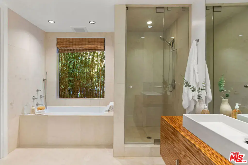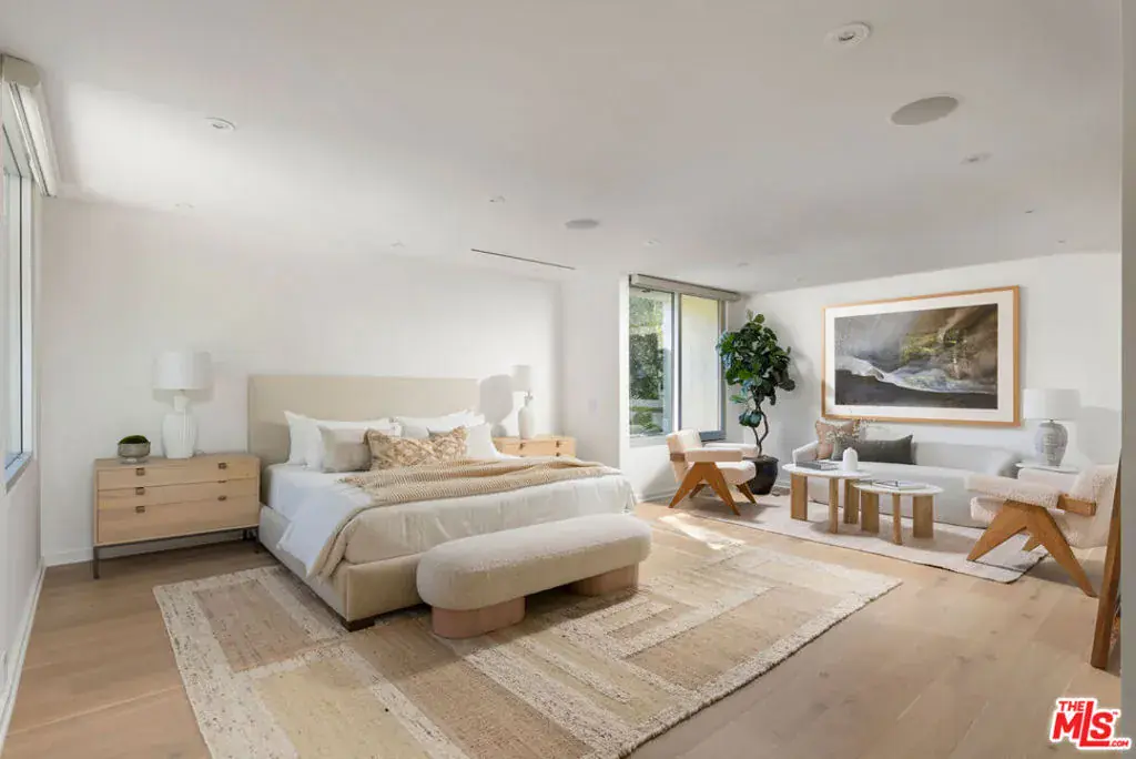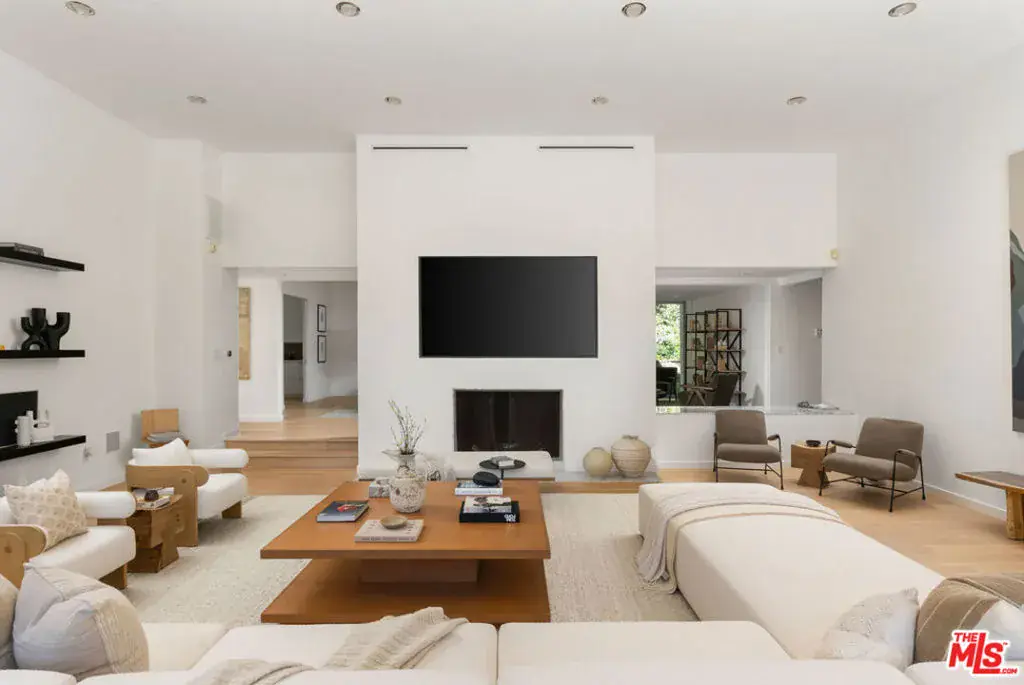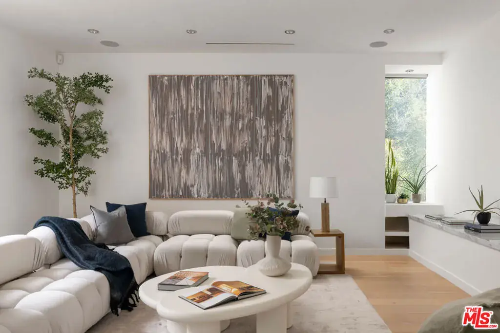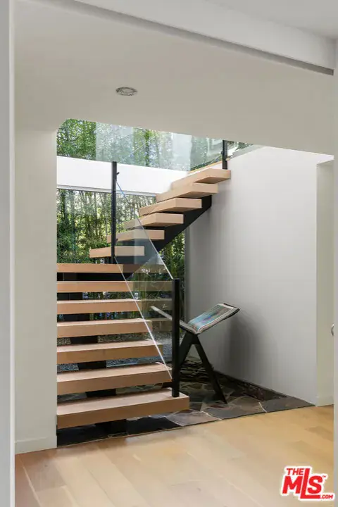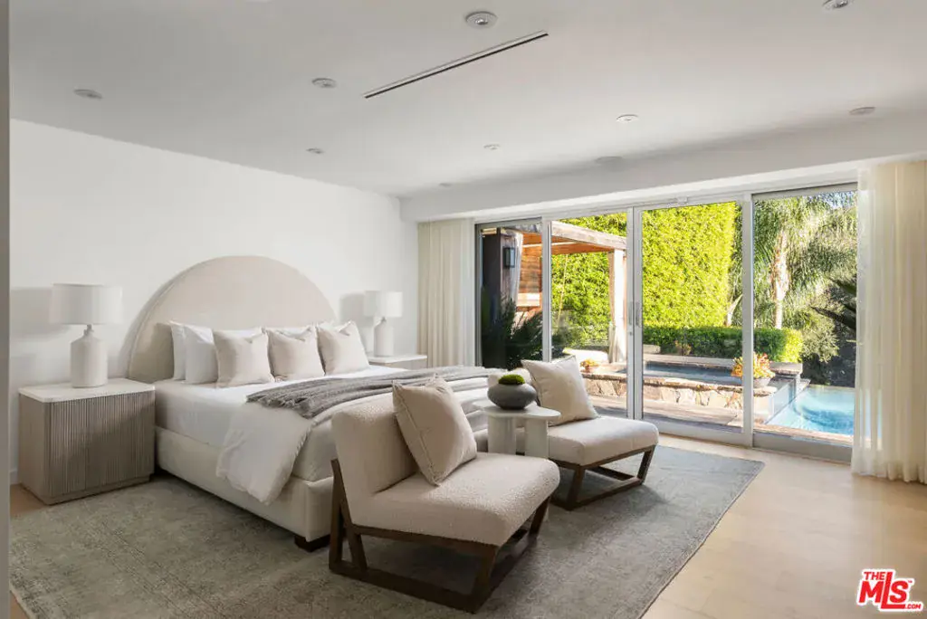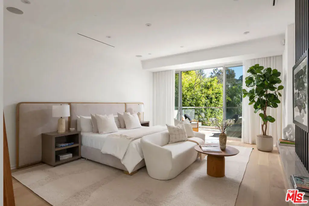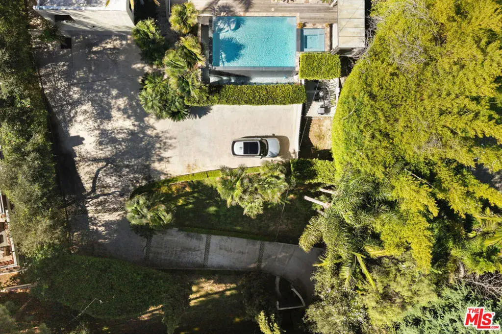 Hidden behind gates and surrounded by mature greenery, this architecturally striking contemporary modern residence sits elevated above the street, offering exceptional privacy and a true sense of retreat.A dramatic glass entry opens to a light-filled interior defined by bold lines, refined materials, and seamless indoor-outdoor flow. Inspired by elevated desert modern design, the home pairs sculptural architecture with effortless livability.The main level showcases a grand living room with soaring ceilings, fireplace, and expansive sliding walls of glass, a garden-facing dining room, a versatile office or wellness space, and a chef’s kitchen outfitted with professional-grade appliances and custom cabinetry that connects to the inviting family room. Four spacious guest suites complete the floor.Upstairs is devoted entirely to the expansive primary suite, featuring treetop views, a private balcony, generous walk-in closet, and spa-inspired bath.The grounds feel like a private resort manicured lawn, outdoor dining terrace, infinity-edge pool and spa, and a sophisticated cabana all wrapped in complete seclusion.A rare and refined contemporary modern sanctuary.