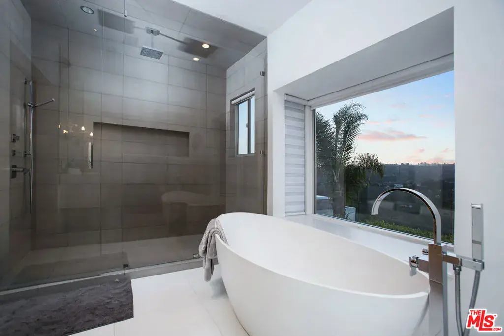 Privately gated and positioned at the top of a quiet Beverly Hills cul-de-sac, this refined architectural contemporary residence offers exceptional privacy, with sweeping 180-degree panoramic canyon and sunset views with no roofline obstruction. Soaring approximately 15-foot ceilings open seamlessly through Fleetwood pocket doors to an infinity-edge pool and expansive outdoor living areas, creating a true indoor-outdoor experience with direct access from every principal space. Designed for both elegant entertaining and everyday living, the home captures natural light, air, and expansive views throughout, enhanced by a retractable skylight in the hallway. The home offers two primary suites. The primary suite features two full bathrooms, two separate walk-in dressing rooms, and dual sitting areas, serving as a private retreat with motorized blackout and daytime shades. Four additional en-suite bedrooms are thoughtfully positioned for comfort and discretion, including a separate guest wing and lower-level suites. Additional highlights include a powder room, custom chef’s kitchen with professional-grade Miele appliances, media room, executive office, entertaining bar, staff quarters, multiple covered outdoor living and dining areas complete with a fireplace, and two solar panel systems. The infinity-edge pool, grassy terrace, and covered loggia are perfectly oriented to maximize the serene hillside setting and unobstructed sunset outlooks. Finished with custom limestone and hardwood flooring, curated designer details, and a state-of-the-art security system with cameras and alarm, this architectural estate offers a rare combination of privacy, views, and refined modern living just minutes from Rodeo Drive, The Beverly Hills Hotel, and the city’s most prestigious dining and shopping destinations.