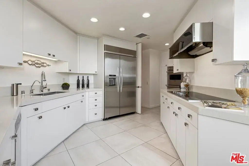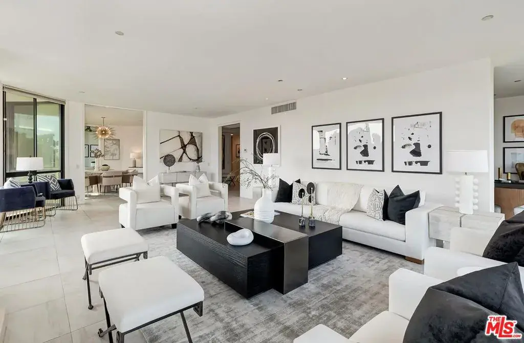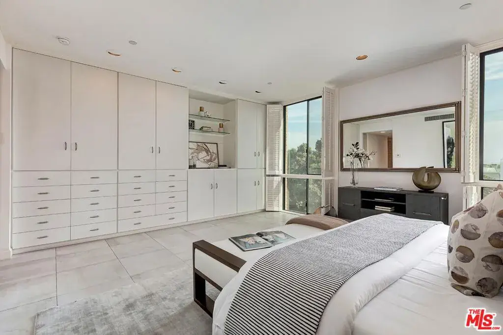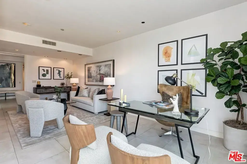 A modern, one-of-a-kind residence, this premier corner home is the largest Plan two-bedroom + den layout at the coveted IV Seasons Condominiums in Beverly Hills. Set on a quiet, tree-lined street, this residence is a refined contemporary aesthetic and exceptional attention to detail. Floor-to-ceiling windows wrap the residence in expansive 280-degree views from the Hollywood Hills to Beverly Hills and vibrant eastern sunrises, filling the interiors with natural light. Oversized white porcelain tile floors and streamlined built-in library cabinetry create a clean, modern backdrop, while the spacious terrace extends the living space outdoors with effortless flow. The formal dining area and sleek galley kitchen are designed for today’s lifestyle, featuring modern cabinetry, and a bright breakfast room overlooking lush park treetops and the city skyline. The primary suite offers a calming, contemporary retreat with a custom walk-in closet, freestanding soaking tub, and an oversized glass-enclosed shower. The second bedroom suite mirrors the same elevated design with a custom closet and stylish ensuite bath. A flexible den serves perfectly as a home office or media lounge, and the redesigned laundry room adds everyday convenience with a modern edge. Residents enjoy full-service amenities, including 24/7 doormen, valet parking, a newly renovated pool and spa, fitness center, and additional storage. All just moments from the best shopping, dining, and experiences Beverly Hills and the Westside have to offer.