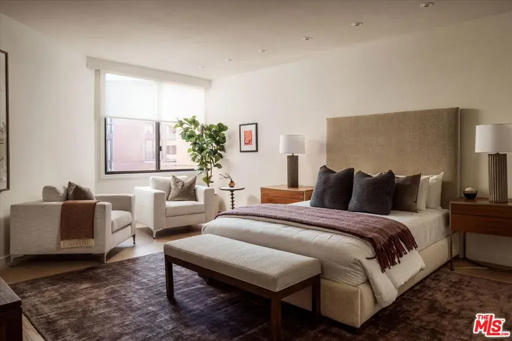 Presenting an exclusive opportunity for discerning buyers: a condominium at the esteemed IV Seasons North Condominiums in Beverly Hills. Reenvisioned by an internationally published and nationally award-winning architect, this residence features a tasteful aesthetic and soft color palette complemented by elegant architectural details. Upon entering through the formal foyer, you’ll find a well-appointed living room with a custom fireplace and cabinetry, an adjacent formal dining room, and a gourmet kitchen equipped with top-of-the-line appliances, custom cabinetry, and a breakfast area. The expansive living and breakfast room terraces provide serene tree-top, city, and mountain views, enhancing the seamless indoor-outdoor flow of the residence. The primary suite serves as a private retreat, complete with dual custom walk-in closets and a spa-inspired bath with designer finishes, a soaking tub, a glass-enclosed stall shower, a linen closet, and a private water closet. The spacious secondary guest suite includes 2 closets and a modern en-suite bath. A versatile den offers space for a home office, media room, or additional living area. The redesigned in-unit laundry room adds convenience and houses new HVAC equipment. Residents of IV Seasons North Condominiums enjoy luxury amenities, including 24/7 doormen, valet parking, a newly updated pool and spa, a gym, and secure storage. The central Beverly Hills location offers proximity to the vibrant dining, and shopping scenes of Beverly Hills & Century City, West Hollywood’s nightlife and dining, the upscale Melrose design and couture shopping district, and the arts and culture of Los Angeles.