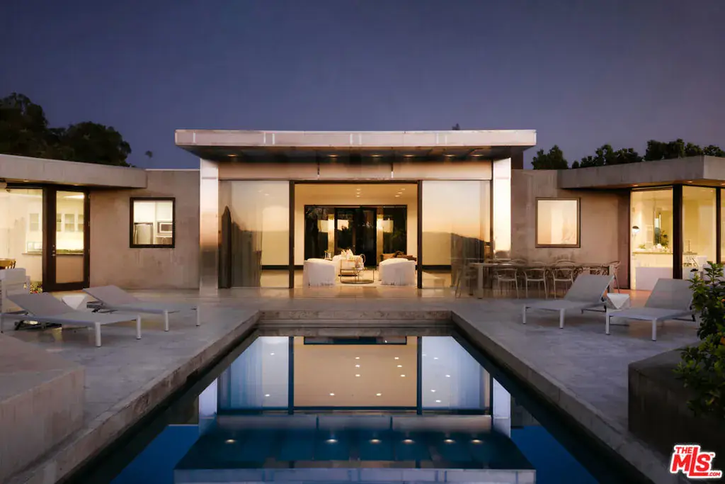 Set on over half an acre in one of Beverly Hills’ most sought-after enclaves, this single-story contemporary residence showcases breathtaking panoramic city and city-light views. Originally built in the mid-century era, the Trousdale Estates home blends timeless architecture with expansive, light-filled living spaces designed for both comfort and style. Ideal for entertaining and everyday living, the residence offers a generous great room, formal living and dining areas, a breakfast area, and a spacious primary retreat with walk-in closet. Wood and tile floors run throughout, complemented by central heating and air conditioning and multiple fireplaces. The kitchen is well appointed with quality appliances and ample workspace. Outdoor living is a true highlight, featuring an in-ground pool and spa overlooking the view, open patio areas, and sweeping vistas that extend across the city skyline. The expansive lot provides exceptional privacy, while a garage and additional parking accommodate guests with ease. This Beverly Hills home presents a rare opportunity to own a private view property with remarkable scale, tranquility, and potential in a premier location.