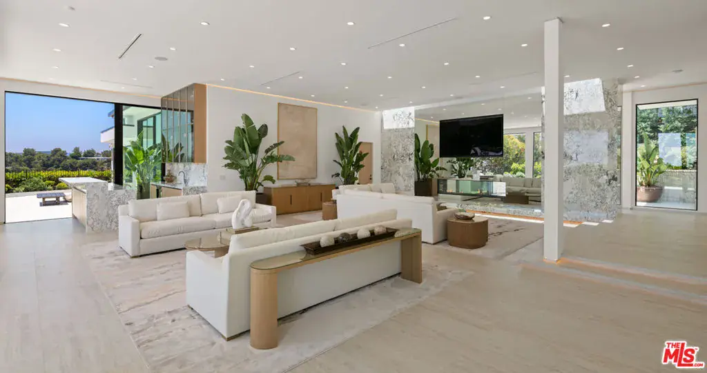 Newly completed construction. Stunning Modern Estate in Coveted Trousdale Estates. Commanding a prime position on one of Trousdale’s most desirable streets, this newly completed modern masterpiece offers refined luxury with elegant design, elevated living, and sweeping city light views. Currently being furnished and available July 1st, this estate sets a new standard for sophisticated hillside living. A private, gated entry leads to expansive living spaces with soaring ceilings and walls of glass that frame soft, panoramic city vistas and bathe the home in natural light. The open-concept floor plan creates a seamless flow between indoors and out, ideal for both grand entertaining and relaxed everyday living. At the heart of the home, a state-of-the-art chef’s kitchen is equipped with premium appliances, custom cabinetry, and a large island perfect for hosting or intimate evenings at home. Step outside to a tranquil outdoor oasis featuring an infinity-edge pool, multiple lounge areas, and thoughtfully designed landscaping for ultimate privacy and ambiance. The luxurious primary suite offers a spa-inspired bathroom, large walk-in closet, and serene views stretching across the city. A private screening room, guest suites, and smart home technology complete this rare offering. Available fully furnished or unfurnished, this exceptional Trousdale residence delivers privacy, prestige, and timeless modern design.
