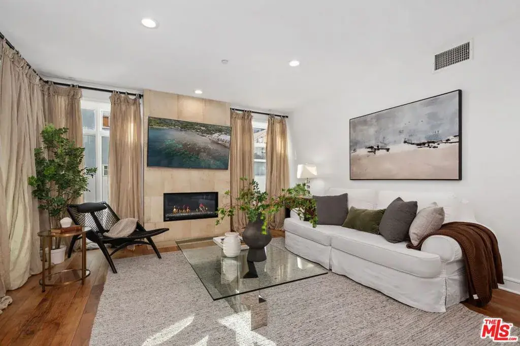 Welcome to La Terrasse, a refined contemporary luxury residence in the city of Beverly Hills, newly refreshed and professionally staged to reflect today’s elevated, design-forward lifestyle. This sophisticated single-level condominium offers approximately 1,942 square feet of gracious living with two bedroom suites and 2.5 baths, blending timeless architecture with modern comfort and effortless flow. From the moment you enter, the residence feels expansive and serene. Warm brushed walnut hardwood floors, limestone accents, and clean architectural lines set a calm, gallery-like backdrop for the newly curated interiors. The open dining and living areas are designed for both everyday living and elegant entertaining, anchored by a dramatic limestone fireplace and framed by generous windows that fill the space with natural light.The open-concept layout flows seamlessly into the gourmet kitchen, featuring sleek Italian cabinetry, Viking stainless steel appliances, stone countertops, and a generous breakfast bar ideal for casual dining or hosting guests. An adjacent breakfast room or flex space works beautifully as a junior dining area, home office, or creative studio, perfectly aligned with today’s work-from-home lifestyle. The primary bedroom suite is a true retreat, thoughtfully emphasizing comfort and scale. It offers direct access to the private terrace, and three custom walk-in closets, and a spa-inspired bath with dual marble vanities, soaking tub, and glass-enclosed shower. The guest suite is equally inviting and versatile, ideal for visitors, a den, nursery or a office. Residents of La Terrasse enjoy a collection of luxury amenities including a screening and lounge room with kitchen for events or parties, fitness center, conference space, sun deck, concierge form 7 AM to 12 AM, controlled access, secure subterranean parking with three parking spaces, & ample guest parking, and private storage. Built in 2009, this boutique building of only 20 residences is known for its privacy, understated elegance, and exceptional location. Ideally situated between Santa Monica Boulevard and Beverly Boulevard, La Terrasse places you moments from Rodeo Drive, Robertson Boulevard, world-class dining, luxury shopping, and West Hollywood nightlife, while maintaining a discreet residential feel. Freshly restaged and move-in ready, this residence offers a rare opportunity to experience modern Beverly Hills living at its finest sophisticated, comfortable, and impeccably presented for today’s buyer.