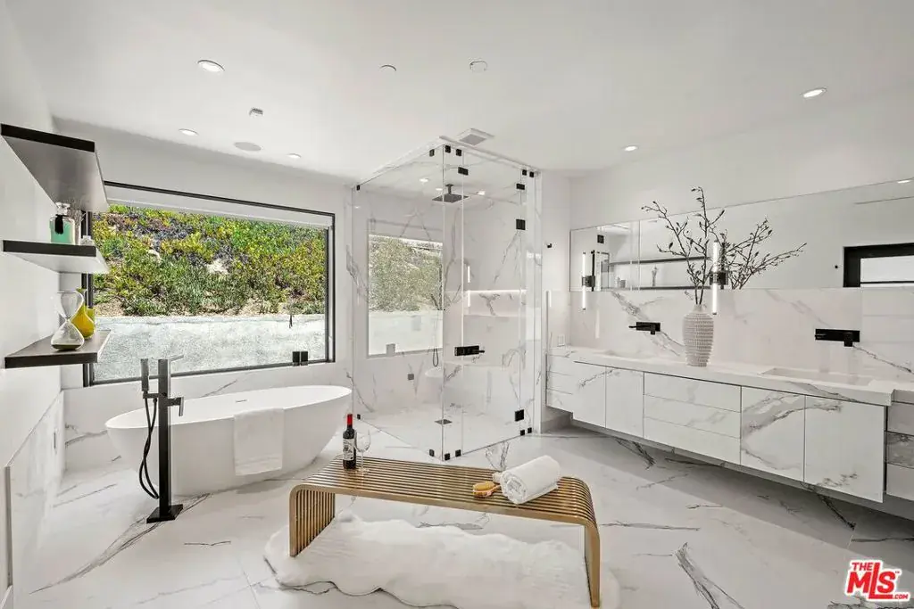Architectural Gem “THE CASTLE” of the Trousdale Estates. High-End Renovation Just Completed. THE CASTLE is situated on a quiet cul-de-sac in the exclusive Trousdale Estates in Beverly Hills, CA. This timeless architectural masterpiece, originally built in 2008, offers 8,600 square feet of sophistication and unparalleled scale. Soaring floor-to-ceiling glass doors and a dramatic skylight welcomes you into a space refined with white oak hardwood floors, custom stone art walls, multiple fireplaces, floor-to-ceiling windows, and custom finishes throughout. This showcase property features a chef’s kitchen equipped with state-of-the-art appliances and an oversized island. A dramatic skylight-adorned hallway leads the way to a luxurious master suite, which offers a sitting area, designer closets, spa-like bathroom and direct access to the backyard and pool. Additional amenities include a wellness center with sauna, steam shower and bath, home theatre, massage room, wine cellar, fire pits, office, bar, staff quarters, storage room, laundry room, and 4 ensuite bedrooms. Expertly designed to integrate indoor-outdoor living, the residence boasts grand pocket doors and captivating views from nearly every room, allowing for maximum natural lighting. Set on a tranquil 20,000+ square foot lot, the property is complete with a newly installed stone hardscape, luscious landscaping, an infinity pool, artificial grass, outdoor living and dining areas with breathtaking panoramic canyon, city, and a peak-a-boo Ocean views. This is a rare opportunity for the most discerning buyer to acquire a residence in one of the most sought-after locations, offering complete privacy and exceptional luxury. Also, Available For Sale $15,500,000.