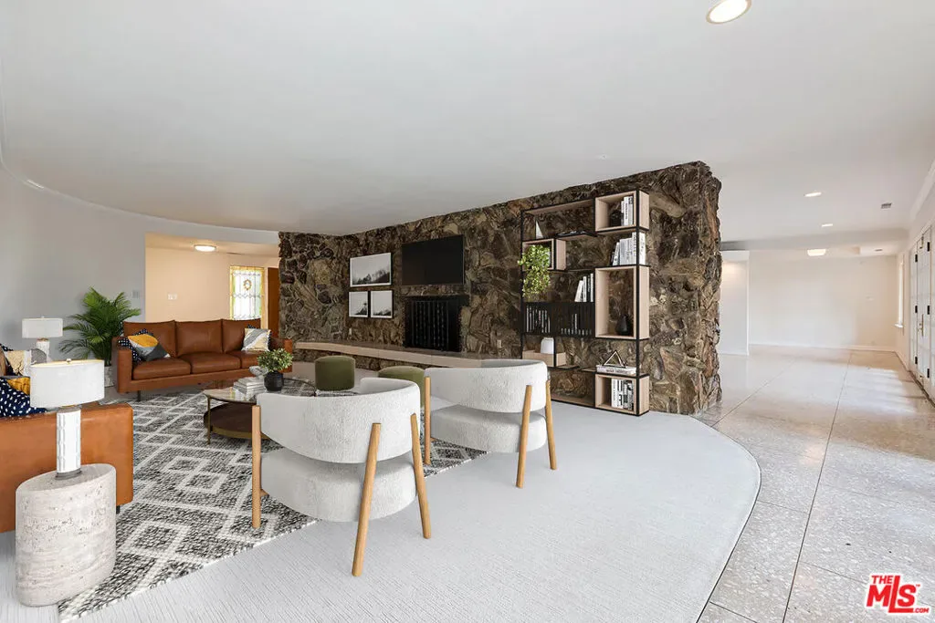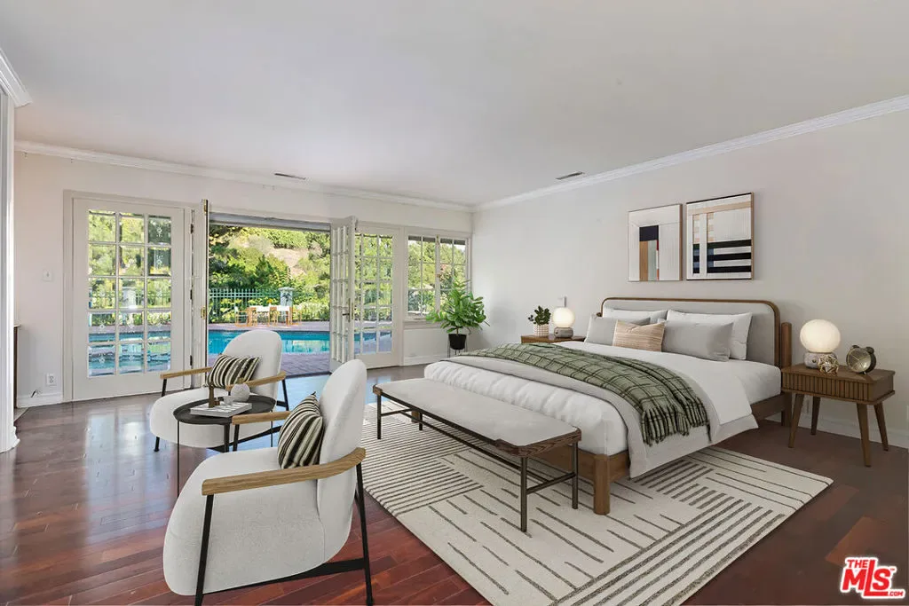Now Trousdale’s best view value of 2026! This rare sunlit 1962 Trousdale Estates custom-built one-level and one-owner gated Hawaiian Modern estate is replete with extensive original terrazzo flooring, lava rock, high ceilings, curvature, and southern/southeastern/southwestern vistas. Semi-circular retro entry foyer leads to large living and family rooms opening to the substantial grounds with patios, lawns, pool, spa, BBQ center, and city/treetop/ocean views. Family room features a fabulous step-down “martini” bar. Super cool expansive kitchen thematically updated over the years with oversized breakfast area. Generous primary suite opens to the grounds with closets galore, vanity area, and a great bath with groovy sunken terrazzo tub. In addition to the primary, there are 3 other bedroom suites on the western side of the home along with two redone bathrooms. Ample off-street parking with large gated motorcourt and 3-car carport. Sited with authentic curb appeal on a generous street-to-street corner lot (only one contiguous neighbor to the west) and exhibiting a tremendous flat pad, the potential is endless for 500 Leslie Ln to become a modern gem on this prestigious, coveted, and exclusive mid-Trousdale 6-home cul-de-sac.