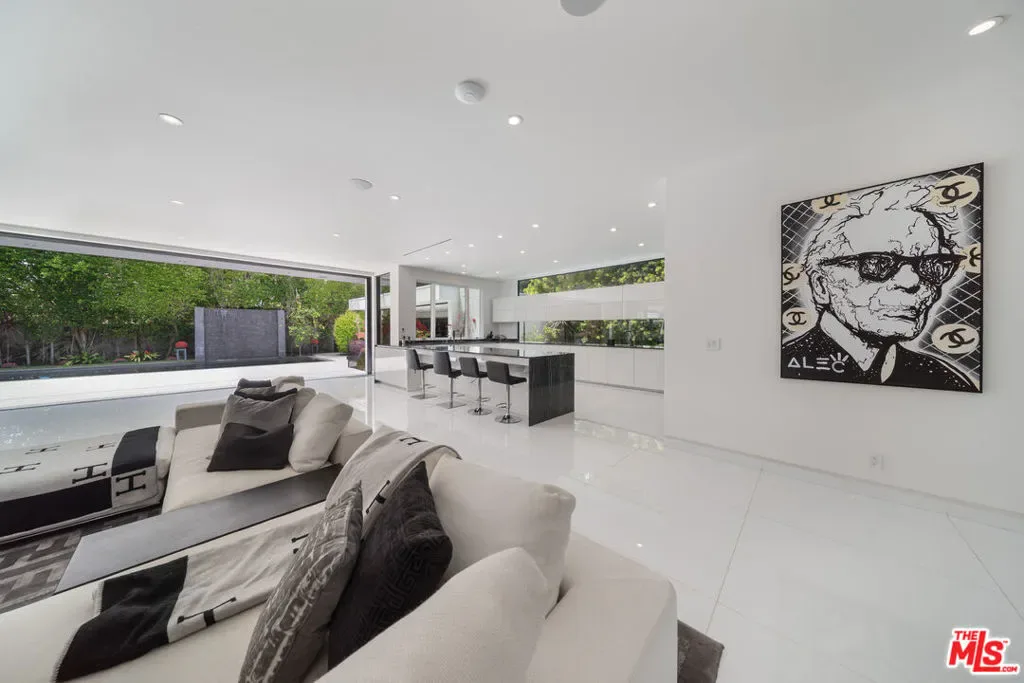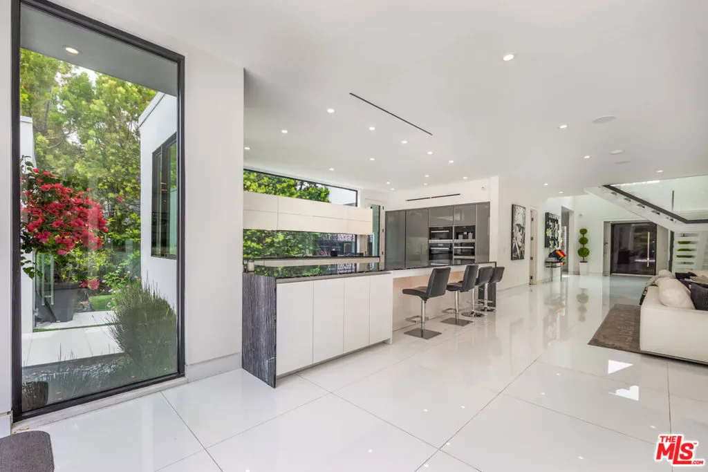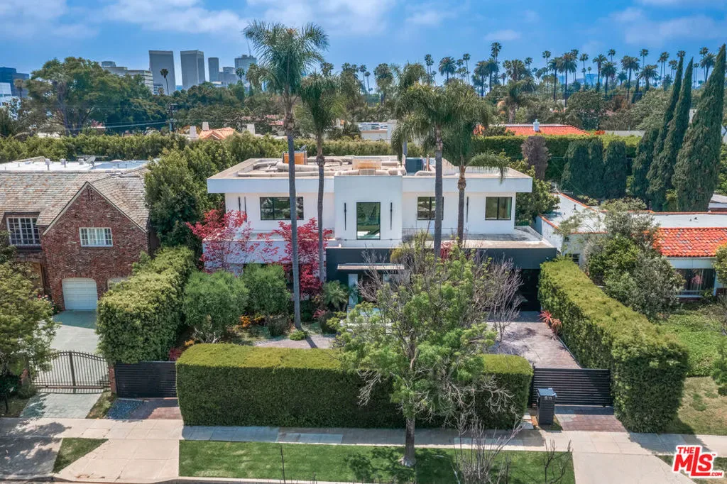 STUNNING MODERN MASTERPIECE IN PRIME BEVERLY HILLS FLATS *Custom-built by the current owners, this architectural showpiece is the epitome of modern luxury living. Designed with a dramatic open-concept layout, the home features soaring ceilings, a striking floating staircase, expansive gallery-style walls perfect for art display, and curated designer furnishings throughout. Enjoy elegant formal living and dining rooms, a chef’s kitchen that opens seamlessly into an oversized family room with a sleek bar, ideal for entertaining. Glass doors lead to a beautifully landscaped yard with a sparkling pool, creating the perfect indoor-outdoor flow. The residence includes **six spacious bedrooms**, with **four located upstairs**, including a luxurious **primary suite** featuring a spa-inspired bath. A maid’s room** is conveniently located off the kitchen. Equipped with state-of-the-art **smart home technology**, including **Control4 and Lutron systems**, this gated estate offers the utmost privacy, complete with a circular driveway and secure entry. Also included is a**beautifully furnished, separate guest house**, perfect for visitors or extended stays. All of this is just a short distance from the world-class shopping and dining of **Rodeo Drive* **. Offered fully furnished.**