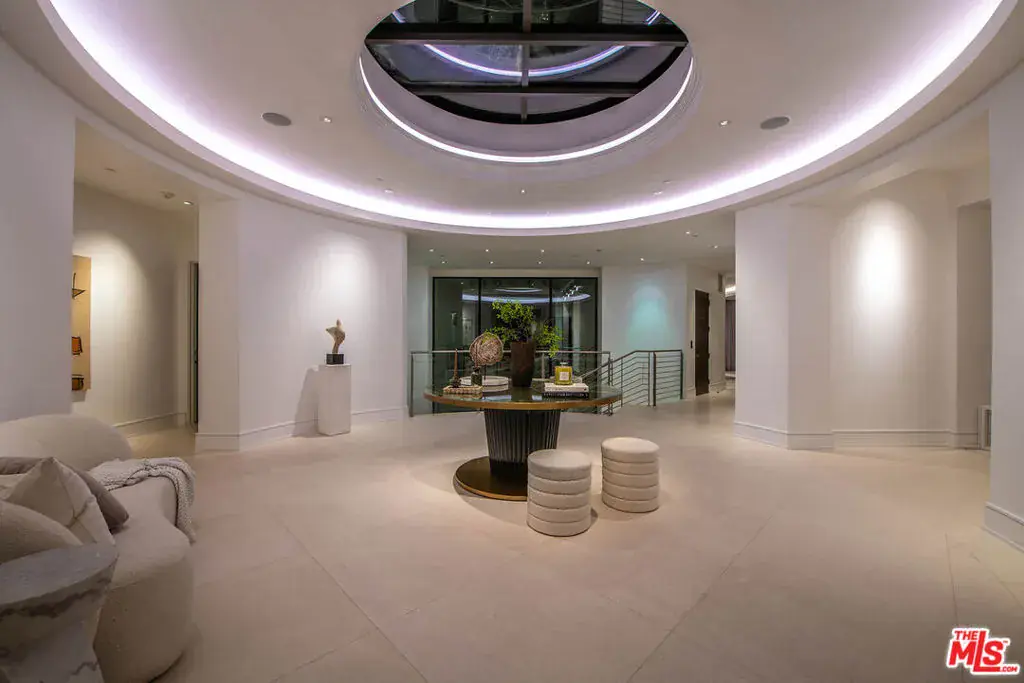 Nestled in the heart of the legendary Trousdale Estates of Beverly Hills, 565 Evelyn Place is a custom-built modern architectural triumph that fuses precision craftsmanship with warm livability. Completed in 2017, this residence was envisioned as a statement of timeless contemporary design sculpted lines, dramatic volumes, and a seamless indoor-outdoor flow that celebrates the Southern California lifestyle. From the moment you approach, the home commands attention. Expansive glass openings frame serene water features, while the landscape unfolds in a series of intimate gardens and gathering spaces. Inside, natural light pours through open volumes, highlighting a sophisticated materials palette of walnut, limestone, and custom Italian marbles. A state-of-the-art lighting program offers pre-set ambient scenes, while Conrad electric shades provide effortless privacy and control.At the center of the home is a breathtaking Poggenpohl kitchen, clad in rare Borghini Carrara marble and meticulously outfitted for both passionate cooks and professional entertaining. Two Miele dishwashers, three integrated refrigerators, a full 60-inch range with steamer oven, a built-in coffee system, and three sinks allow for seamless culinary preparation. A discreet butler’s pantry and a fully equipped second kitchen downstairs support large-scale entertaining while preserving the kitchen’s sculptural elegance. Every living space has been designed for both intimacy and spectacle. The home features three dramatic wet bars with ice makers, a library wrapped in hand-painted wallpaper and custom walnut millwork, and a series of lounges anchored by bespoke fireplaces some leathered marble, others sculpted from specialty stone. The floor plan opens effortlessly to lush gardens and resort-inspired outdoor living, where a full kitchen with BBQ, stovetop, and ice maker joins a fireplace, integrated heaters, and tranquil fountains. A separate courtside stone entertaining area invites long, sunlit afternoons and evenings under the stars. The primary suite is a private sanctuary, featuring walnut floors, dual steam showers, heated bathroom floors, and exquisitely detailed Italian marble baths. Thoughtful luxuries such as a dedicated suite refrigerator elevate comfort to the highest level. Throughout the home, technology quietly enhances everyday living with Crestron whole-house control of lighting, climate, sound, and security. Additional comforts include a central vacuum system, a private elevator, and a five-car garage finished with the same level of detail as the living spaces. A custom-designed gym completes the experience, while water features and curated landscaping lend a sense of tranquility and escape. Every detail of 565 Evelyn Place reflects a passion for design and an uncompromising standard of craftsmanship. This is more than a home, it is a modern estate built for those who value artistry, innovation, and the enduring prestige of one of Beverly Hills’ most sought-after enclaves.