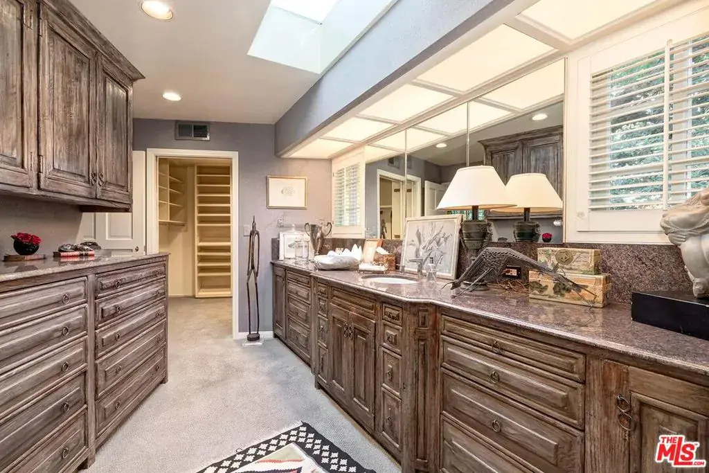 Enter the gated slate motorcourt before stepping into this enchanting secluded wonderland in the heart of the Flats and be prepared to escape from the city. For the first time in 61 years, a fortunate buyer will be able to experience this spacious gated/hedged 1sty European Villa as their new 5-star resort-style home. This designer-curated masterpiece expertly achieves a dramatic level of timeless taste. Super high vaulted ceilings, skylights, beams, exquisite wood flooring, built-ins, custom paneling, and French doors are featured in multiple spaces. Grand entry foyer flows easily to the public rooms for maximum entertaining capacity. The living room with vaulted beamed ceilings leads to a gracious den/library which opens to charming brick patios surrounding an inviting fountained pool. Two other substantial entertaining yards exist with one private in the front and one central slate courtyard accessed by the dining area and primary suite. Sizable skylit cook’s kitchen with top stainless appliances and pantry areas. The enormous primary suite featuring dramatic high vaulted beamed ceilings contains a large sitting area, fireplace, dual baths, dual walk-ins, and direct access to the inner slate courtyard. An adjacent den/office can readily be utilized as a convertible 4th bedroom. One other guest bedroom suite exhibits the size of another primary suite and also includes a sitting area. With over 130 feet of gated frontage featuring mature hedging along with being prominently located on a fantastic corner lot on one of the most prestigious tree-lined roads in the Flats of Beverly Hills, this gem is moments from the best of Beverly Hills and the Westside. Trust Sale.