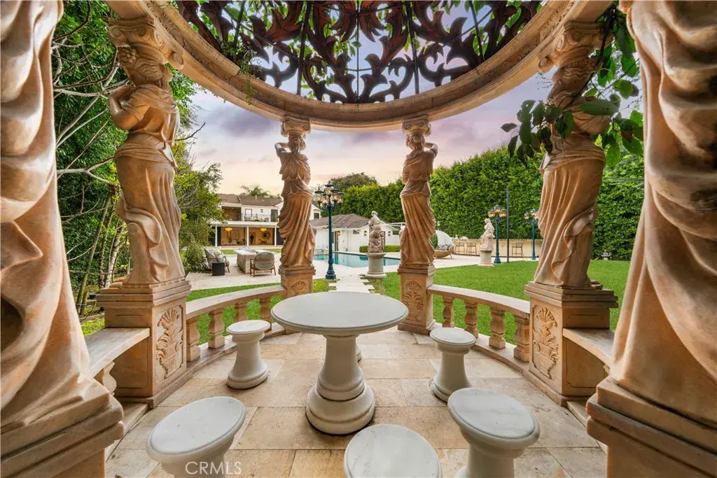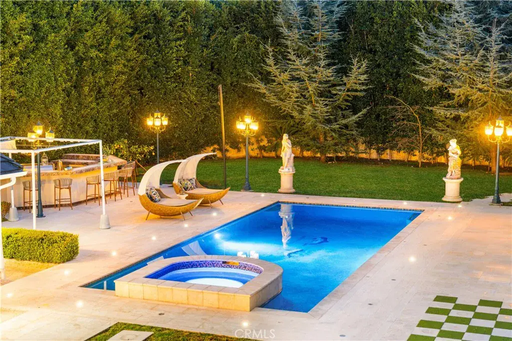 The park-like backyard and yard space showcase mature landscaping, fruit trees, a resort-style pool, and a large BBQ area—ideal for entertaining, relaxing, and outdoor enjoyment. A chef’s kitchen with stainless steel appliances and breakfast area is complemented by a dedicated laundry and service wing, maid’s quarters, and a flexible bonus room. Additional features include a two-car garage and ample storage.