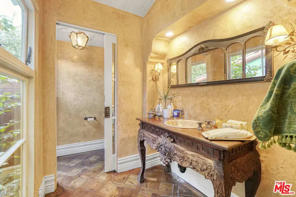Beautifully partially furnished restored 1920s Spanish retreat is located in the prestigious Flats of Beverly Hills. This charming home has been tastefully modernized for luxury living. At the heart of the house is the chef’s kitchen, which opens to the family rooms, an entertainer’s dream, and a custom outdoor barbecue area. Banks of French doors connect the family rooms to an arbor-covered terrace that features a built-in lounge, dry sauna & full bath, as well as a dining area adjacent to the tranquil tiled-bottom pool and spa. Elegant custom details are present throughout, including beamed and coffered ceilings, intricate ironwork, polished wood plank flooring, and hand painted. This serene gem is a MUST-SEE!!! Please refer to private remarks for appointment instructions.