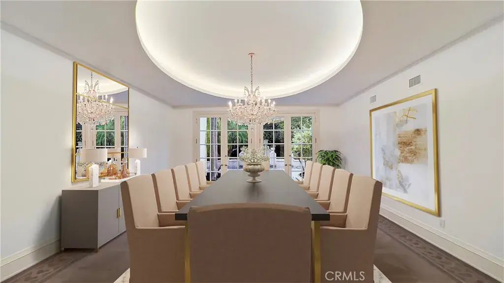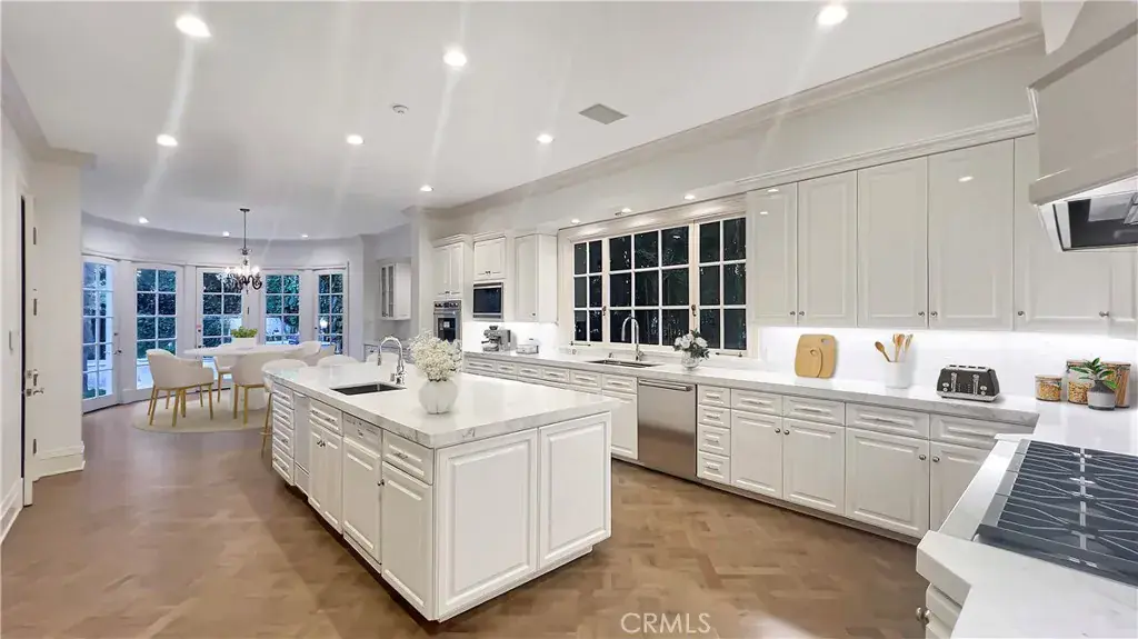 Culinary enthusiasts will love the gourmet kitchen with its huge center island, Wolf appliances, and ample cabinetry. Adjacent to the kitchen is a convenient maid’s quarters featuring a washer, dryer, two bedrooms, a bathroom, plus a separate staircase leading to the second floor. The formal dining room, comfortably seating 12 guests, is ideal for grand entertaining.