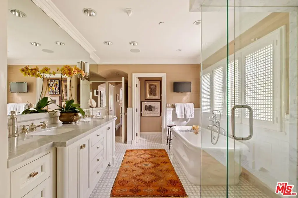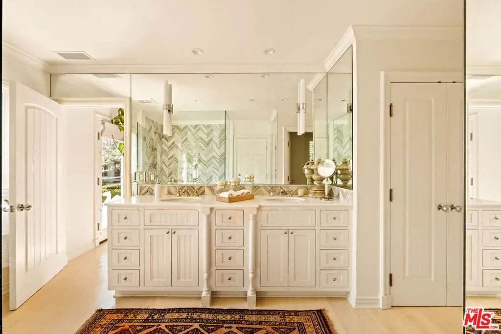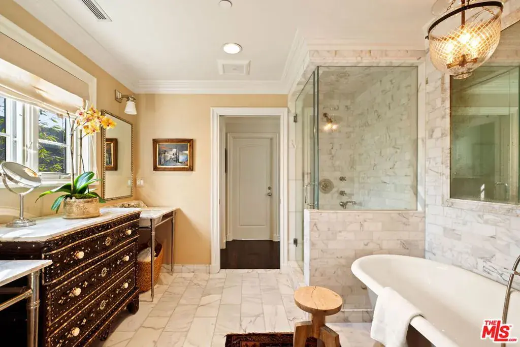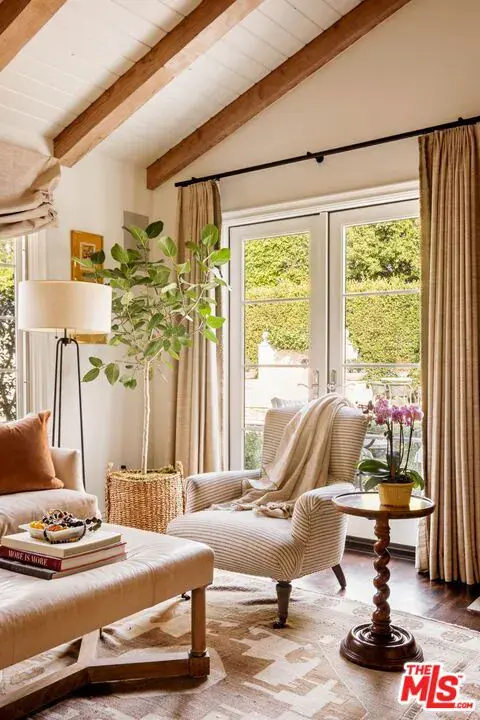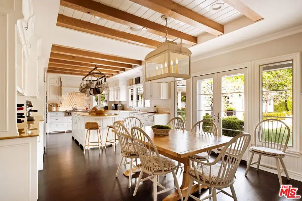 Elegantly reimagined by award-winning designer Wendy Haworth (Felix Trattoria, Stella, Gracias Madre), this Hamptons-inspired estate with a sought after guest house occupies the premiere mid-block position on the coveted 700 block of Arden Drive — widely regarded as the best block on the best street in the Beverly Hills Flats. Thoughtfully composed and beautifully balanced, the home embodies a rare harmony of scale, light, and openness designed to support ease, happiness, and everyday living at its highest level. From the moment you enter, the house reveals a quiet confidence and genuine soul. Gracious, warm, and timeless, it is neither trendy, nor speculative, but deeply considered classic elegance combined with consummate livability. Natural light pours through the interiors, and the home’s intuitive flow reflects a subtle but powerful sense of feng shui: rooms open effortlessly to one another and outward to the garden, creating a feeling of calm, connection, and balance throughout. The main level unfolds with intention. A beautifully appointed gourmet eat-in kitchen anchors the home, while the vaulted-ceiling dining room elevates everyday meals into moments of occasion. The wood-beamed living room, expansive family room with its sunken bar, and the elegant leather-trimmed library are thoughtfully interconnected to invite conversation, retreat, and togetherness. Nearly every principal room opens seamlessly to the backyard, reinforcing a true indoor-outdoor lifestyle. The primary suite, ideally located on the main level for a true single-story living experience, is a sanctuary unto itself. Vaulted, beamed ceilings, a romantic fireplace, dual baths, and dual walk-in closets create a retreat that feels both luxurious and restorative. Perfectly scaled, never excessive.A large functional office and a beautifully curated guest suite complete the main level.Upstairs, two guest bedrooms and a lounge/playroom provide flexible space for children, guests, or creative pursuits. A lower level offers an intimate, top notch, full Dolby surround sound home theater, recreation area and dual wardrobe/glam rooms. Outdoors, the property transforms into a magical, expansive, resort-like environment reminiscent of San Ysidro Ranch (a rare and welcomed pairing with the sophistication of Beverly Hills). Set on nearly half an acre and exquisitely landscaped by acclaimed landscape-architect-to-the-stars Scott Schrader, the grounds feature meandering paths, flowering gardens, lemon trees, and a sweeping lawn that invites barefoot afternoons and family play. While the large sparkling pool, inviting spa, and spacious garden dining area (with its dinner-for-14 table) are each stars in their own right, at the heart of the outdoor experience is the spectacular covered pavilion, with its dramatic wood-burning fireplace. Together, these revered elements invite and nurture long, al fresco meals, celebrations, and gatherings that stretch effortlessly from day into night. This is where the home truly comes alive: birthdays, holidays, quiet mornings, and unforgettable evenings shared together. The high-design guest house — sumptuous, private, and impeccably finished — is prized by all who are lucky enough to experience it, offering exceptional flexibility for guests, extended family, and undeniable appeal. Impeccably maintained and in move-in condition, the property offers everything you need. Every space flows, every element has purpose, and every detail supports a life well lived. Enviably located on the eastern side of the Beverly Hills Flats, the home is just moments from the world-class shopping, dining, culture, and nightlife of both Beverly Hills and West Hollywood. Truly a rare offering defined by intangible qualities that cannot be replicated.