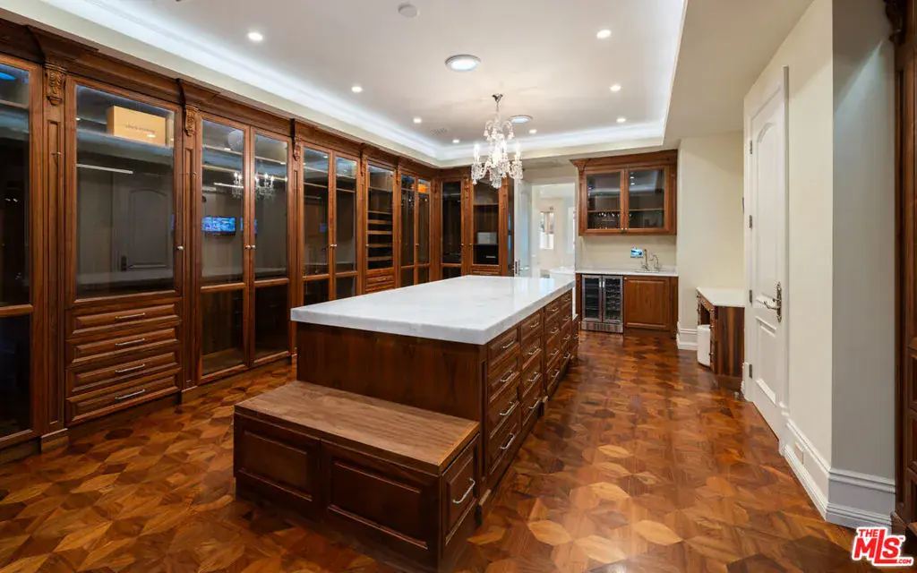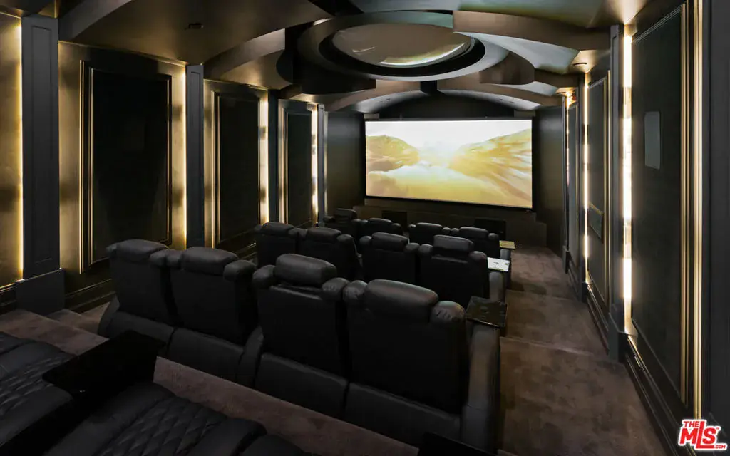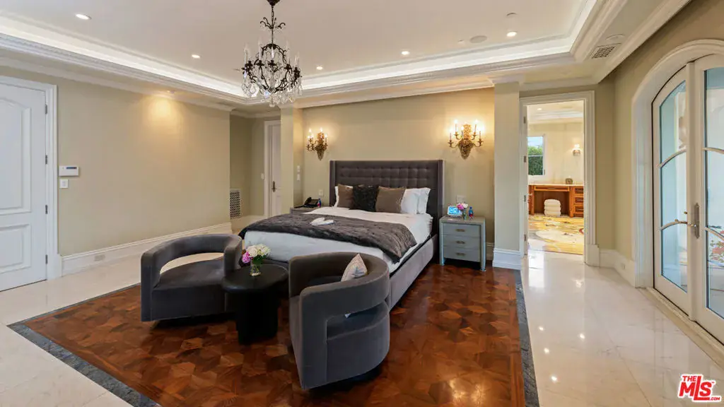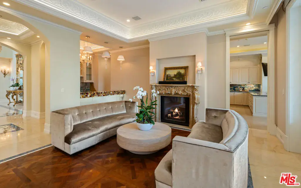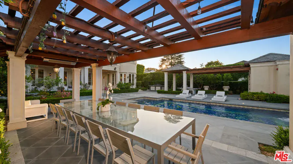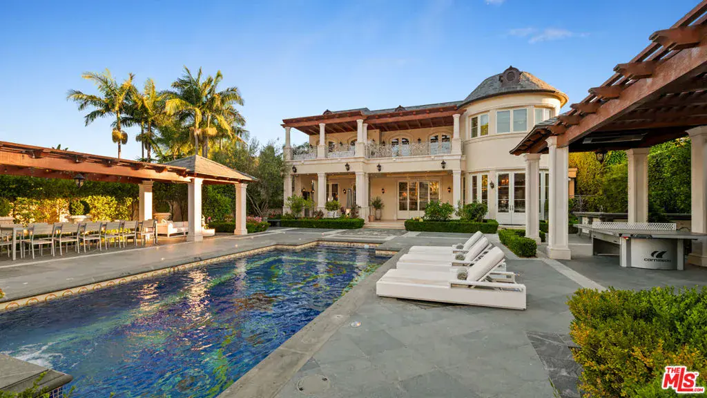Completed in 2017, this newly furnished masterpiece blends timeless European architectural influences with the most advanced modern comforts, including full Crestron smart home integration. Spanning approximately 12,000 feet with three expansive levels serviced by an elevator, this 7-bedroom compound (including a separate guest house) features bespoke finishes throughout and is newly outfitted with Restoration Hardware furnishings. At the heart of the home is an oversized chef’s kitchen with top-of-the-line Miele, Wolf, and Sub-Zero appliances including a double-sided refrigerator, four freezers, 8-burner range, dual ovens, and built-in espresso machine centered around a massive island ideal for culinary creativity and social gatherings. Unwind in the spectacular diamond-quilted leather theater with 14+ plush seats and state-of-the-art audiovisual technology. Entertain effortlessly with indoor-outdoor flow, outdoor poolside shower and bathroom, barbecue area, and multiple balconies. Indulge in spa-like amenities including a rare indoor saltwater pool with swim current jets, rainfall shower, and both dry and wet saunas. A custom wine cellar, lavish primary suite with oversized walk-in closet and jacuzzi, and smart security system with full perimeter cameras, motion detectors, and glass-break sensors complete the experience. Additional features include water softening and reverse osmosis filtration systems, garage parking, and a separate guest house ideal for staff, guests, or a private home office setup. This one-of-a-kind estate is offered fully furnished and move-in ready. Experience luxury living at its finest, in the most prestigious location Beverly Hills has to offer.