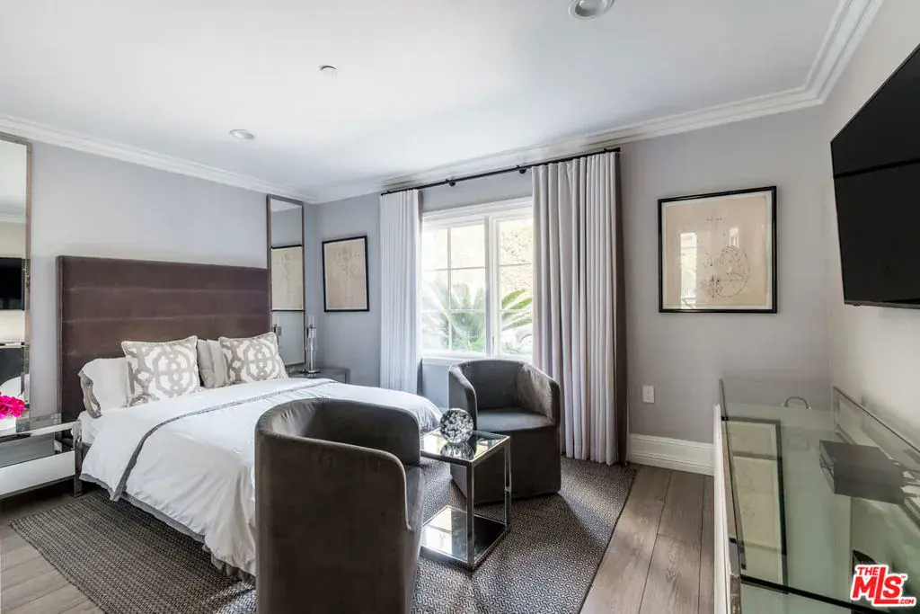 Situated in Beverly Hills flats and only minutes away from the iconic Rodeo Drive, this stunning six-bedroom, six-bathroom entertainers dream home is situated on over half an acre on one of the most coveted blocks in the exclusive tree-lined flats of Beverly Hills. Gated and ultra-private this sleek and sophisticated Architectural Mediterranean villa features a large eat-in gourmet chef’s kitchen, expansive dining and living room, and a private outdoor lounge which opens to the tennis court, pavilion, pool, and spa and separates detached guesthouse. The grand master bedroom features a luxurious spa bath, shower, and an oversized walk-in closet. Property available immediately and furnished. For short term rental contact leasing agent.