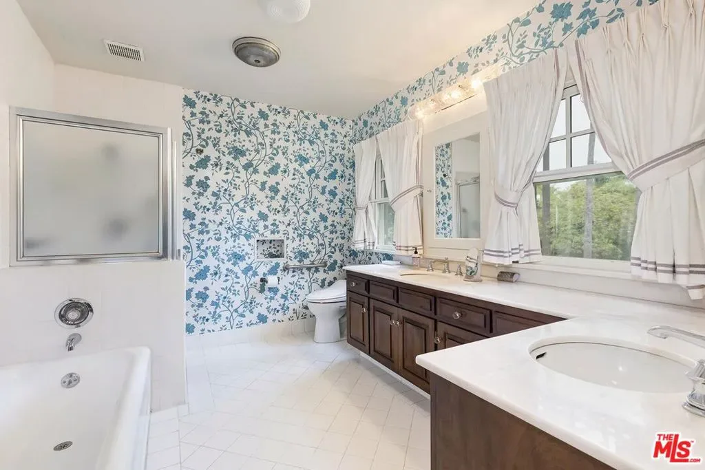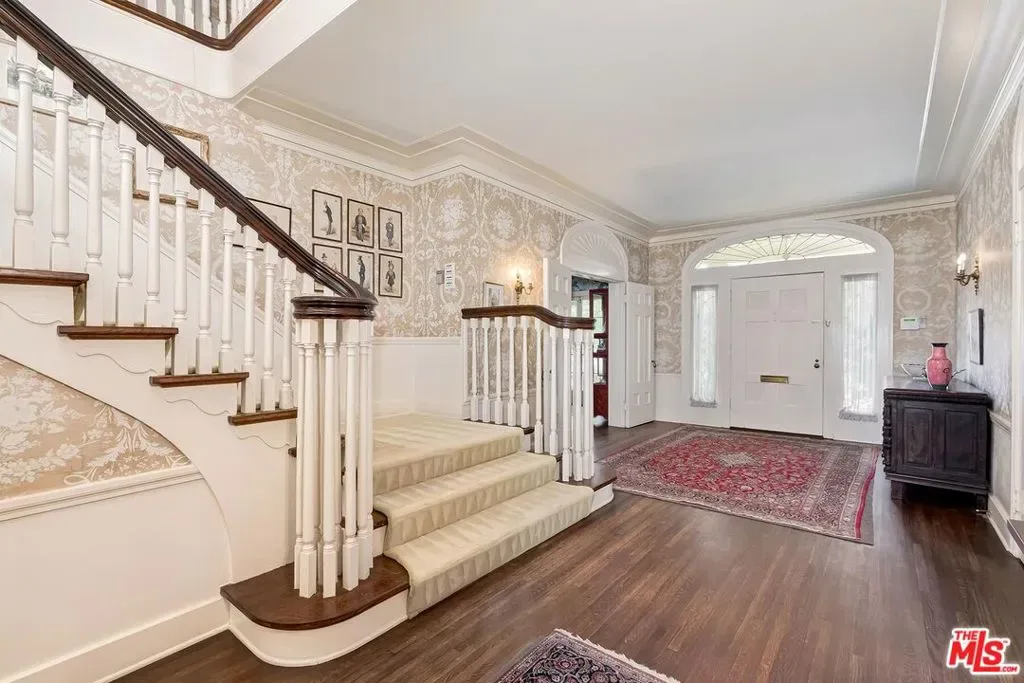 Trust Sale – 1st time available in 50 years. This stately center-hall 2sty East Coast Colonial exhibits total charm and character while sitting on a tremendous lot with 100 feet of frontage at the 50-yard line of one of the Beverly Hills’ Westend Flats most prestigious 800 blocks. Spacious rooms featuring wood floors, mouldings, high ceilings, and abundant natural light. Grand deep entry foyer with dramatic staircase leads to enormous and gracious living and dining rooms. Living room opens to a huge Great Room with bar and fireplace flowing to the massive grounds with extensive patio space, BBQ center, endless lawns and mature foliage. 4 generous bedrooms (3BD + convertible library) and a quaint sunlit office upstairs with maid’s quarters downstairs. The mammoth primary suite includes a sitting area, fireplace, and a big dressing room. Large chef’s kitchen and breakfast area. A central ‘mud room’ is downstairs and opens to the grounds. A sizeable guest house of 571 sq ft sits atop the garage and storage room with 2 possible bedrooms, kitchen, and bathroom. This is truly a rare generational opportunity to acquire a ‘trophy property’ with a plethora of potential. Sold in strictly “as is, where is” condition.