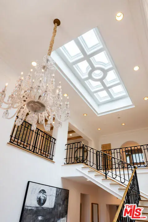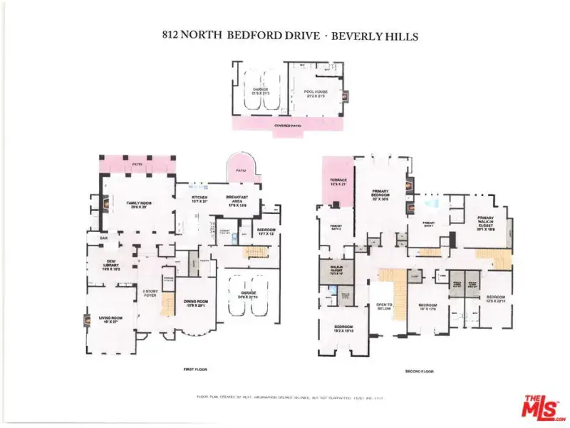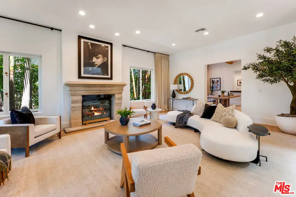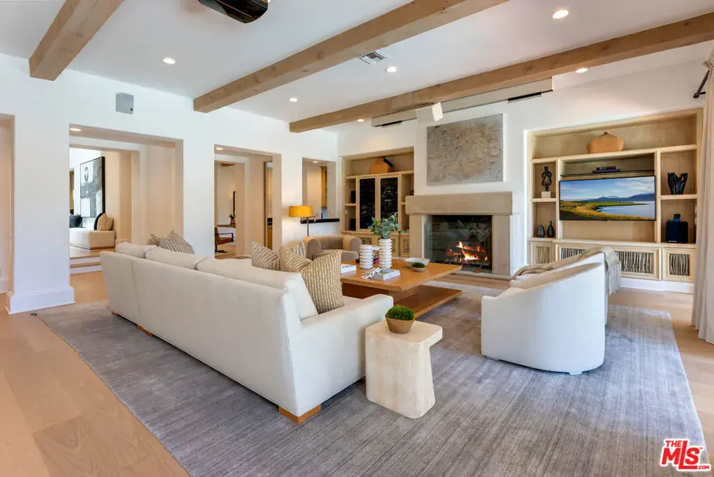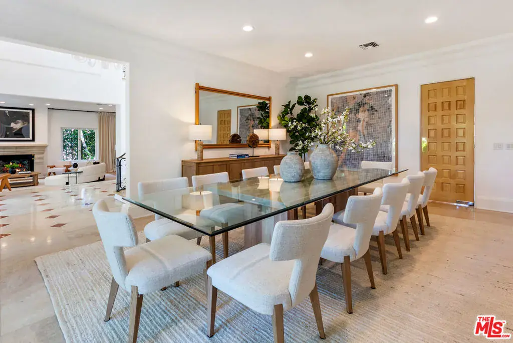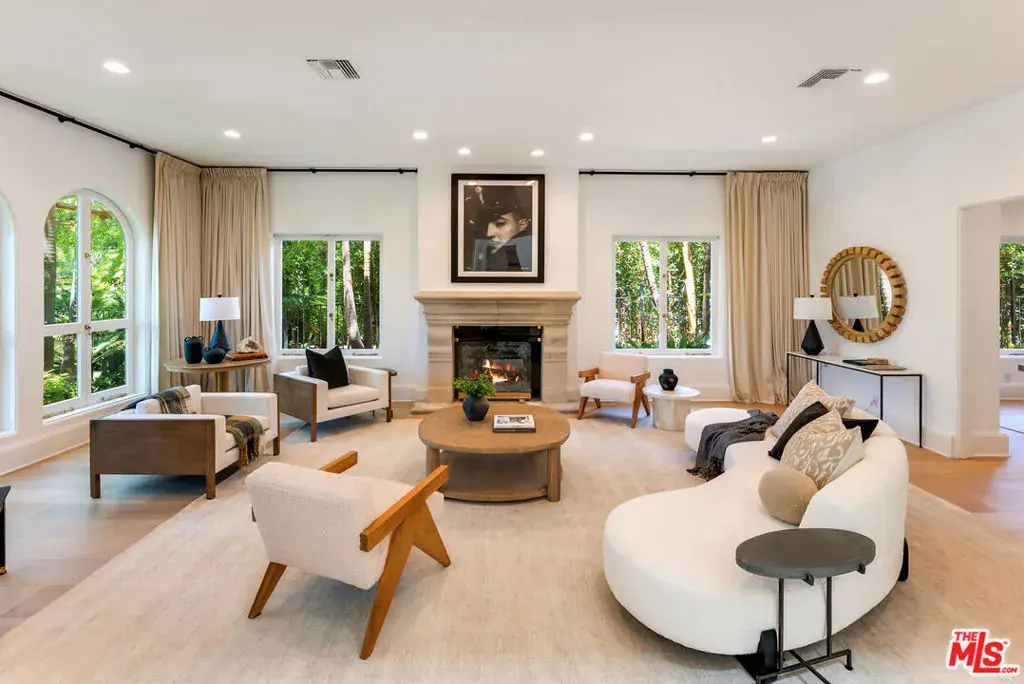 Presenting The Bedford Estate, a newly refreshed Mediterranean masterpiece in the coveted Flats of Beverly Hills. Gated and private, the striking white exterior with black trim is framed by a circular driveway, leading to an elegantly designed two-story residence of approximately 11,000 square feet on a half-acre of pristine grounds. A dramatic two-story foyer with a sweeping staircase introduces the formal living room, dining room, office, and an exceptional family room with floor-to-ceiling French doors that open seamlessly to the backyard. Wide-plank white oak floors, soaring ceilings, expansive windows, multiple fireplaces, and abundant natural light create a warm yet grand atmosphere. The chef’s kitchen is a culinary dream, featuring skylights, a large center island, and an expansive informal dining area that also opens to the outdoors. The backyard is a private oasis, offering multiple seating and lounging areas, an inviting pool, and a beautifully landscaped grassy yard. A separate pool house complete with a bath provides the perfect retreat or entertainment space. Upstairs, the primary suite is truly exceptional, showcasing vaulted beamed ceilings, floor-to-ceiling windows, a fireplace, and two luxurious spa-style bathrooms each with a seating area and boutique-sized closets. Three additional upstairs ensuite bedrooms offer generous proportions, high ceilings, and refined finishes. A service bedroom is conveniently located downstairs near the back staircase. Completing the estate are two attached garages plus two additional garages accessed from the alley. This is truly a one-of-a-kind home in a one-of-a-kind Beverly Hills location.