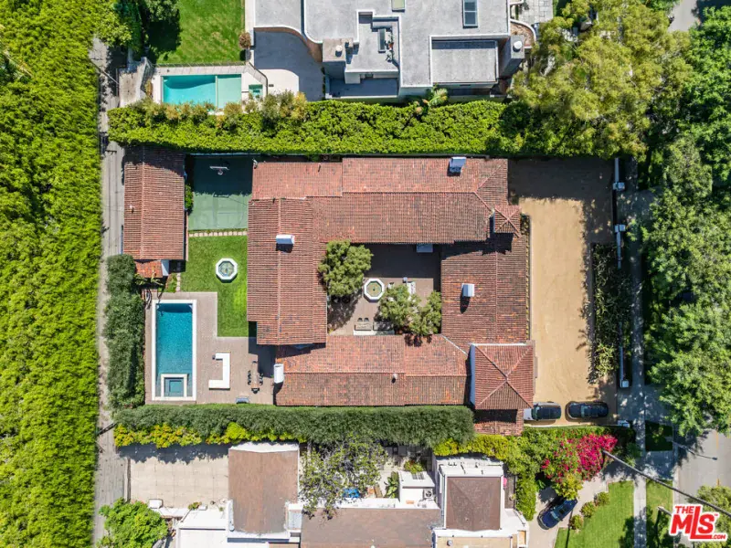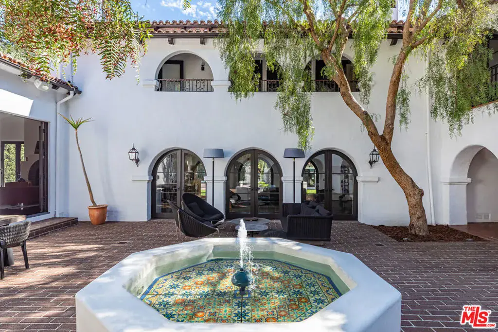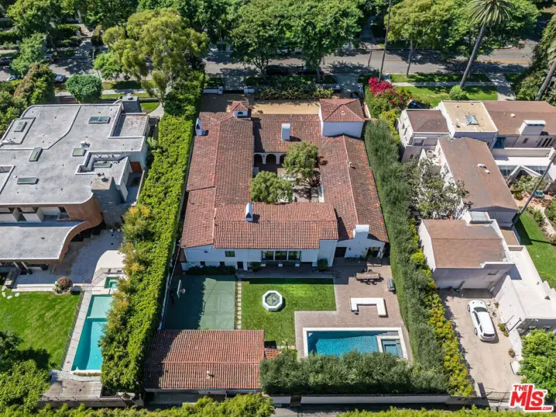 Immortalized on the cover of Architectural Digest and published in several editions, this rare Spanish Colonial on iconic Roxbury Drive in the Beverly Hills Flats offers 6BD, 9BA and effortlessly blends timeless architecture with modern sophistication. Originally designed by Ralph Flewelling, FAIA, the approx. 8,434 SF residence has been exquisitely updated to preserve its historic elegance while introducing contemporary comforts. Archways, soaring truss ceilings, wrought-iron accents, and hardwood and terracotta floors create a dramatic yet inviting atmosphere.The main living spaces open to a serene central courtyard with sitting areas and fountain, while a grand entry hall doubles as a stunning library with groin-vault ceilings. Formal living and dining rooms, a den/media room, office, and a spectacular kitchen with adjoining great room provide ample space for both entertaining and everyday living. Two guest bedrooms on the main level are complemented by four upstairs, including a majestic owner’s suite with fireplace, dual baths, and balconies overlooking the courtyard and grounds.Outside, lush landscaping frames multiple seating and dining areas, a sparkling pool and spa, sports court, and a charming guest house, offering the perfect blend of privacy and resort-style living. A legacy property where Hollywood glamour meets modern luxury. Now is your opportunity to become part of the impeccable pedigree of ownership.