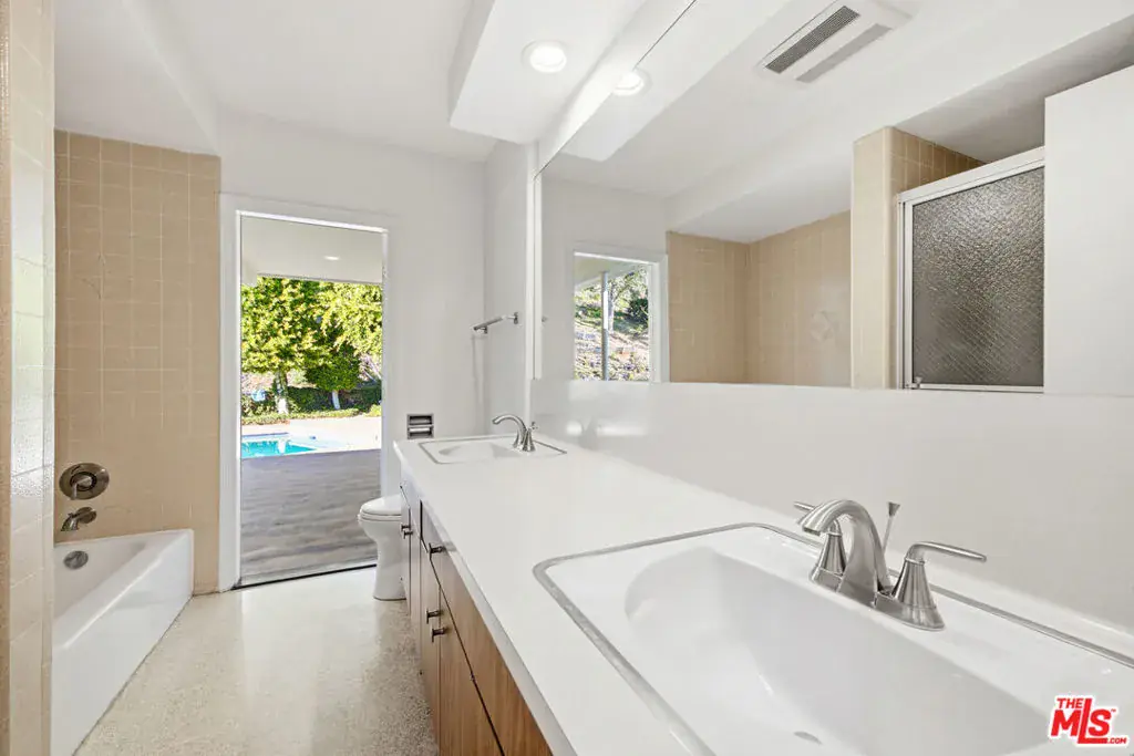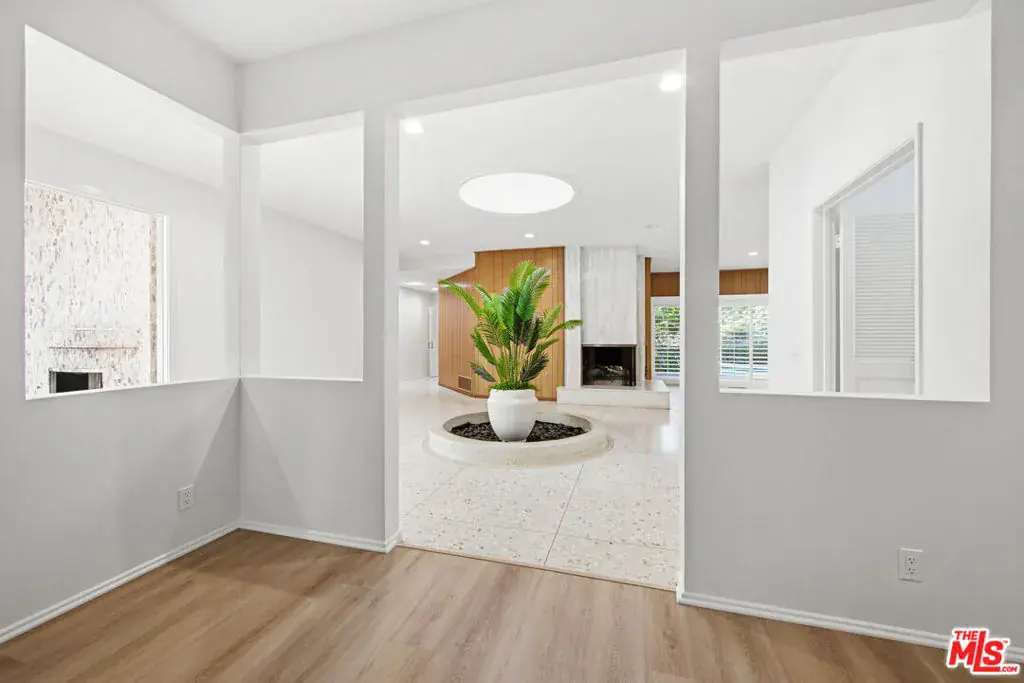 Welcome to 8900 Alto Cedro Drive, a beautifully refreshed Beverly Hills residence that blends timeless character, generous interior volume, and sun drenched living spaces. Situated on a quiet cul de sac north of Sunset, the home seamlessly merges classic mid century charm with thoughtful modern updates. A dramatic foyer with terrazzo style flooring and a circular atrium centerpiece sets the tone as the home opens into expansive living areas, including a warm family room with wood paneling and a marble framed fireplace, as well as an oversized second living room featuring soaring walls, plantation shutters, and a striking curved stone fireplace. The newly updated kitchen offers modern cabinetry, quartz countertops, stainless steel appliances, abundant natural light, and an additional prep area for convenience. Throughout the home, you’ll find spacious living and dining areas ideal for entertaining, multiple stone and marble wrapped fireplaces, updated flooring and lighting, wide windows, ample closets, and generous built in storage, all within a single level floor plan that flows effortlessly. Outdoors, enjoy true California living with a large private pool, spa, and full tennis court surrounded by mature landscaping, along with a gracious front courtyard that enhances the home’s quiet, private ambiance. Close to world class dining, boutiques, top schools, and the best of Beverly Hills amenities, this property offers comfort, privacy, and refined living in an unbeatable location. Lease price is $17,000 per month, a rare opportunity to enjoy a spacious, uniquely designed Beverly Hills home with classic charm and contemporary updates.
