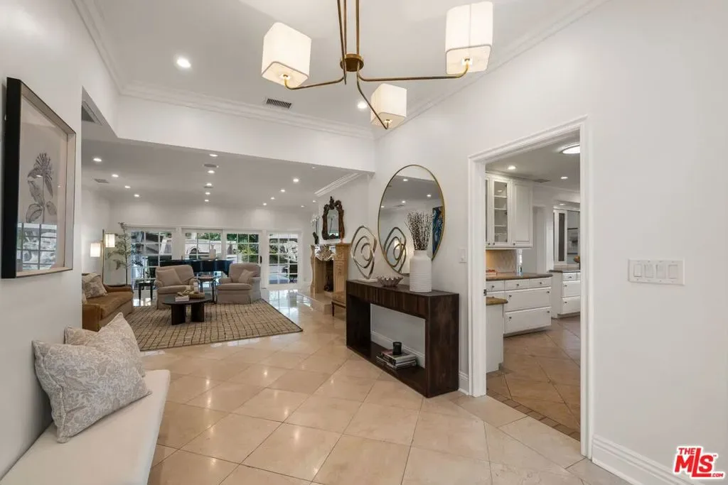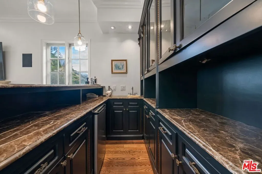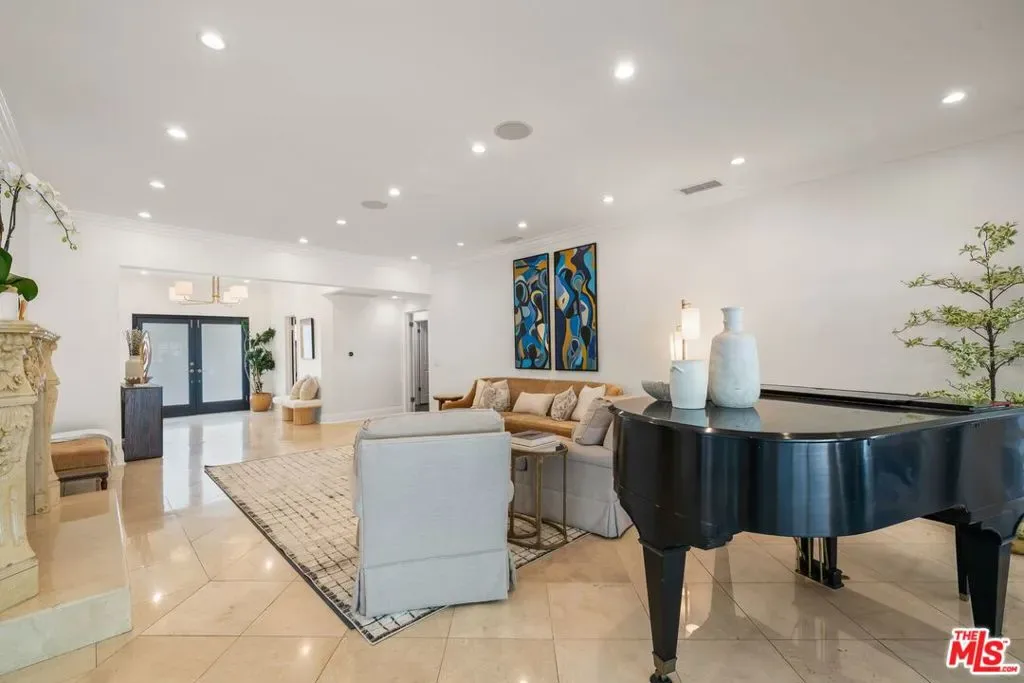 Situated on a quiet street in prestigious Trousdale Estates, this gated contemporary residence offers refined luxury and effortless indoor-outdoor living on nearly one-third of an acre of lush, tropical grounds. With over 5,000 square feet of living space, the home delivers scale, privacy, and a true resort-style experience rarely available for lease. Thoughtfully designed with an open, flowing floor plan and abundant natural light, the residence features six bedrooms and six and a half baths. The main level is ideal for comfortable living and entertaining, offering four en-suite bedrooms, including an expansive primary suite, along with formal living and dining rooms and a seamless connection between the kitchen, breakfast area, and den. This functional layout allows for easy single-level living while still providing generous space throughout.The first-floor primary suite serves as a private retreat, complete with an oversized walk-in closet and spa-style bath featuring a Jacuzzi soaking tub with jets, a separate oversized shower, and dual vanities. French doors open directly to the backyard, connecting to the pool and gardens. A chef’s kitchen anchors the home, highlighted by a large island with a 5-burner Wolf range, custom cabinetry, and ample counter space. The gourmet kitchen opens to a sunny breakfast room and flows into a spacious family room/den with a fireplace, bar, and surround sound system, ideal for everyday living and entertaining. The home also features three fireplaces in the formal living room, den, and dining room. Upstairs, two generously sized bedrooms share a large bath, offering flexibility for guests, a home office, or extended living. A dedicated game and entertainment room elevates the home’s lifestyle appeal, featuring movie theater seating, an 84″ screen, and a pool table, perfect for hosting or relaxing at home. French doors and windows line the rear of the home, opening to a backyard that feels like a private tropical paradise. The grounds include mature landscaping, multiple terraces, and a resort-style pool and spa with heater, along with a large outdoor bar and BBQ area designed for effortless entertaining.In front, enjoy your own basketball hoop with room to play-another added amenity that enhances the property’s versatility. Additional features include high ceilings, recessed lighting, copper plumbing, ample storage, a grand double-door entry, parking for up to six cars, and full gated privacy.Located moments from world-class dining, shopping, and entertainment, this exceptional property offers the best of Beverly Hills living. This is a rare opportunity to lease a true garden estate in one of the city’s most coveted neighborhoods. Also available fully furnished for $35,000