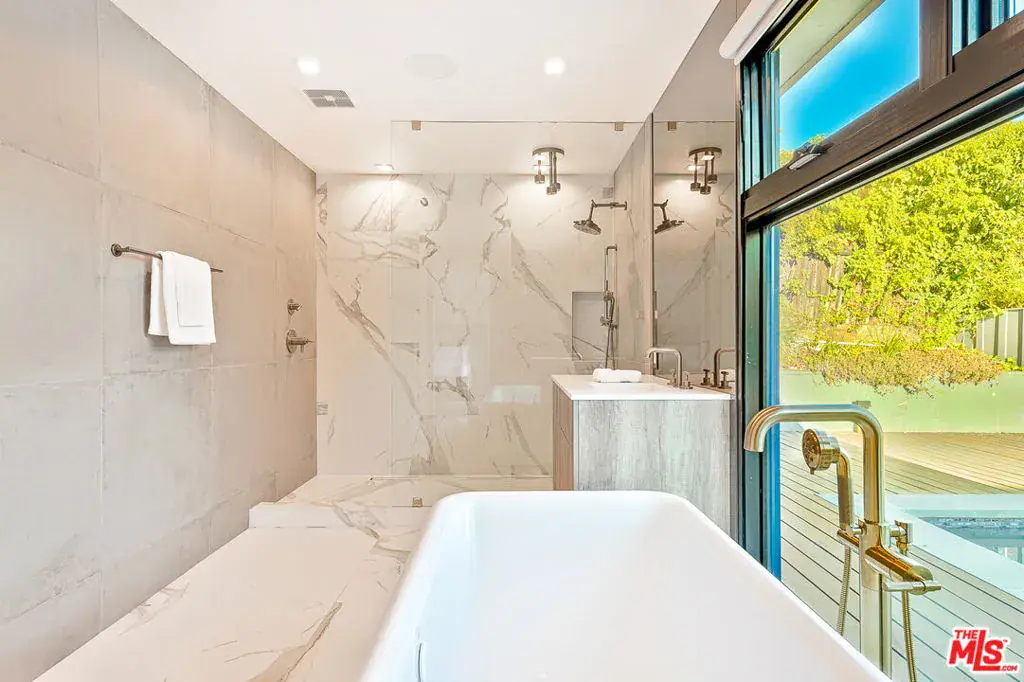 Stunning Mid-Century Modern farmhouse with seamless 6,500 Sq. ft. of indoor/outdoor living. This brand new remodeled home is located on a quiet cul-de-sac in prime Trousdale Estates in Beverly Hills. The 1st floor offers a beautiful, bright open floor plan w/ high ceilings at the entry, recessed lighting throughout, and hardwood & tile flooring. A gourmet kitchen w/ high-end appliances opens to a private, grassy patio. A dual-sided fireplace centers the living room & family room, leading to a magnificent, private backyard w/ pool, sun deck, & fire pit lounge. The backyard features lush landscaping w/ mature, architectural trees & complete privacy. The 2nd floor has an expansive entertainment room with a patio overlooking majestic views! There is a 5th bedroom/ office on the 2nd-floor w/ full bath & wet bar. This beautiful property has its own unique touches, and meticulous attention to detail, and is the quintessential example of California Indoor/Outdoor living. Available for long term rentals and/or short term rentals with flexible lease terms.
