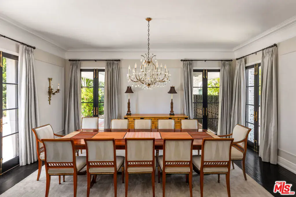 Stunning and fully remodeled traditional estate on almost half an acre in the heart of Beverly Hills Flats, offering 6 beds, 7 baths, and approximately 6,200 sq ft of elegant living space. The main house showcases a true chef’s kitchen, a luxurious primary suite with salon sink, expansive closets, spa-like bath, and state-of-the-art amenities throughout. Retractable glass doors open the family room to a lanai that seats 22, seamlessly blending indoor-outdoor living with a lushly landscaped yard, pool, and spa- ideal for entertaining. Five en suite bedrooms in the main residence plus a beautifully renovated guest house with kitchenette, laundry, and bath complete this private oasis. A rare offering on one of the most sought-after streets in Beverly Hills.