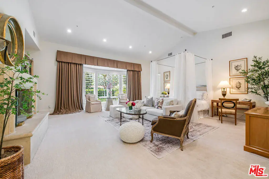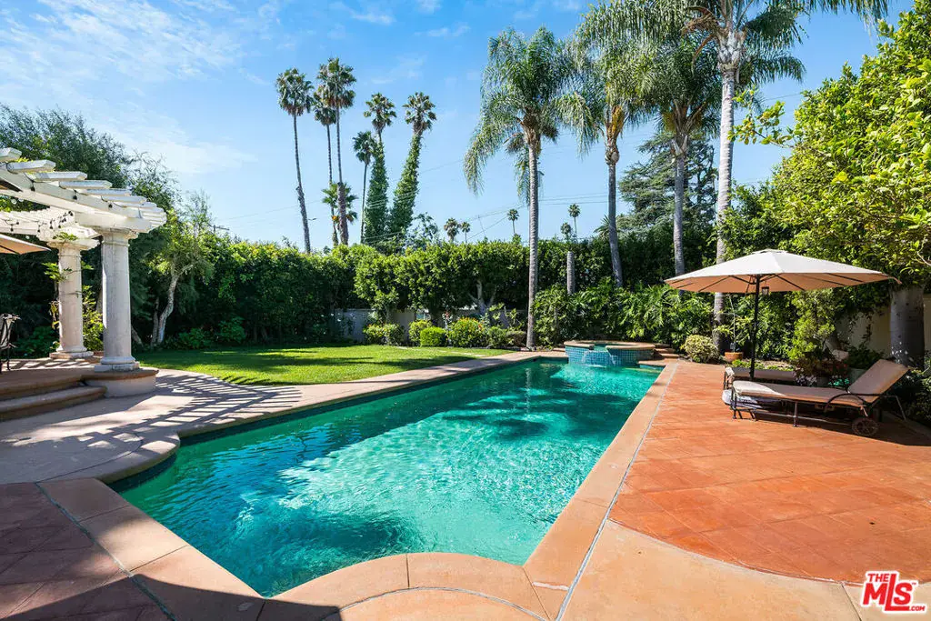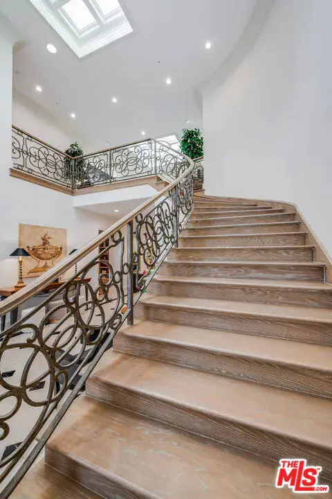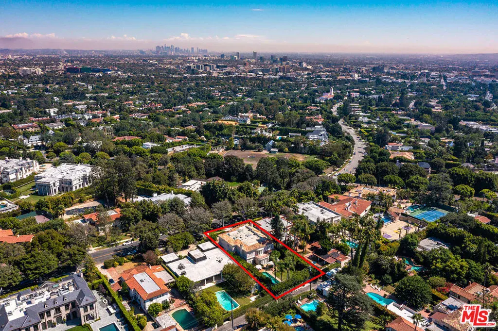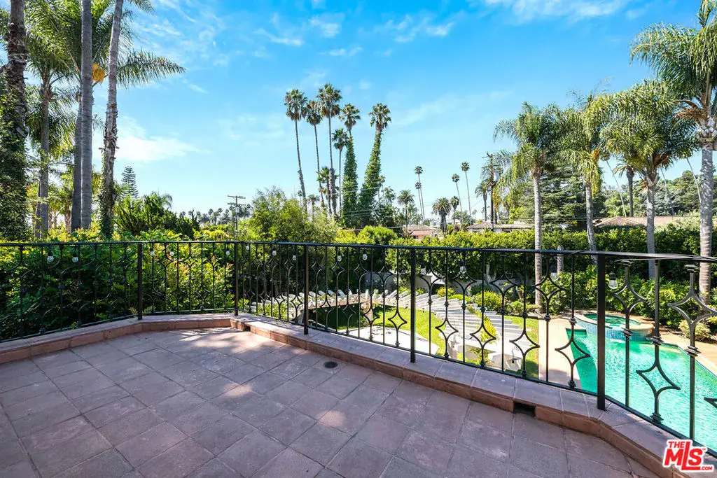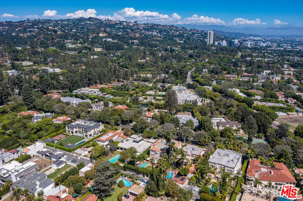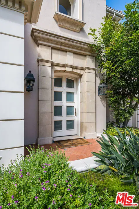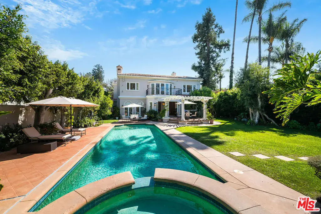Behind double front gates in prime Beverly Hills just North of Sunset Boulevard, this grand Contemporary Villa, built in 1991 by renowned builder Martin Selko and designed by Sheri Schlesinger, showcases exquisite curb appeal and timeless elegance. A sweeping motor court, two-car garage, and lush landscaping set the stage for the estate’s impressive presence. The residence opens to a dramatic two-story foyer with intricate marble floors, skylight, and a sweeping staircase. Sunlit rooms with soaring ceilings, fine moldings, and French doors create a bright, inviting atmosphere throughout. The formal living room with fireplace and a handsome library/office with custom paneling provide refined spaces for entertaining and work. Wide hallways and generous wall space are ideal for art display. At the heart of the home lies the expansive gourmet kitchen, featuring a large eat-in island, professional-grade appliances, and a cheerful breakfast room. The kitchen flows into the spacious family room with fireplace and built-in bar. The outdoor oasis offers a dining gazebo, pool, spa, patios, and manicured lawn, perfect for entertaining or relaxing in privacy. Upstairs, a skylit landing opens to a secondary family room. Three guest or family bedroom suites, each with en-suite baths, accompany the luxurious primary suite with fireplace, dual marble bathrooms, two room-sized walk-in closets, and a private balcony overlooking the grounds. A staff/maid’s suite is conveniently located on the main level. The estate is offered furnished with exquisite pieces by J. Robert Scott, enhancing its sophisticated interiors with refined style and comfort. This exceptional lease combines elegance, comfort, and distinguished design with a premier Beverly Hills location, moments from world-class shopping, dining, and entertainment.