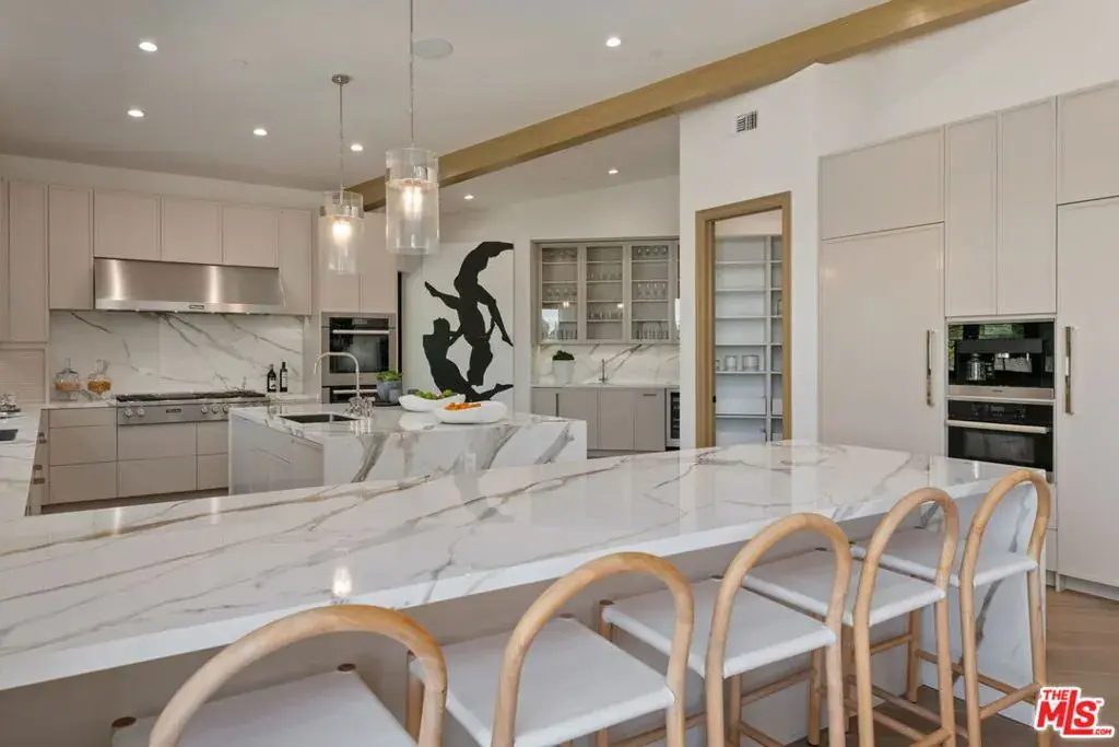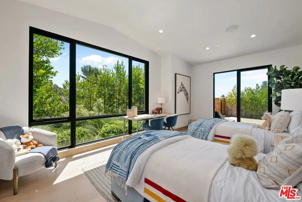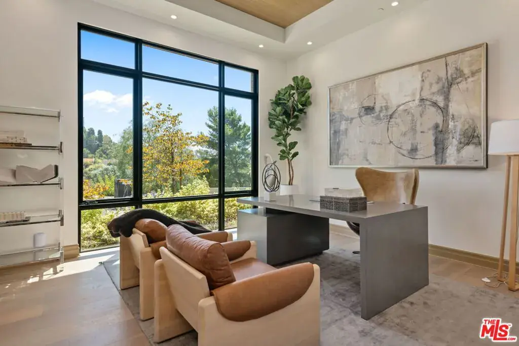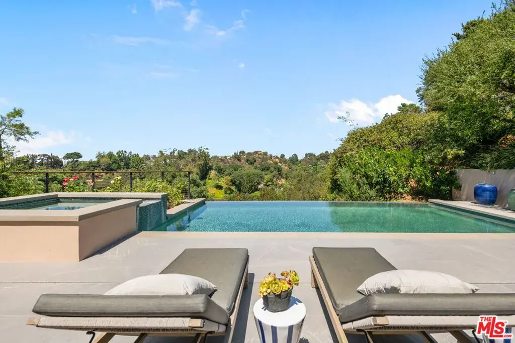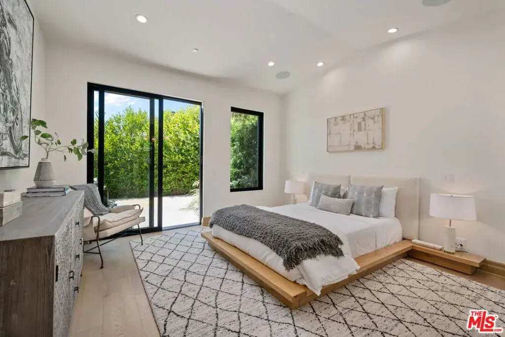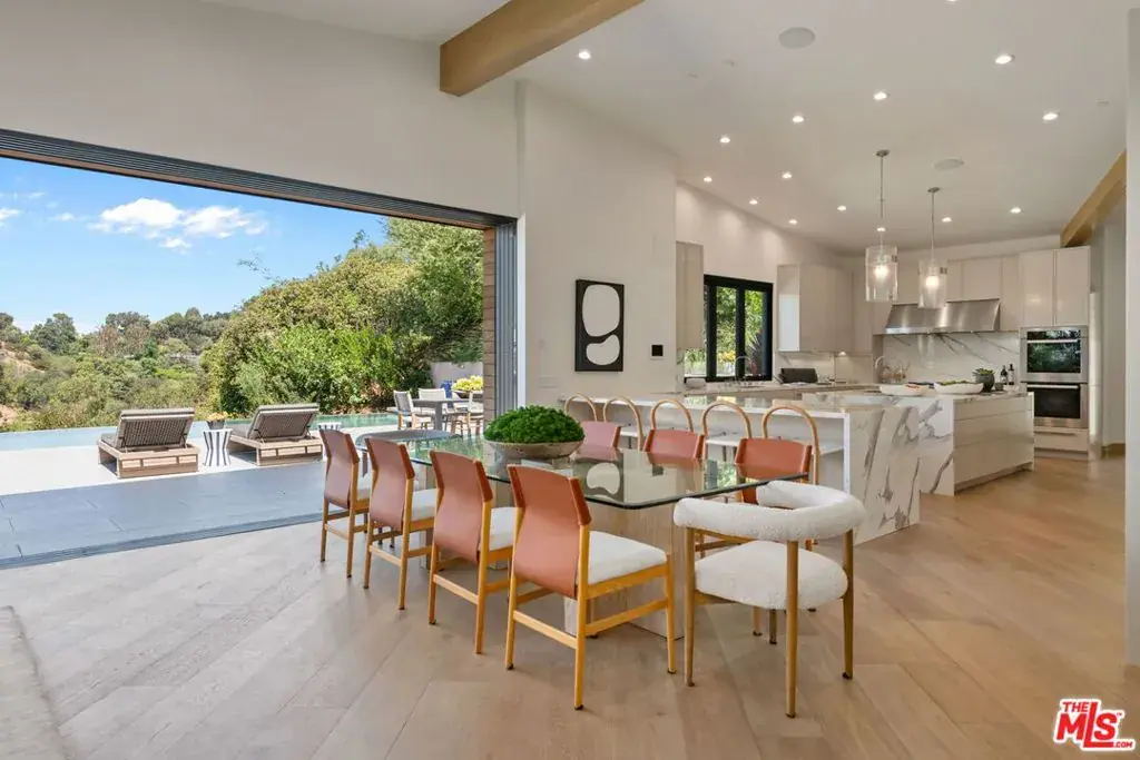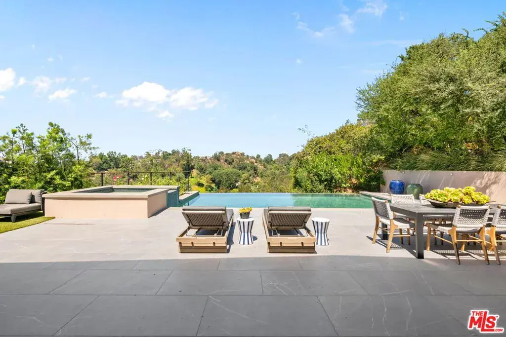 A brand-new single-story masterpiece, perfectly situated on a quiet cul-de-sac just north of the prestigious Trousdale Estates. Surrounded by beautiful trees and serene canyon views, this contemporary residence offers an exceptional blend of luxury, comfort, and sophistication. Designed with a seamless open floor plan and effortless indoor-outdoor flow, the living room boasts floor-to-ceiling automated sliding glass doors that open to a private backyard oasis with an infinity pool, spa, and waterfall. The expansive great room unites the living, dining, and chef’s kitchen, featuring Miele appliances, dual sinks and ovens, two dishwashers, built-in espresso/coffee maker, microwave, and a refrigerator and freezer. A generous island and elegant European wood floors enhance the home’s refined design. Offering 6 ensuite bedrooms and 9 bathrooms, the home provides unparalleled comfort for both family and guests. The media room, complete with a wide electric fireplace can be closed for privacy or opened to the main living area. The grand primary suite is a sanctuary, featuring a cozy seating area, private patio, and a stunning pearl onyx double-sided fireplace. It is complemented by two luxurious bathrooms with a soaking tub and steam shower complete this extraordinary retreat. Additional highlights include a temperature-controlled glass wine room, Sonos Arc sound system, and the finest finishes throughout. A true entertainer’s dream, this residence exemplifies modern luxury at its finest.