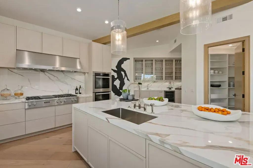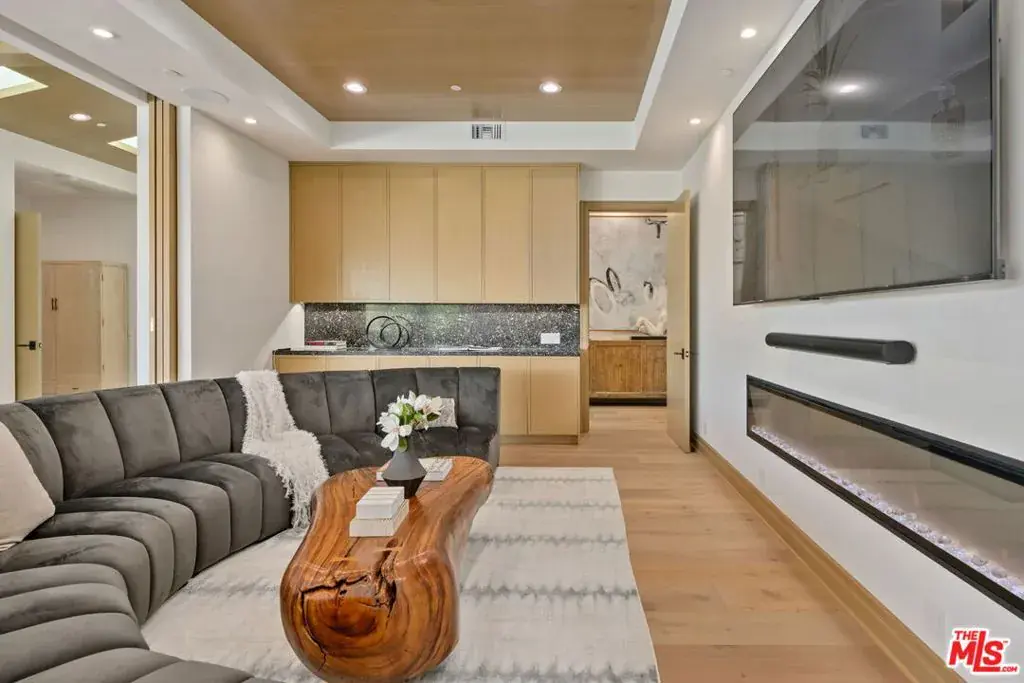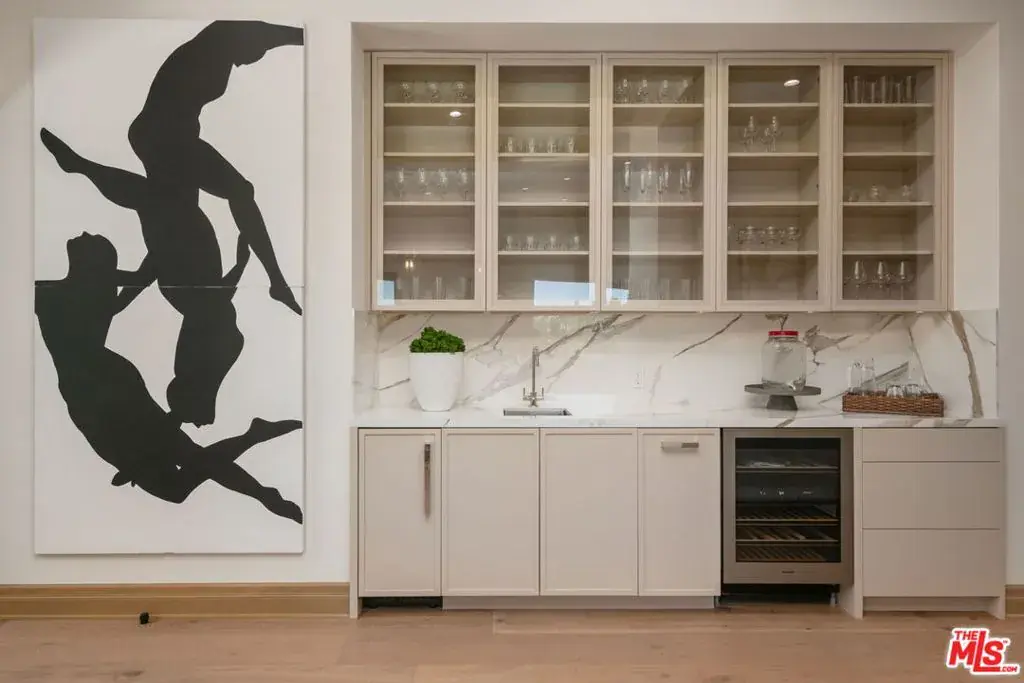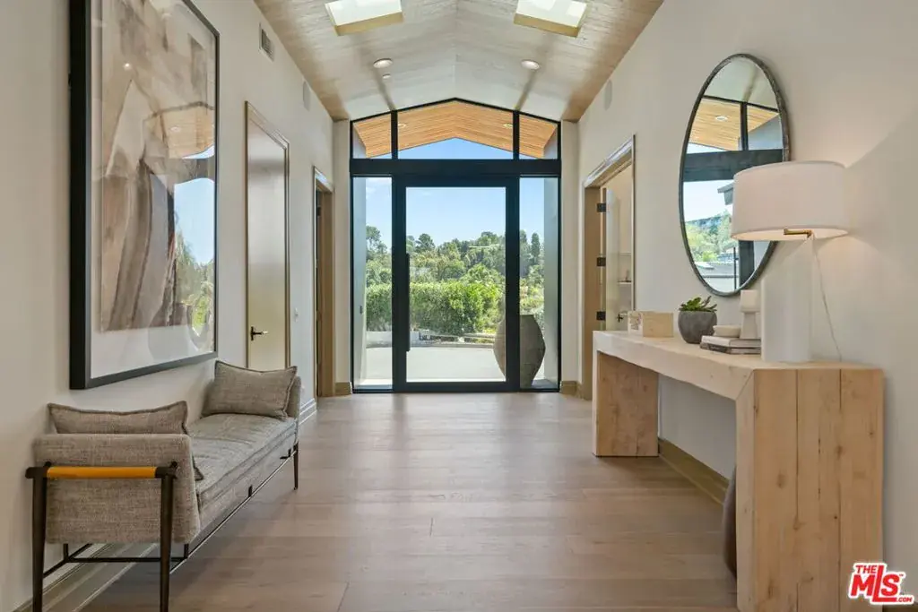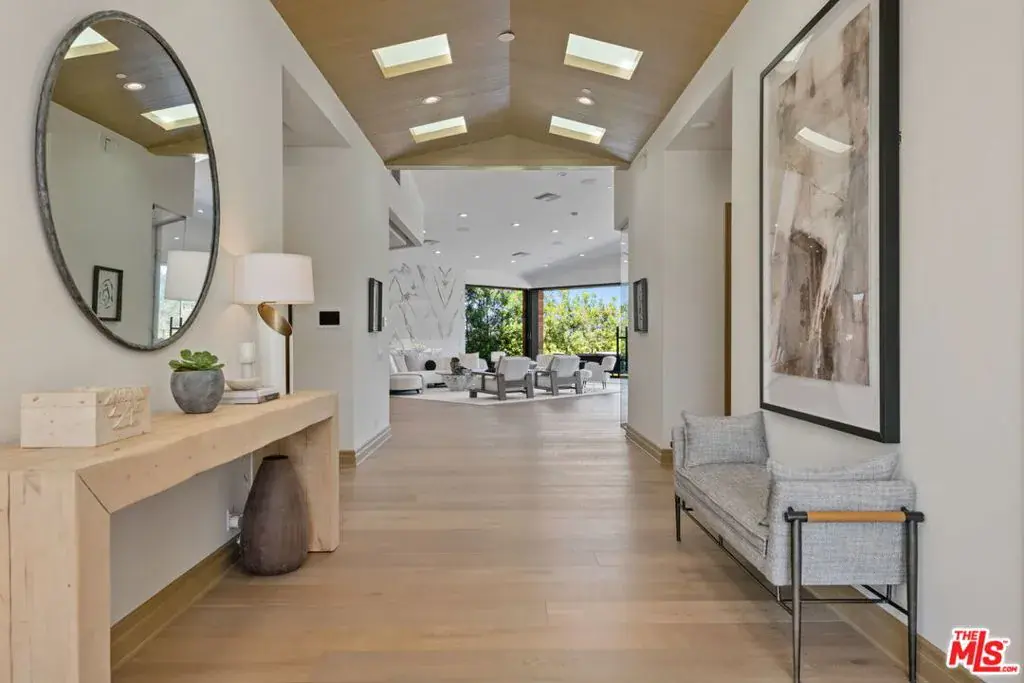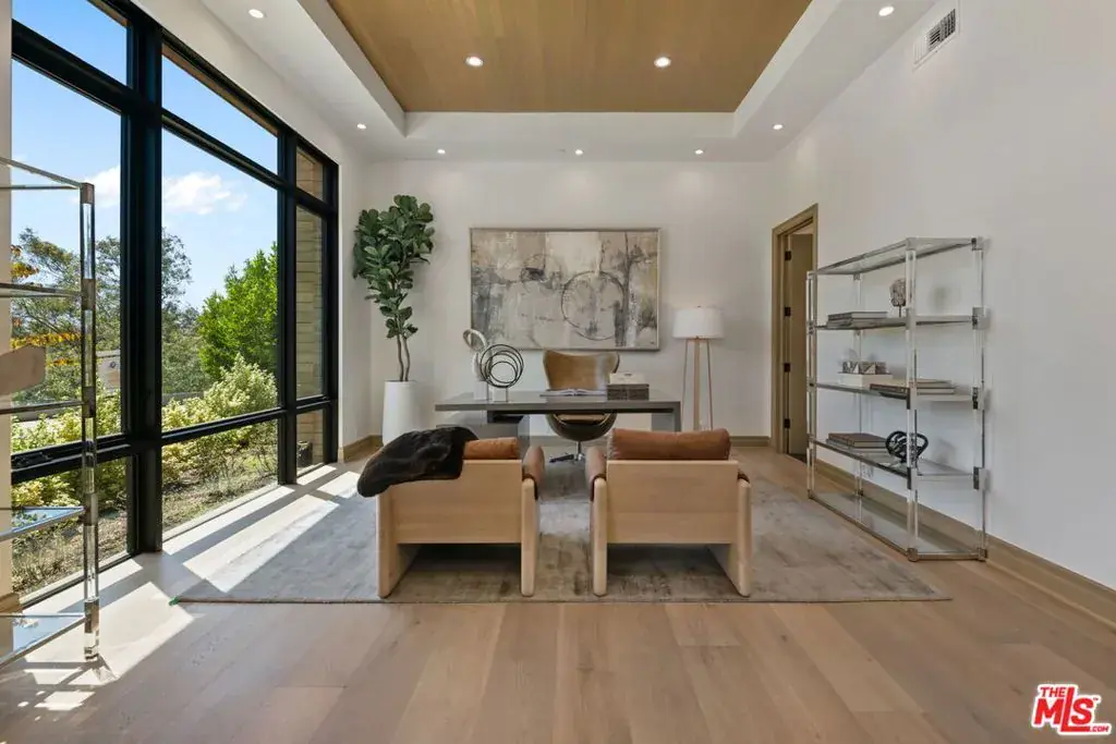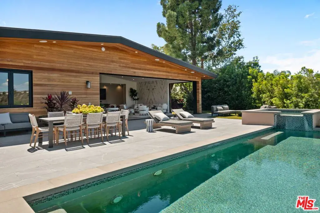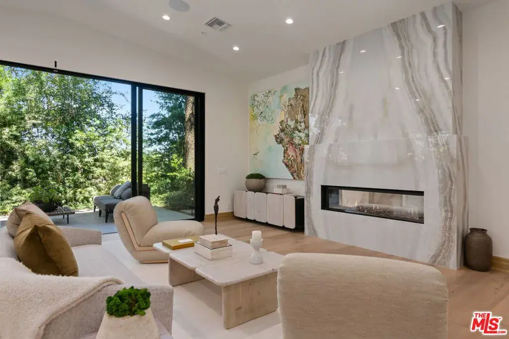 A brand-new single-story masterpiece, perfectly situated on a quiet cul-de-sac just north of the prestigious Trousdale Estates. Surrounded by beautiful trees and serene canyon views, this contemporary residence offers an exceptional blend of luxury, comfort, and sophistication. Designed with a seamless open floor plan and effortless indoor-outdoor flow, the living room boasts floor-to-ceiling automated sliding glass doors that open to a private backyard oasis with an infinity pool, spa, and waterfall. The expansive great room unites the living, dining, and chef’s kitchen, featuring Miele appliances, dual sinks and ovens, two dishwashers, built-in espresso/coffee maker, microwave, and a refrigerator and freezer. A generous island and elegant European wood floors enhance the home’s refined design. Offering 6 ensuite bedrooms and 9 bathrooms, the home provides unparalleled comfort for both family and guests. The media room, complete with a wide electric fireplace can be closed for privacy or opened to the main living area. The grand primary suite is a sanctuary, featuring a cozy seating area, private patio, and a stunning pearl onyx double-sided fireplace. It is complemented by two luxurious bathrooms with a soaking tub and steam shower complete this extraordinary retreat. Additional highlights include a temperature-controlled glass wine room, Sonos Arc sound system, and the finest finishes throughout. A true entertainer’s dream, this residence exemplifies modern luxury at its finest.