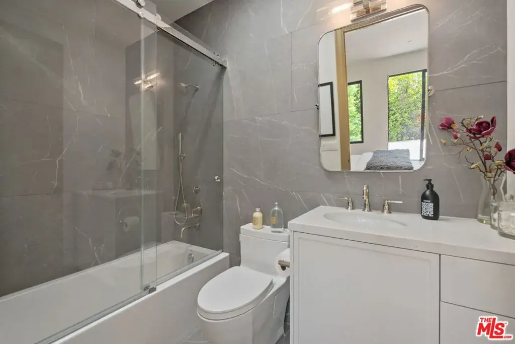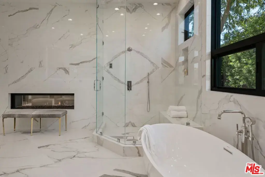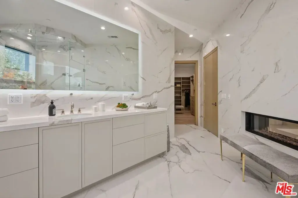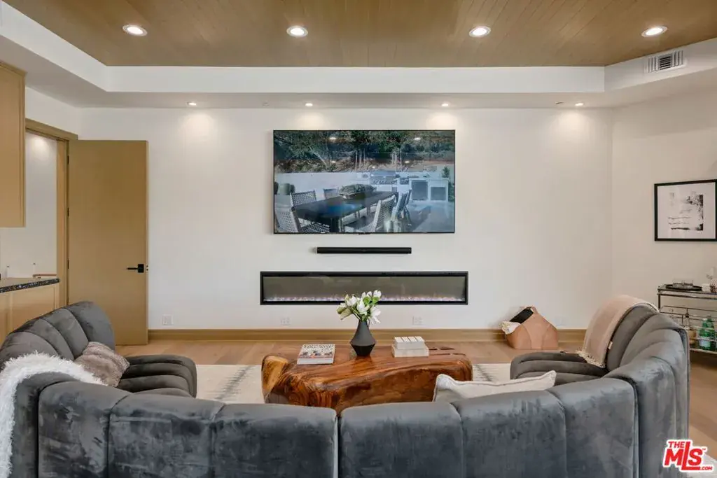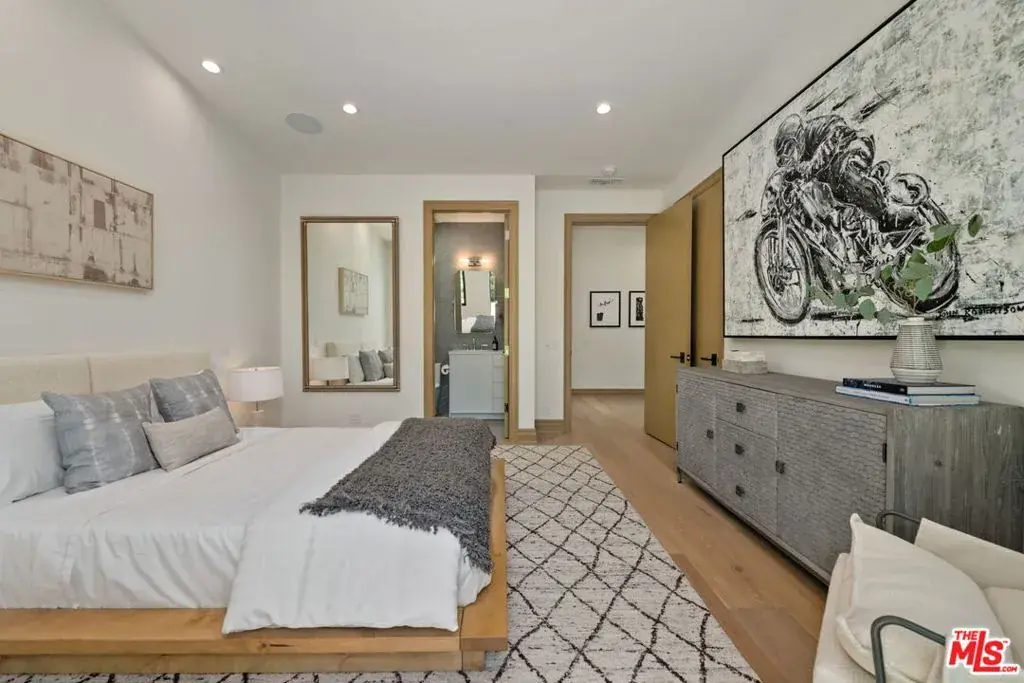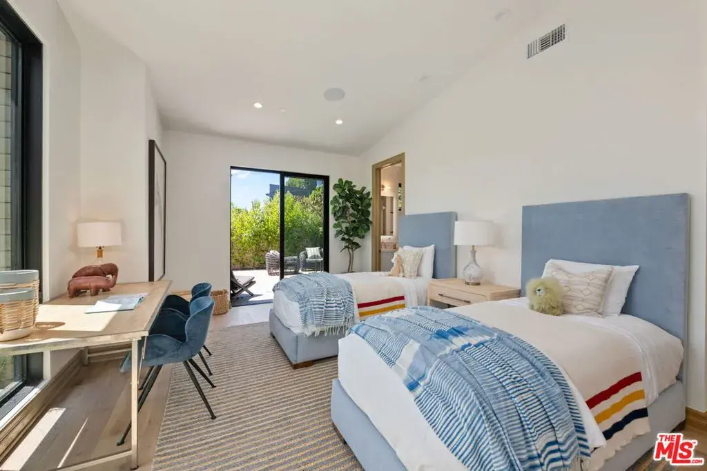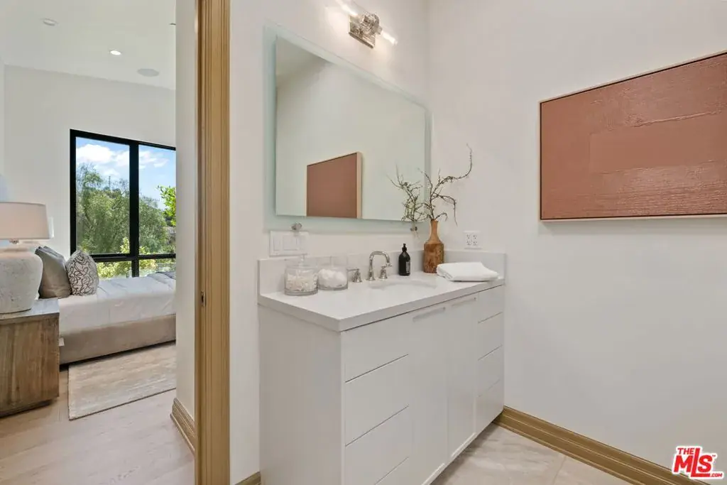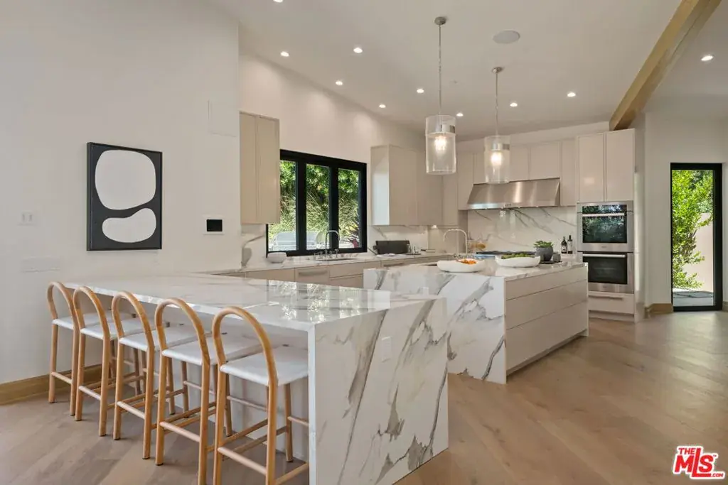 A brand-new single-story masterpiece, perfectly situated on a quiet cul-de-sac just north of the prestigious Trousdale Estates. Surrounded by beautiful trees and serene canyon views, this contemporary residence offers an exceptional blend of luxury, comfort, and sophistication. Designed with a seamless open floor plan and effortless indoor-outdoor flow, the living room boasts floor-to-ceiling automated sliding glass doors that open to a private backyard oasis with an infinity pool, spa, and waterfall. The expansive great room unites the living, dining, and chef’s kitchen, featuring Miele appliances, dual sinks and ovens, two dishwashers, built-in espresso/coffee maker, microwave, and a refrigerator and freezer. A generous island and elegant European wood floors enhance the home’s refined design. Offering 6 ensuite bedrooms and 9 bathrooms, the home provides unparalleled comfort for both family and guests. The media room, complete with a wide electric fireplace can be closed for privacy or opened to the main living area. The grand primary suite is a sanctuary, featuring a cozy seating area, private patio, and a stunning pearl onyx double-sided fireplace. It is complemented by two luxurious bathrooms with a soaking tub and steam shower complete this extraordinary retreat. Additional highlights include a temperature-controlled glass wine room, Sonos Arc sound system, and the finest finishes throughout. A true entertainer’s dream, this residence exemplifies modern luxury at its finest.