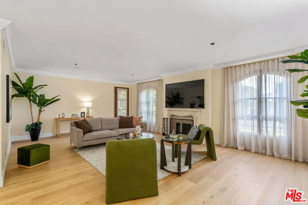 Front-facing updated condo at La Faubourg St. Germaine features nearly 2,000 sq ft of refined living space, the largest floor plan in this French Normandy style concierge building adjacent to L’Ermitage hotel. Only three residences in the building offer this premier layout. A residence for those who truly understand elevated city living. Sunlit living room with French doors, Juliet balconies, detailed moldings, and a fireplace. Chef’s kitchen with granite surfaces and new stainless steel appliances. Newly installed hardwood floors throughout underscore a continuity of design and sophistication. Two primary suites positioned on opposite wings, each with a private balcony and walk-in closet, offer rare privacy and versatility. Amenities include weekday concierge, gym, two elevators, oversized side-by-side parking, and plenty of guest parking. individual storage and panoramic rooftop views from Beverly Hills to the Hollywood Hills and Century City.