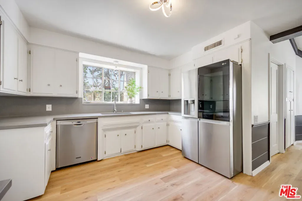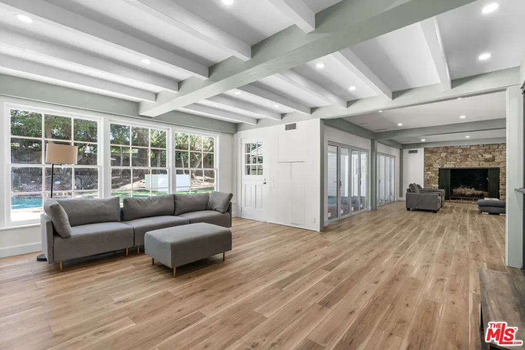 FURNISHED/UNFURNISHED. FLEXIBLE TERMS. BEAUTIFULLY REMODELED 2026! 1/2 ACRE LOT. (6 BED/8 BATH). MAIN LEVEL – 4 BEDROOMS-GRAND LIVING SPACES. SECOND LEVEL – 2ND LIVING ROOM, LIBRARY/OFFICE, 2 BEDROOMS, PLUS STORAGE. Set on one of the most prestigious streets of Beverly Hills Flats , this is a rare and exciting opportunity not to be missed. The floor plan is perfect – with all living and family rooms connected and accessible to the kitchen and breakfast area AND a formal dining room. Seamless flow throughout. Architecturally designed by the renowned Gerard Colcord. Outside, you’ll discover a tranquil backyard with a pool, spa, lush landscaping. Completely secluded, private and quiet. DRIVEWAY PARKING FOR 5 CARS, PLUS A 2 CAR GARAGE.