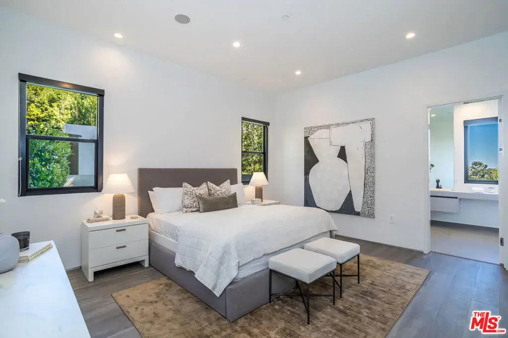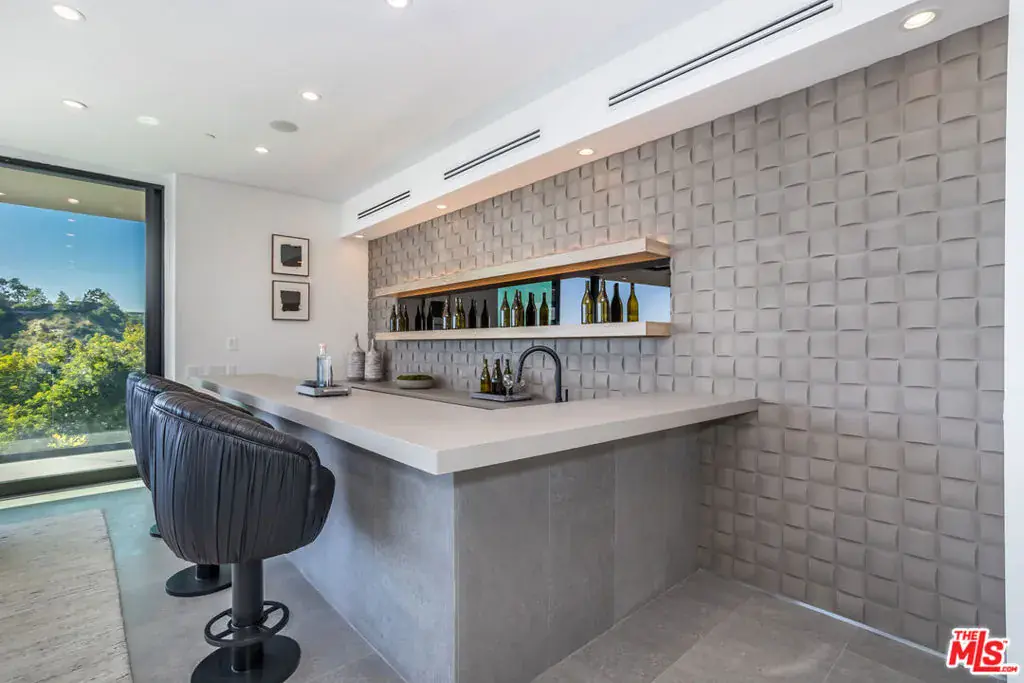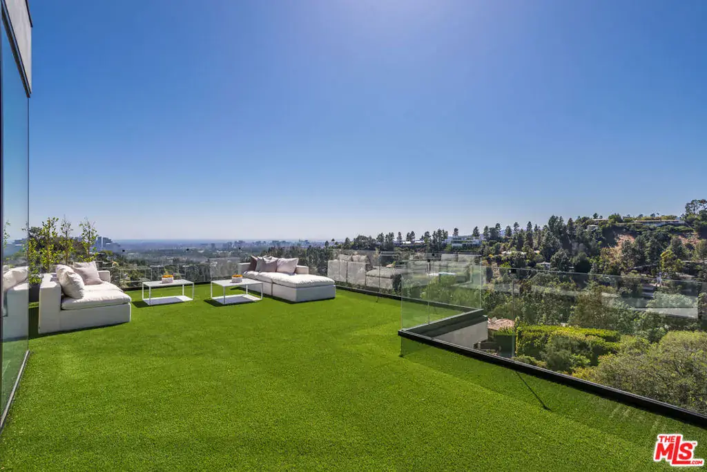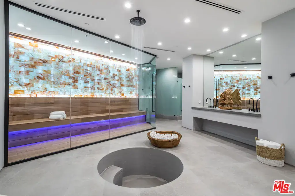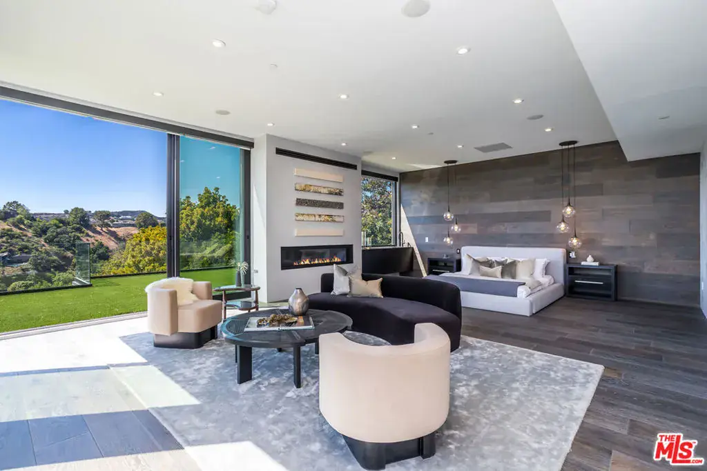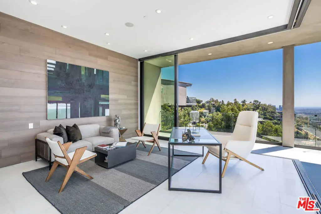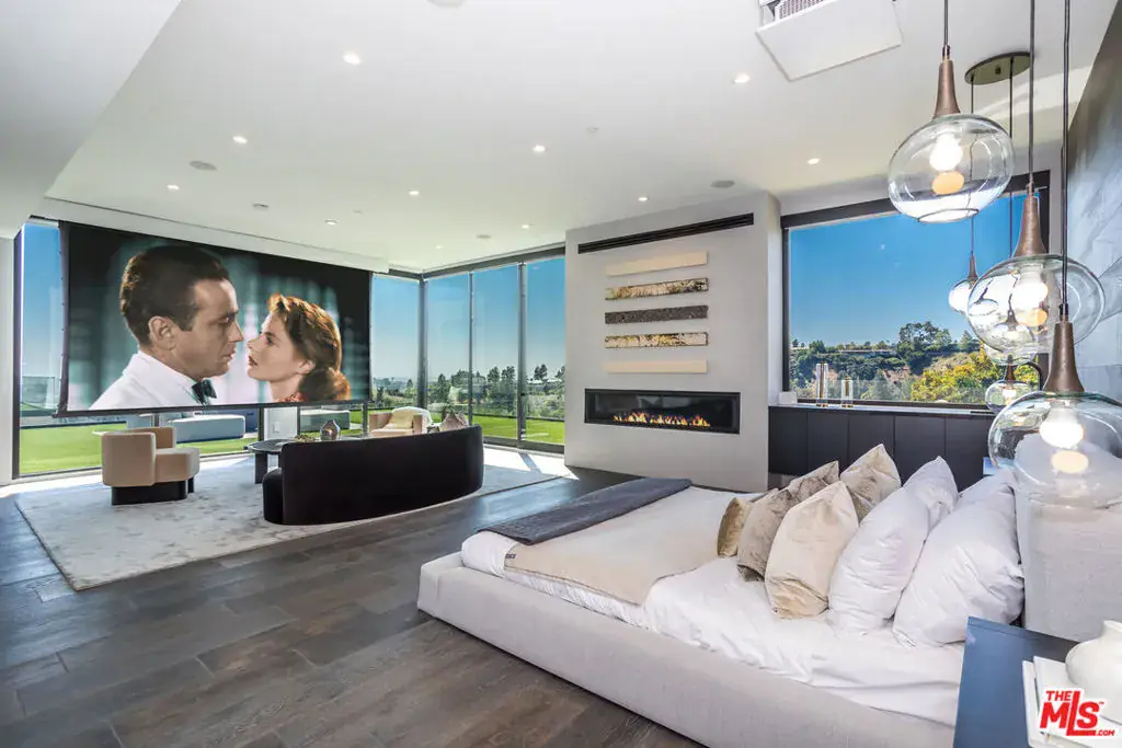 Available 6/1/26 – 9/30/26 furnished. Located in the prestigious Crest Streets in Beverly Hills, this architectural masterpiece offers unobstructed jetliner views from every room. The new construction smart house features Venetian wall finishes throughout, imported stonework, floor-to-ceiling walls and doors of glass, and over 3,400 sq. ft. of outdoor terraces, creating an unprecedented living experience. The 2,000 sq. ft. primary suite boasts a private glam room, hair salon, 2 garden lounge sitting areas, dual walk-in closets, wet bar, and glass shoe display room. The gourmet kitchen comes replete with a butler kitchen and pantry area. The sophisticated living and dining area is accentuated with a fingerprint-secured Mezcal/Wine tasting room. The lower entertainment level offers a luxurious bar, spa and theatre experience, including a zero-edge pool, Himalayan salt sauna, Japanese soaking tub, private yoga studio/gym, Tonal fitness system, wet steam room, poolside cabana room, and 20 person theater with bar. The private lower grassy yard is surrounded by lush landscaping and includes a large entertainment game space.