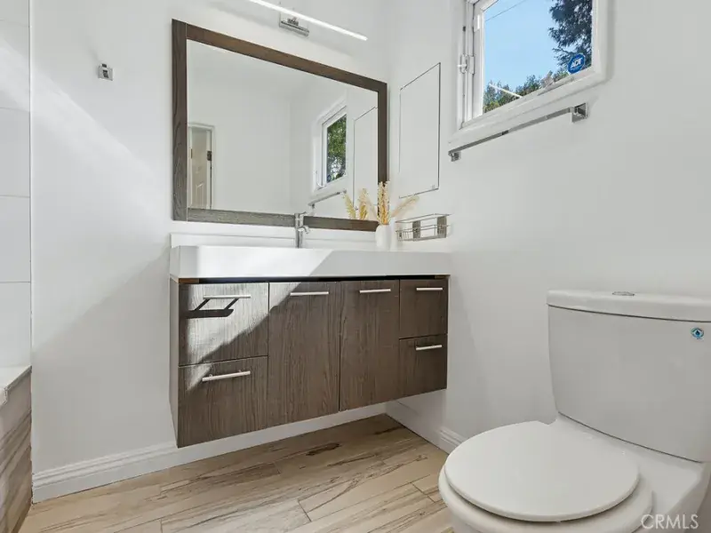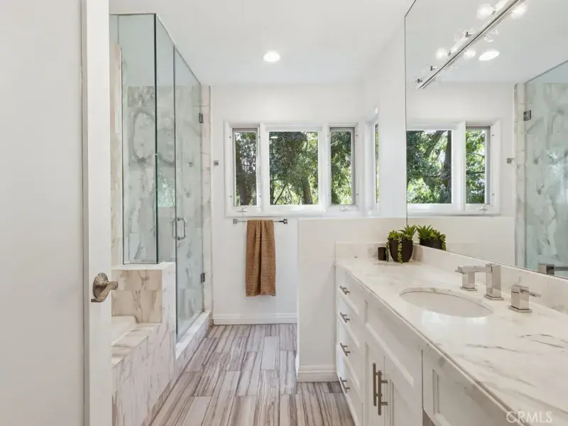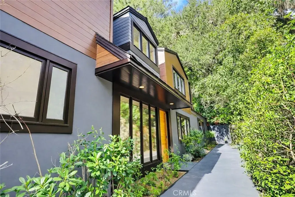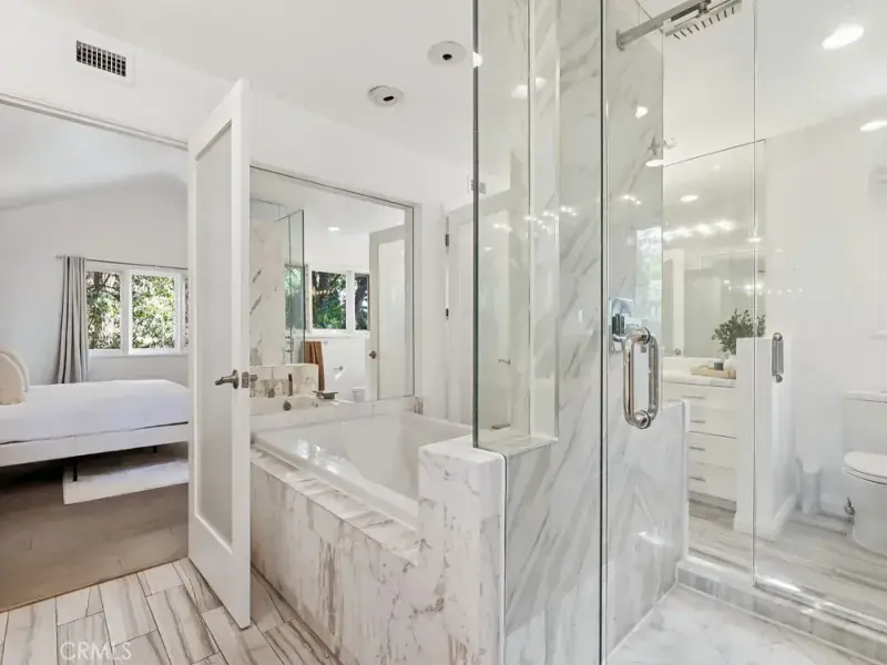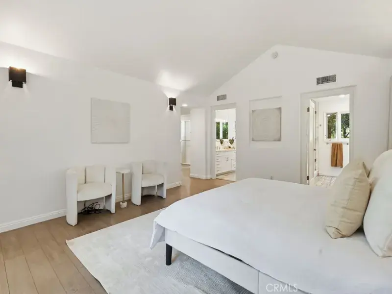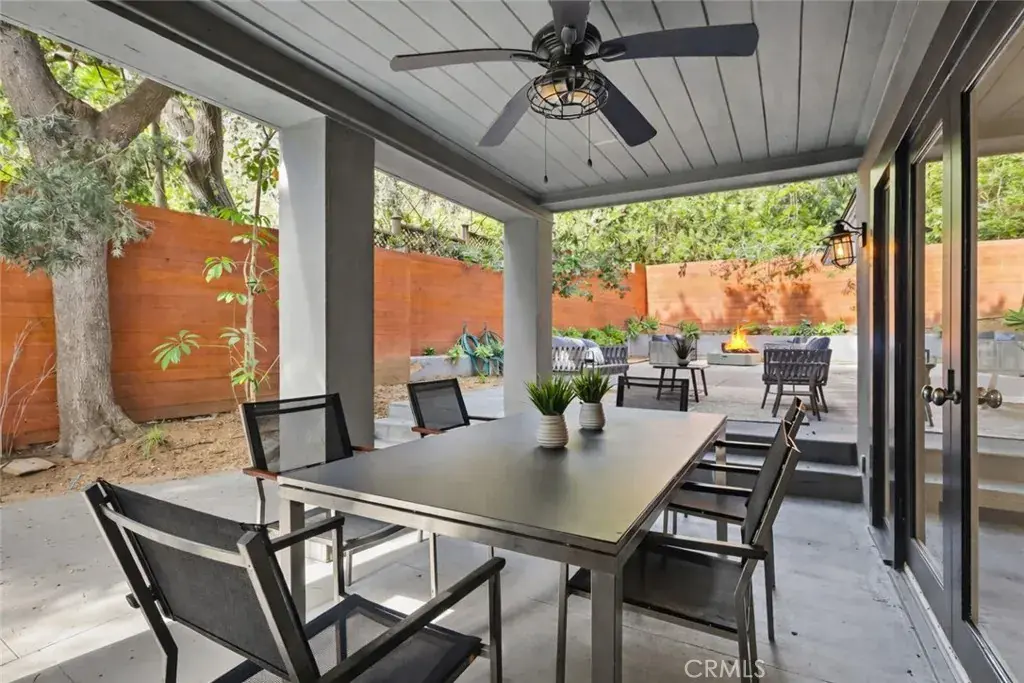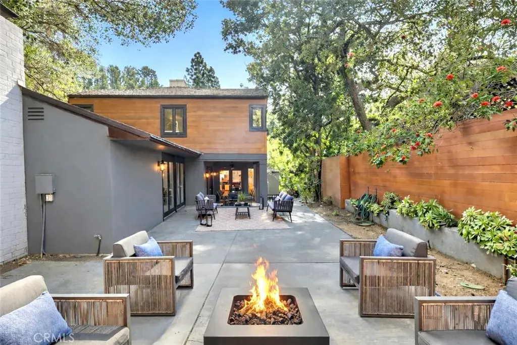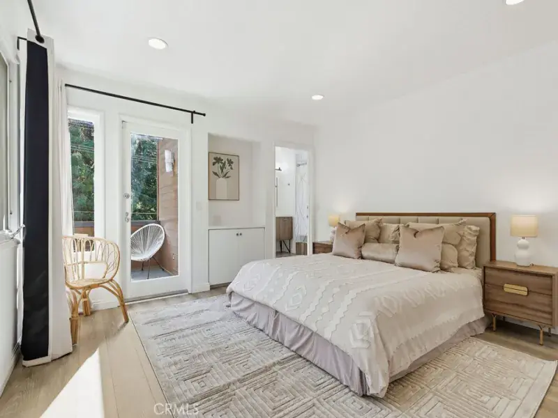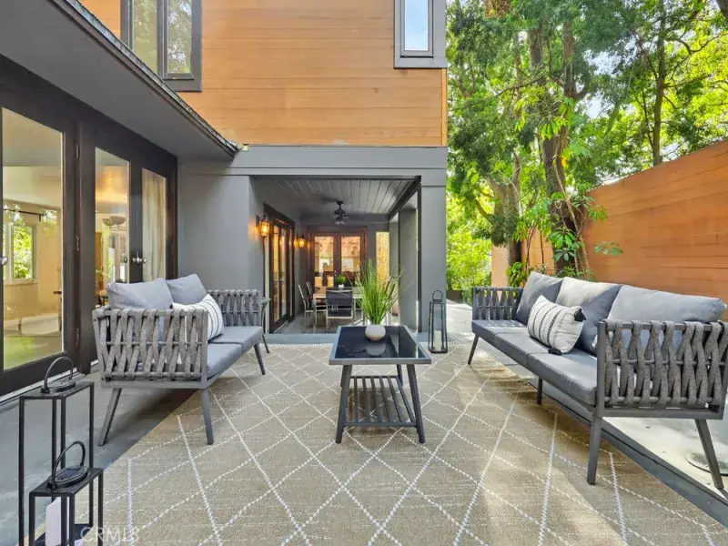 Blending timeless Mid-Century character with refined contemporary designer finishes, this home offers a rare balance of warmth, sophistication, and architectural distinction. The spacious primary suite showcases soaring ceilings, while two additional generously sized bedroom suites each open to their own private outdoor patios. A fourth suite features a separate entrance and independent garage, providing exceptional flexibility for guests, extended family, or rental opportunities.