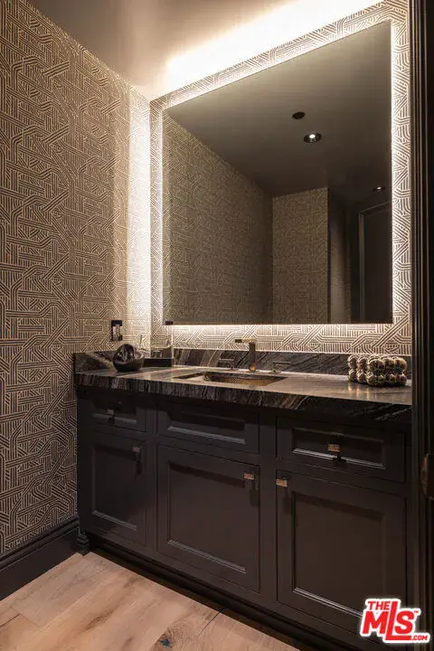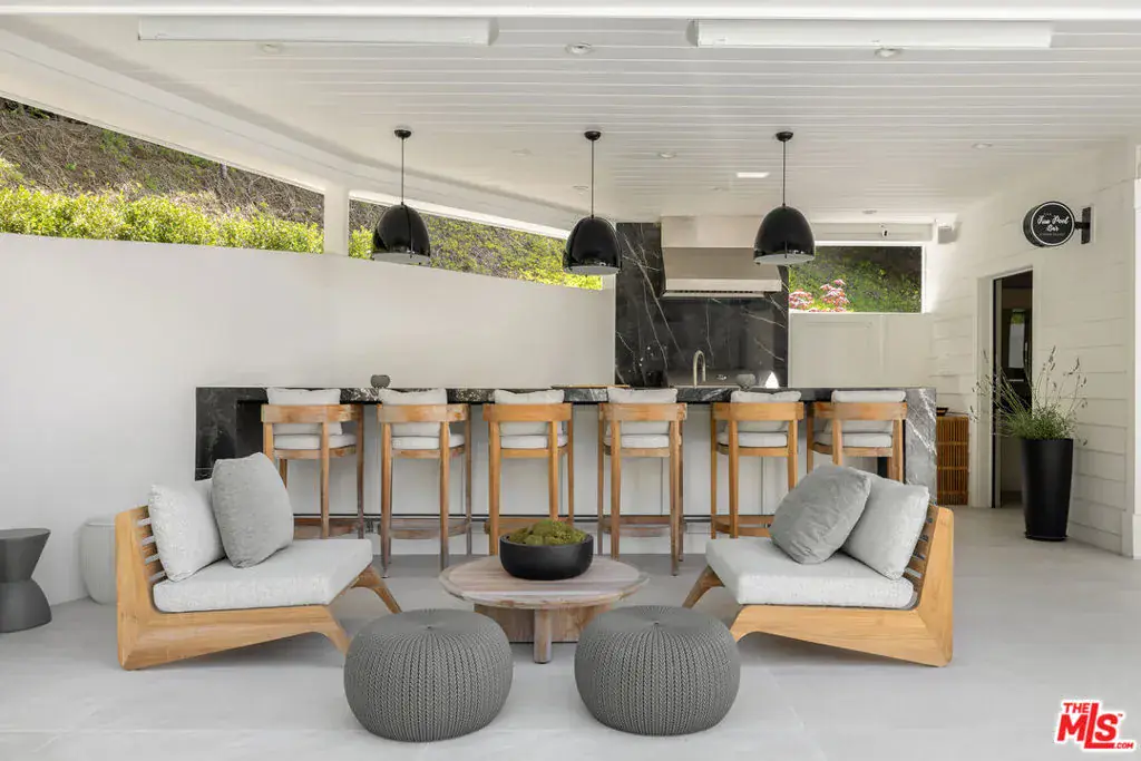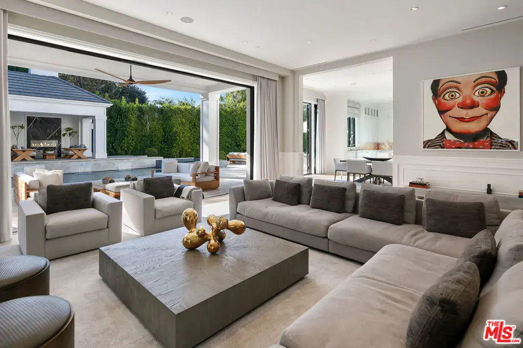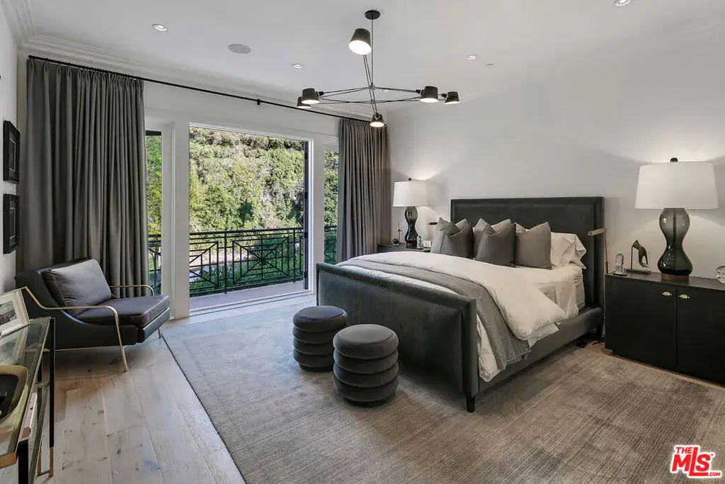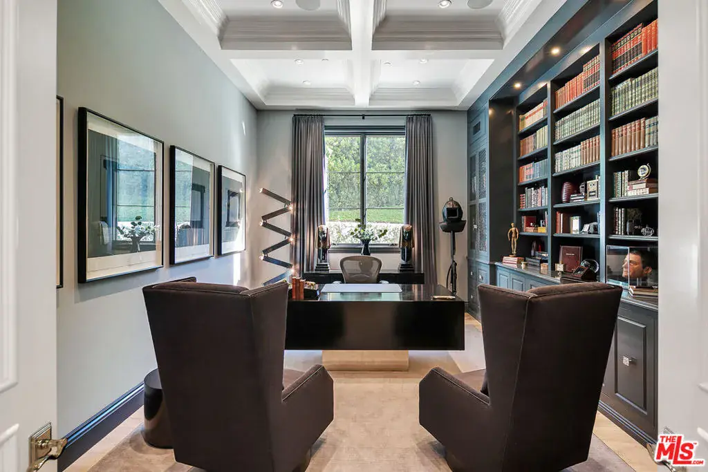 Positioned within the coveted Hidden Valley enclave of Beverly Hills, this impeccable estate offers privacy and tranquility behind secure gates, with 24/7 guard protection and lush, mature landscaping. Situated in one of the area’s most prestigious guard-gated communities, this residence showcases timeless design, grand proportions, and a thoughtfully updated aesthetic that harmonizes with its natural surroundings. Every element of this home has been masterfully conceived to deliver an unparalleled living experience. A dramatic 24-foot ceiling in the entry foyer sets the tone, featuring custom-crafted millwork and elegant wrought-iron accents that echo throughout the interiors. Spanning approximately 12,000 square feet, the residence is graced with wide-plank white oak floors, 12-foot-high ceilings, and expansive windows that frame serene canyon vistas. The main level unfolds with a series of distinguished spaces, including a formal living room, office, formal dining room, and multiple powder rooms. A spacious family room seamlessly connects to the outdoor entertaining areas, where a sprawling backyard oasis includes a pool, spa, outdoor kitchen, bar, dining pavilion, and fire pit lounge. The chef’s kitchen is a masterpiece of both design and functionality, outfitted with honed Calacatta marble countertops, a La Cornue 1908 range and oven, Wolf microwave, Sub-Zero refrigerator and freezer, dual Miele dishwashers, a wine fridge, and an oversized eat-in island, all framed by crisp white cabinetry. Two ensuite bedrooms and a two-car garage complete the main floor. Effortless access to the estate’s three levels is provided by a private elevator. Upstairs, the opulent primary suite offers a serene retreat with a fireplace, a balcony with picturesque views, dual marble bathrooms featuring soaking tubs, and a pair of custom dressing rooms with abundant built-in storage. Four additional ensuite bedrooms, each with spacious dressing closets, complete this floor. The lower level features a host of amenities for relaxation and entertainment. With 11-foot ceilings, this space includes a cozy home theater, a wet bar, lounge, gaming area, temperature-controlled wine room, fully equipped fitness studio, and laundry facilities. Additionally, the subterranean auto gallery spanning approximately 2,590 square feet boasts a revolving car turntable and accommodates up to six vehicles, offering limitless opportunities for customization. Fully automated through Savant and Lutron systems, the home’s technology provides seamless control over lighting, drapery, audio, televisions, fireplaces, and entry systems, ensuring modern convenience at every turn. Perfectly positioned within top-tier school districts and offering convenient access to Beverly Hills, the Westside, and the Valley’s finest shopping, dining, and nightlife, this estate is a rare offering that combines sophistication, comfort, and cutting-edge amenities.