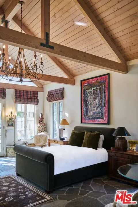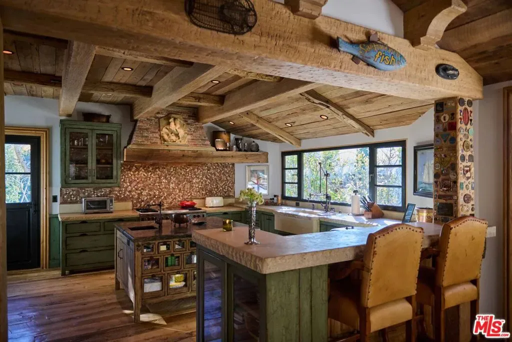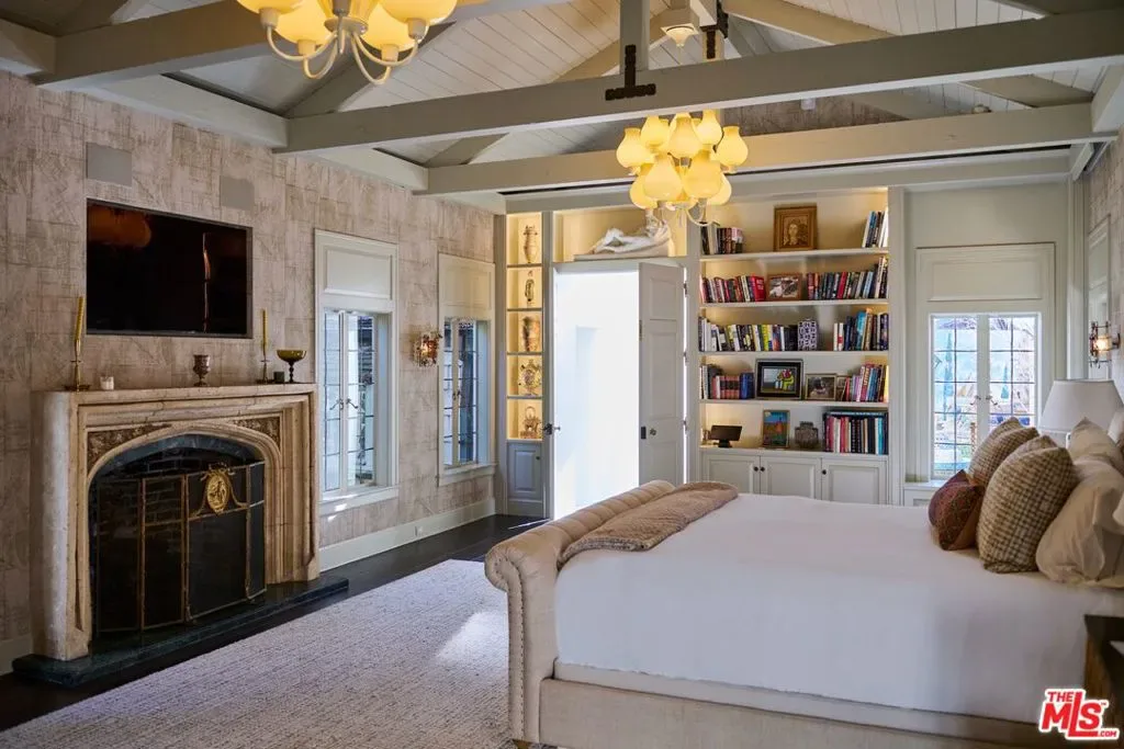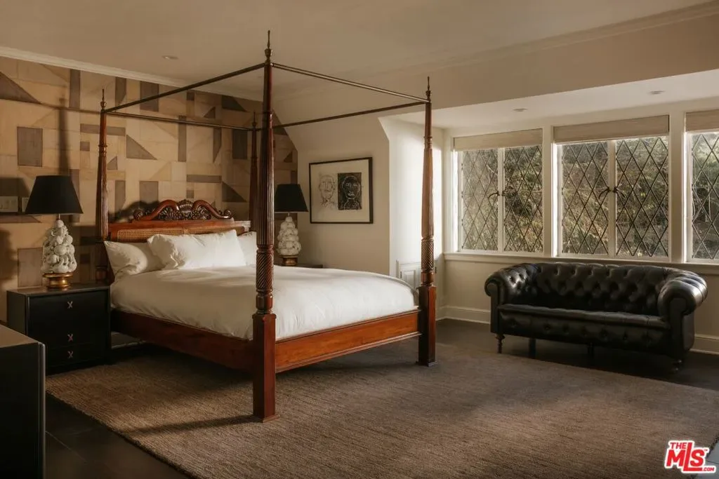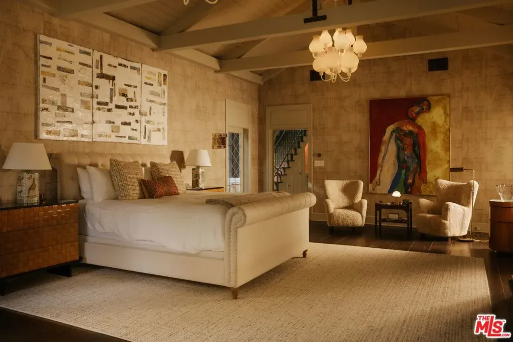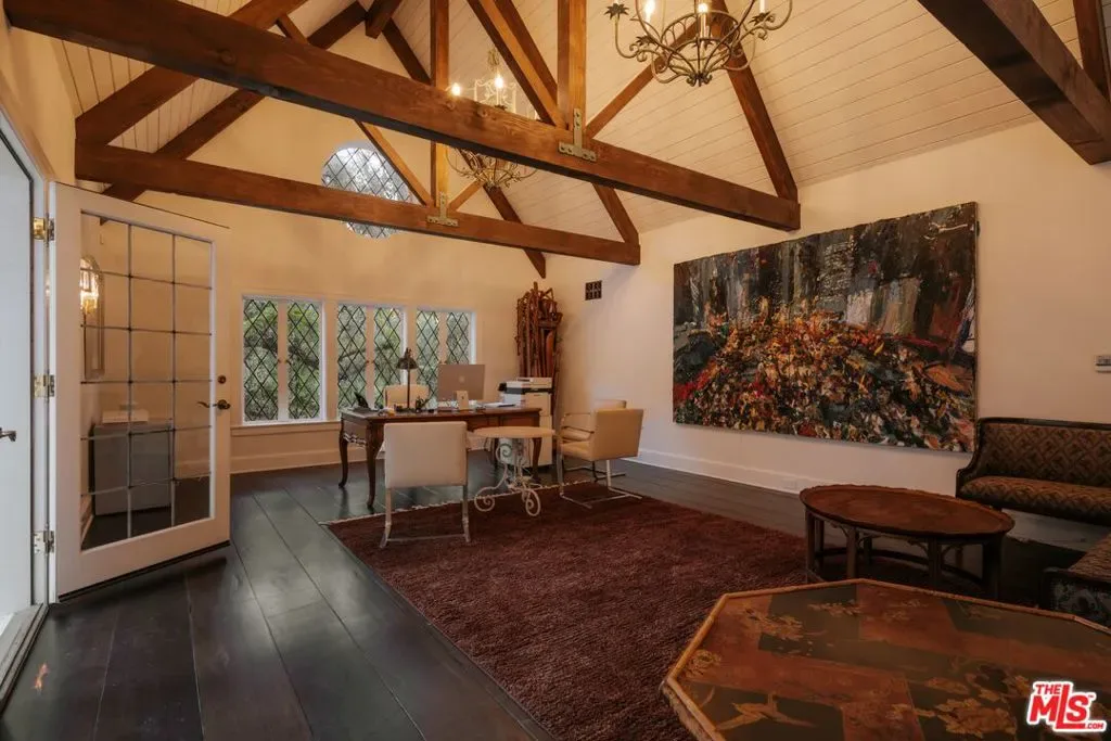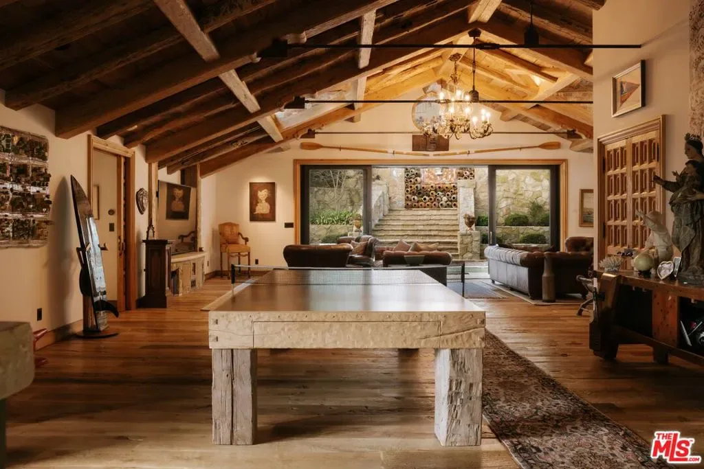 Once the storied Beverly Hills estate of Hollywood legend James Cagney, this rare and formerly celebrity-owned gated compound presents a once-in-a-generation opportunity to acquire a historic luxury estate in Beverly Hills 90210. Tucked privately beneath Franklin Canyon Nature Reserve, this expansive multi-residence Beverly Hills compound spans more than five acres of secured gated grounds, offering an unheard-of combination of acreage, provenance, and seclusion. Extensively renovated, updated and restored over many years, the private gated estate unfolds as a village-like enclave with multiple residences connected by hand-laid stone pathways winding through tiered citrus gardens, sculptural courtyards, candle-carved stone walls, and museum-quality European statuary. Mature landscaping and curated outdoor rooms create a timeless environment ideal for both intimate living and large-scale entertaining. The “Main Villa” is a romantic architectural centerpiece featuring reclaimed European terracotta roof tiles, exposed trussed-beam cathedral ceilings, leaded glass windows, and multiple restored original fireplaces. Designed for seamless entertaining, the home flows effortlessly from wine cellar and butler’s pantry to formal dining and elegant yet warm living rooms, evoking timeless character. This main villa residence offers two primary bedroom suites with couture-scale closets and both suites include grand ensuite baths, soaking tubs, double vanities, step in showers for two, while an additional guest bedroom suite features luxurious cedar closet dressing room and en suite bath. Additional structural assets across the estate compound include a secluded guest residence known as “The Boathouse,” with wood floors and trussed beams of antique 19th Century reclaimed French Oak complete with its own private gated drive and porte-cochre, ideal as an event venue, creative retreat, or production studio. “The Carriage House-Artist’s Studio,” is a multipurpose creative studio with full kitchen, en suite bath and auto garages. Plus an additional detached “Guest Cottage”, which was Cagney’s original art studio where he complete many collection paintings but now renovated to include a full kitchen and en suite bath. This epic compound provides multiple self-contained living environments, making this an exceptional multi-generational Beverly Hills estate uniquely versatile. Other features and amenities include separate regulation tennis and pickleball courts with grandfathered night lighting, a tennis spectator pavilion with wet bar, a glass-tile swimming pool and spa with poolside cabana and outdoor dining bistro. The Pavillion and Pool Cabana each include a fully equipped outdoor chef’s kitchen. Expansive flat lawns and play fields offer rare recreational space within the hills above Sunset Boulevard. A true trophy property, the former James Cagney Estate stands as a legacy Beverly Hills estate where architecture, landscape, and artistry converge, perfectly suited for multigenerational living, artists-in-residence, or those seeking an irreplaceable Hollywood history estate in one of Los Angeles’ most exclusive enclaves.