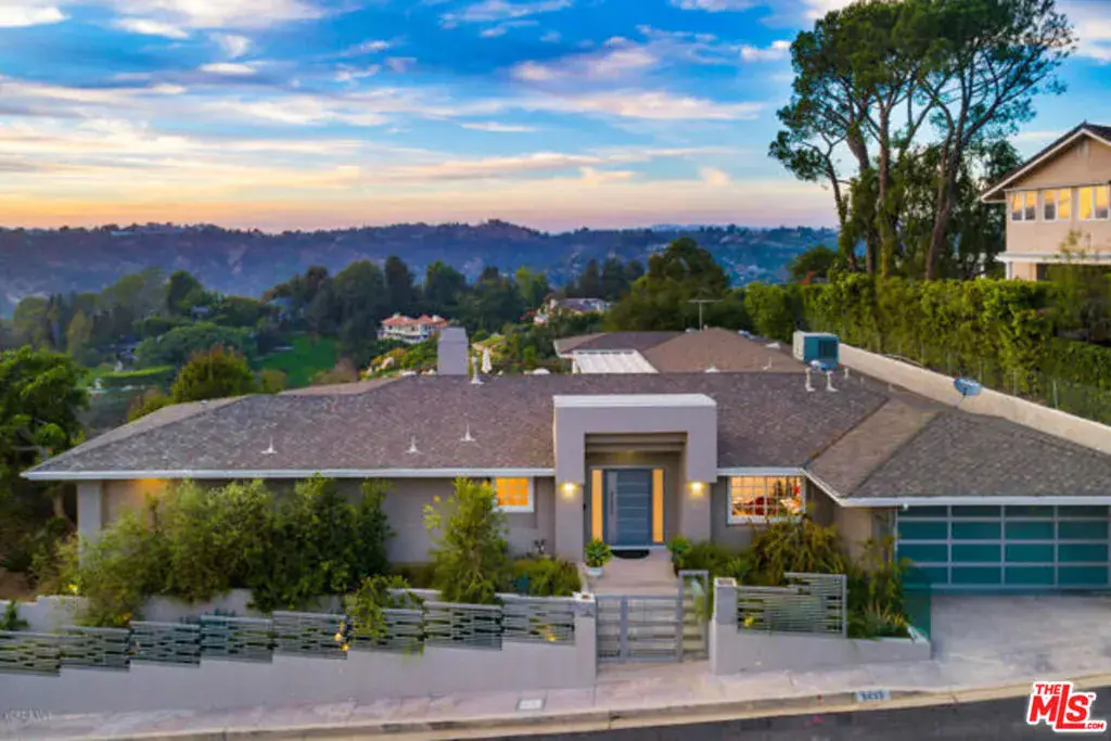 CAN’T HELP FALLING IN LOVE~ Come And Make this Elvis Presley 1960’s 70’s Retreat Your Forever Home!!! Stunning One-Story Mid-Century Retreat with Spectacular Views! Located on a quiet, private cul-de-sac just 10 minutes from Rodeo Drive. This fully gated mid-century home offers exceptional privacy, tranquility, and effortless indoor/outdoor living. Thoughtfully remodeled inside and out, the residence showcases refined design elements, impeccable craftsmanship, and panoramic canyon views from nearly every room. A formal entry leads to an expansive coffered living room with a fireplace and seamless access to the outdoor terrace. The modern chef’s kitchen equipped with professional-grade appliances features a bright breakfast area and opens to the formal dining room with an impressive 11-foot pitched ceiling and custom marble decorative shelving. Walls of glass throughout the home flood the interiors with natural light and open directly to the terrace, creating an ideal setting for entertaining. Property offers TWO luxurious PRIMARY SUITES situated on opposite ends of the home for ultimate privacy. One includes a generous sitting room, while the other features dual walk-in closets. Both suites offer spa-like bathrooms, ample storage, and serene canyon views. A third guest or family suite with its own bath and a separate office complete the versatile interior layout. Additional features include:* Newly designed architectural entry gates and front door* Beautiful hardwood floors and recessed lighting* 8-camera security system and indoor/outdoor sound system* Two-car garage plus under-house storage. This home was thoughtfully designed and constructed on Caissons, providing a deep engineered foundation designed for long-term stability and peace of mind. Outside, an expansive terrace overlooks the canyons and features a heated swimming pool and hot tub perfect for relaxing or hosting gatherings in a serene, private setting. This exceptional property combines mid-century charm, modern luxury, and breathtaking views in one of the most desirable Beverly Hills- Post location.