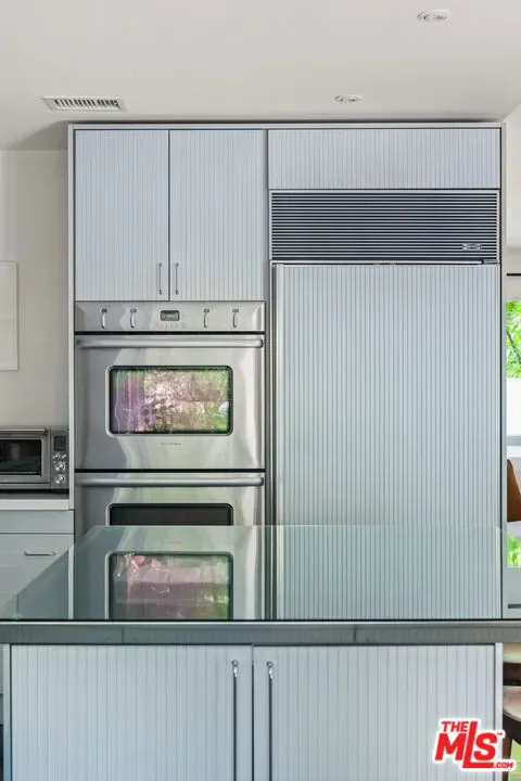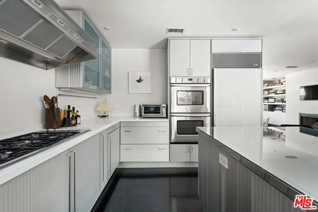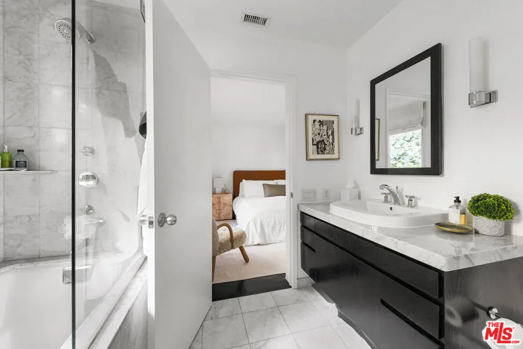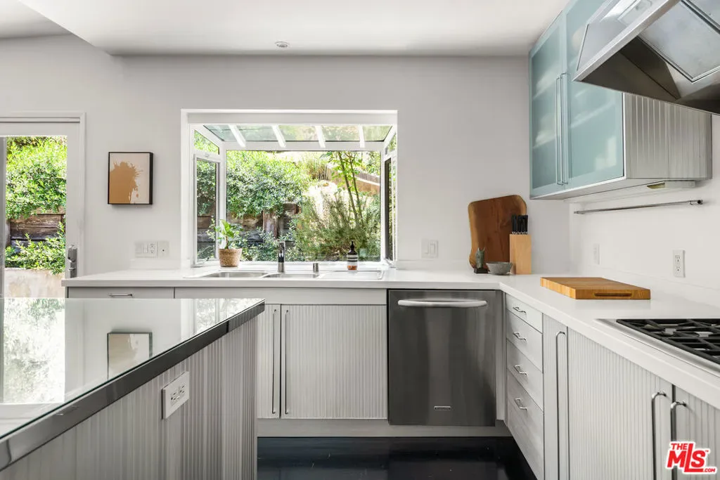 Tucked away on a serene lane off Benedict Canyon, this exquisite single story two bedroom, two bath traditional cottage offers the perfect blend of rustic charm and cutting-edge design. Set on just over one-third acre lot, the 1,300 square feet residence is a private urban oasis surrounded by lush greenery and terraced gardens. Inside, dark hardwood floors and sleek modern updates elevate every space. The show-stopping Linea chef’s kitchen features a rare Italian Driade installation in anodized aluminum, paired with top-of-the-line appliances and custom cabinetryan entertainer’s dream. Carrara marble bathrooms add a touch of luxury, complementing the home’s refined aesthetic. The open-concept living and dining areas flow seamlessly to a tranquil rear patio, ideal for al fresco dining or quiet reflection. With its seamless integration into the leafy, tree-lined surroundings of Benedict Canyon, this home offers high-style modernism in one of Beverly Hills’ most coveted zip codes.